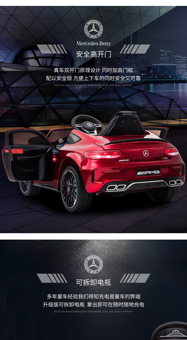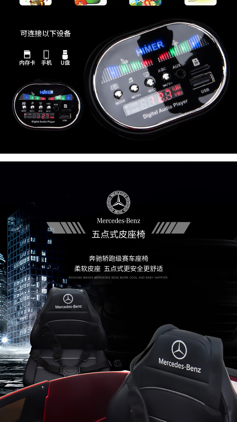 WORK BABY children's Mercedes-Benz electric car four-wheel drive infant and toddler charging remote control toy car for boys and girls that can seat adults red dual drive + remote control self-driving + hard seat electric drive