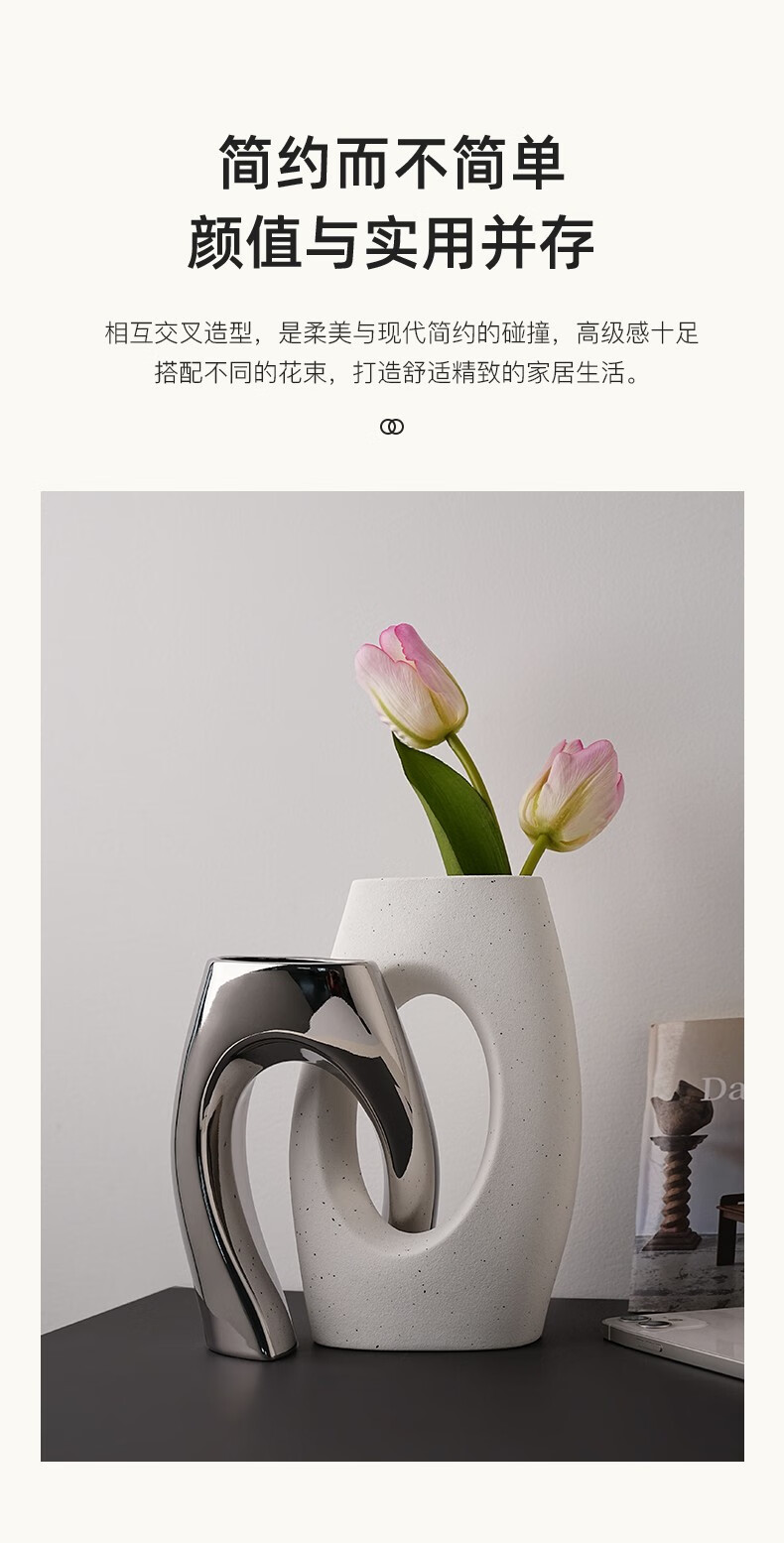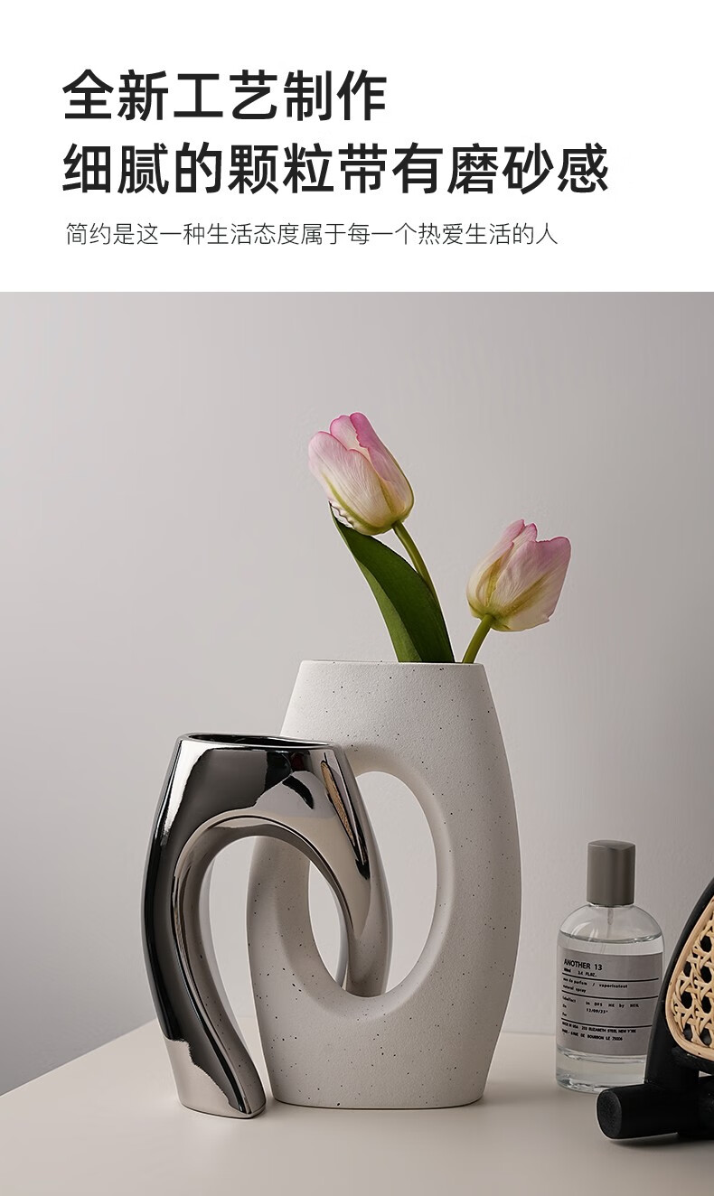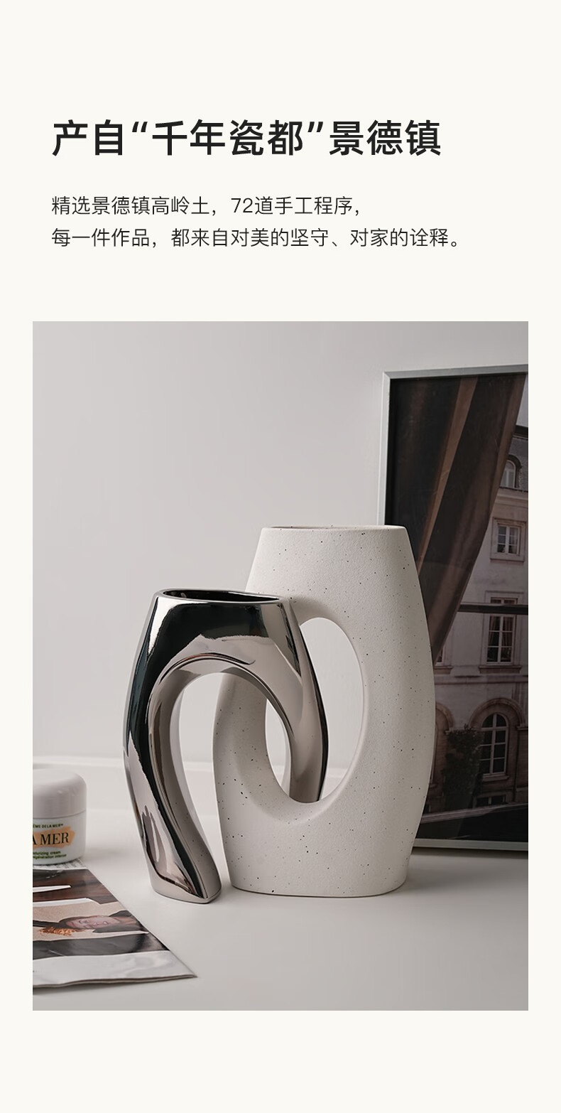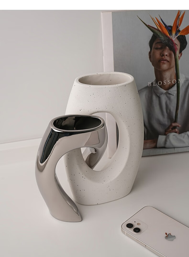 BHM art ceramic vase modern simple home creative decoration living room soft decoration high-end decoration plain embryo 21cm