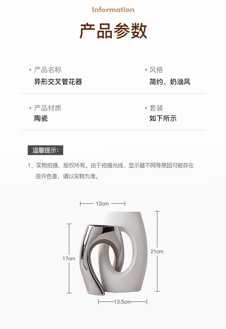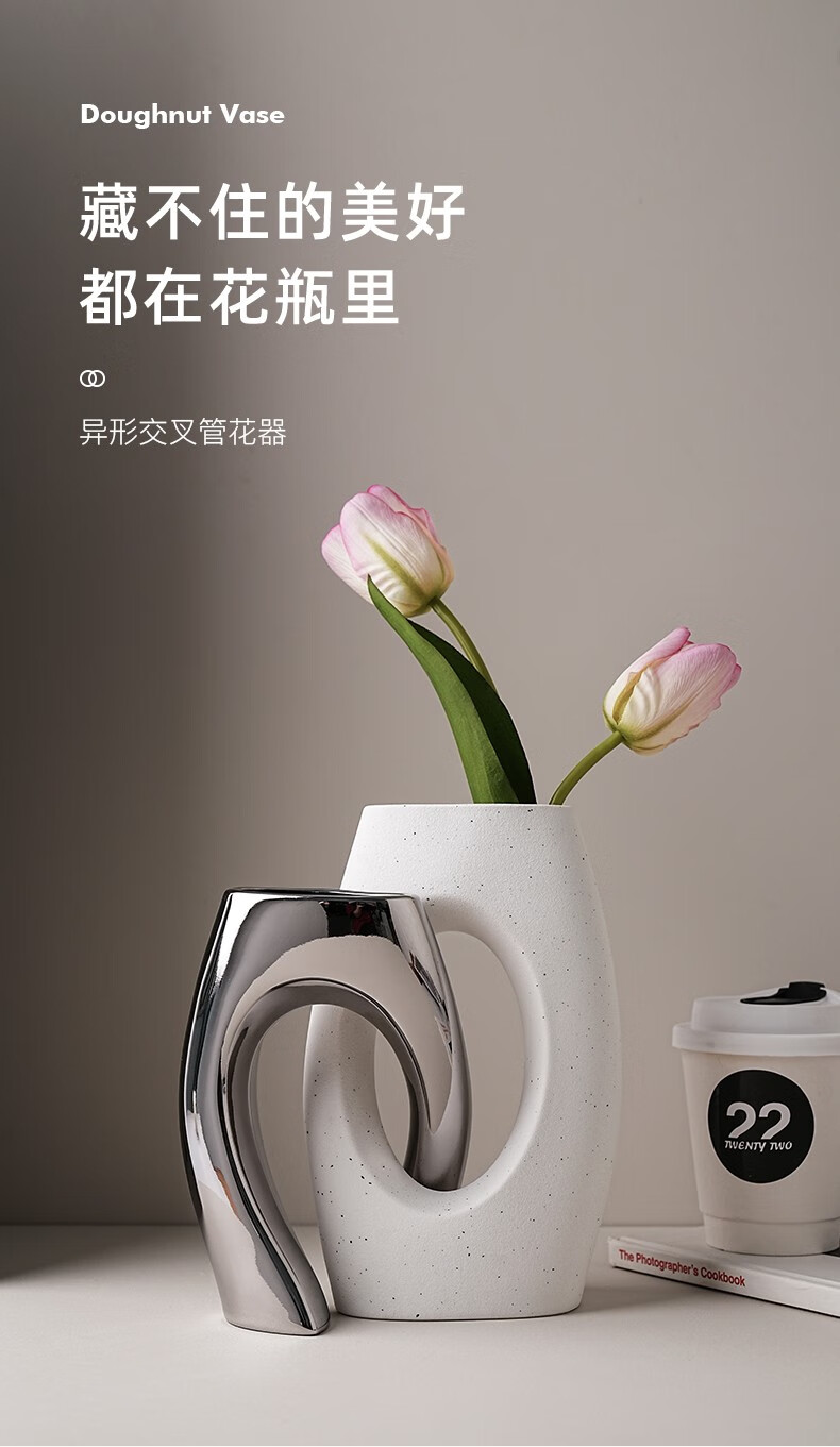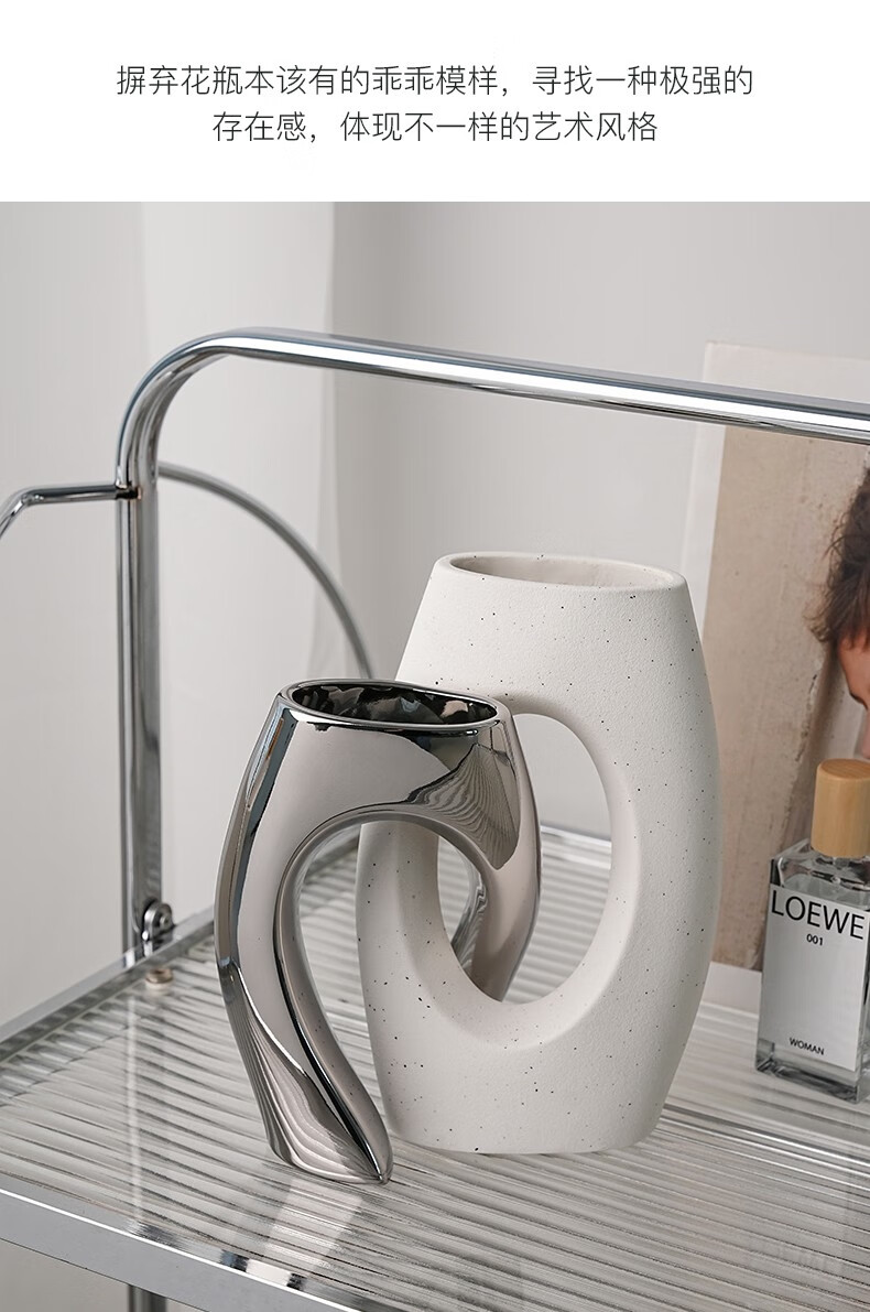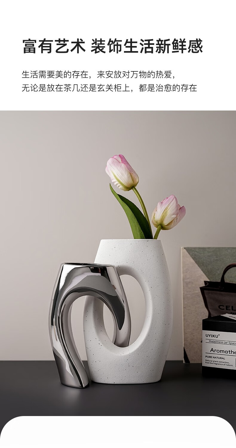 BHM art ceramic vase modern simple home creative decoration living room soft decoration high-end decoration plain embryo 21cm