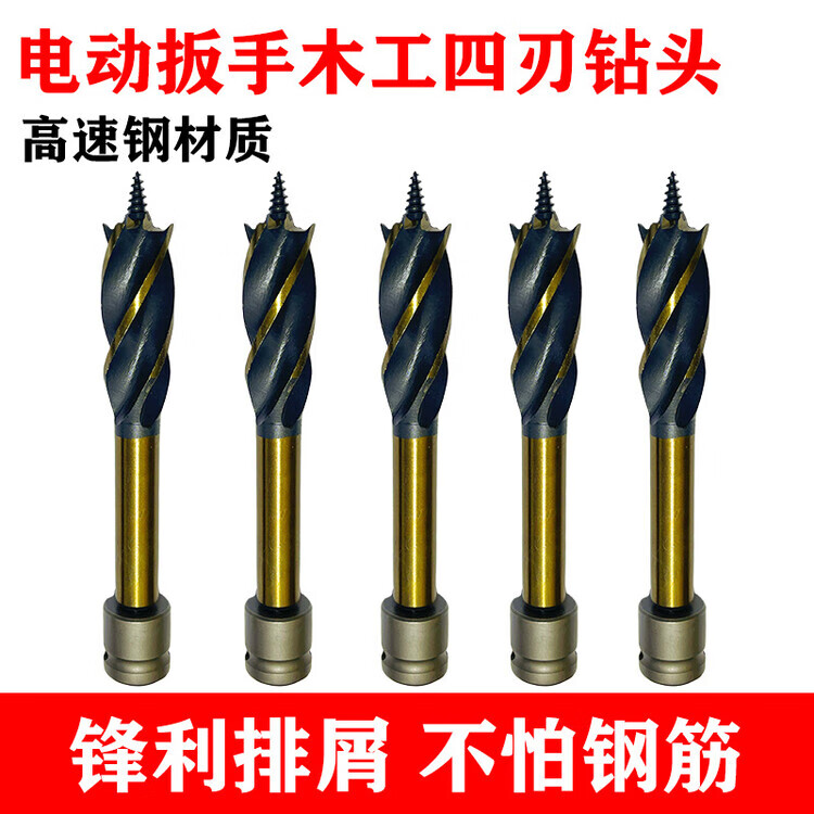 Electric wrench woodworking drill bit branch drill short four-slot drill twist drill template drill shelf board hole opener HSS high speed steel 16mm drill bit ultra short
