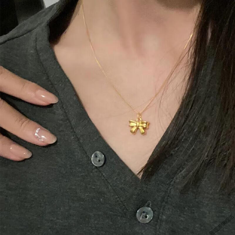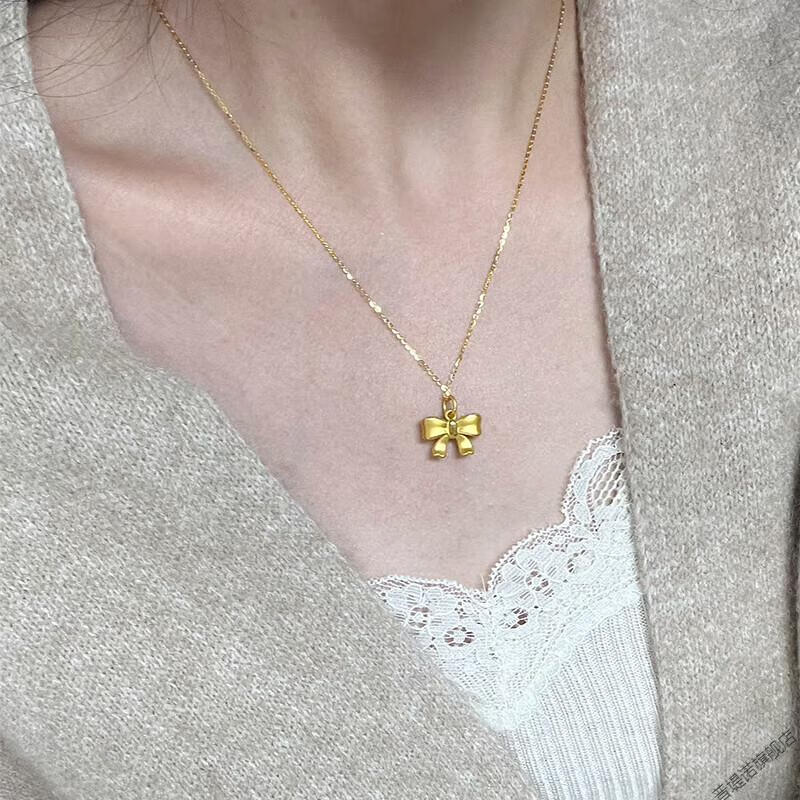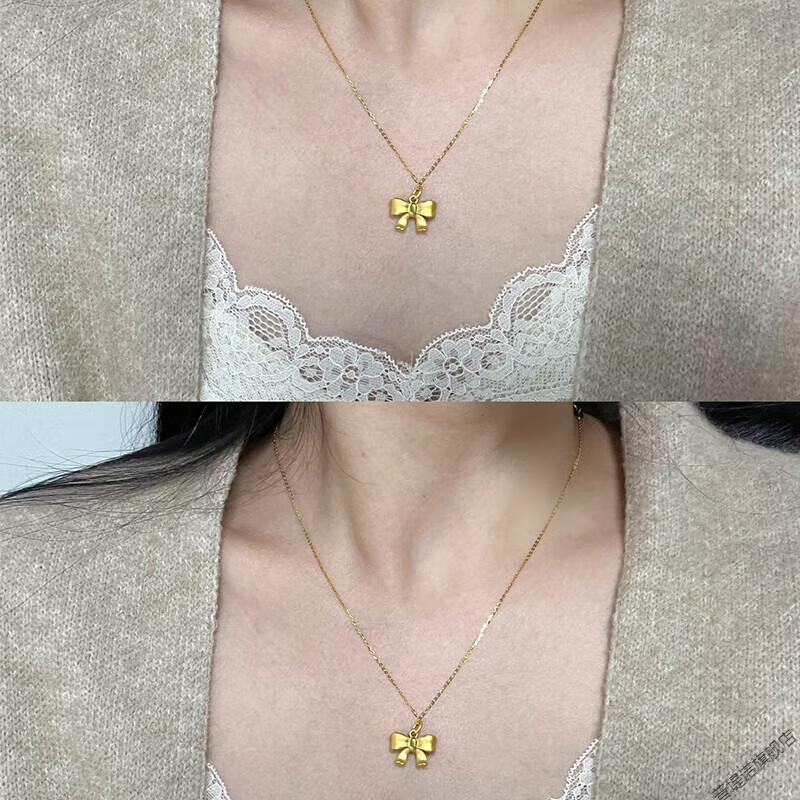 Putino's new product 18.k. gold. Fugitive Princess Bow Necklace Women's Fashion Temperament 2024 New Gold Clavicle Chain Fugitive Bow Necklace + O Chain
