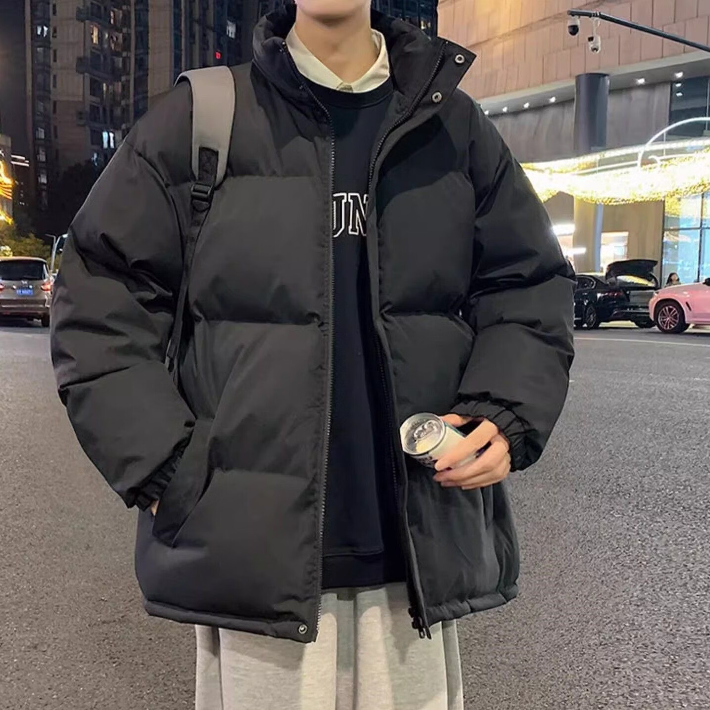 Zuoshangniao warm lambswool jacket, cotton-padded jacket, men's cotton-padded jacket, winter feather coat plus velvet cotton-padded jacket, lambswool cotton-padded jacket, three-layer quilted - black XL - recommended 110-130Jin Jin is equal to about 0.5kg