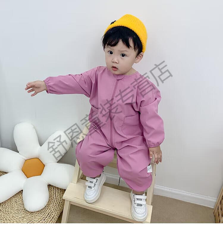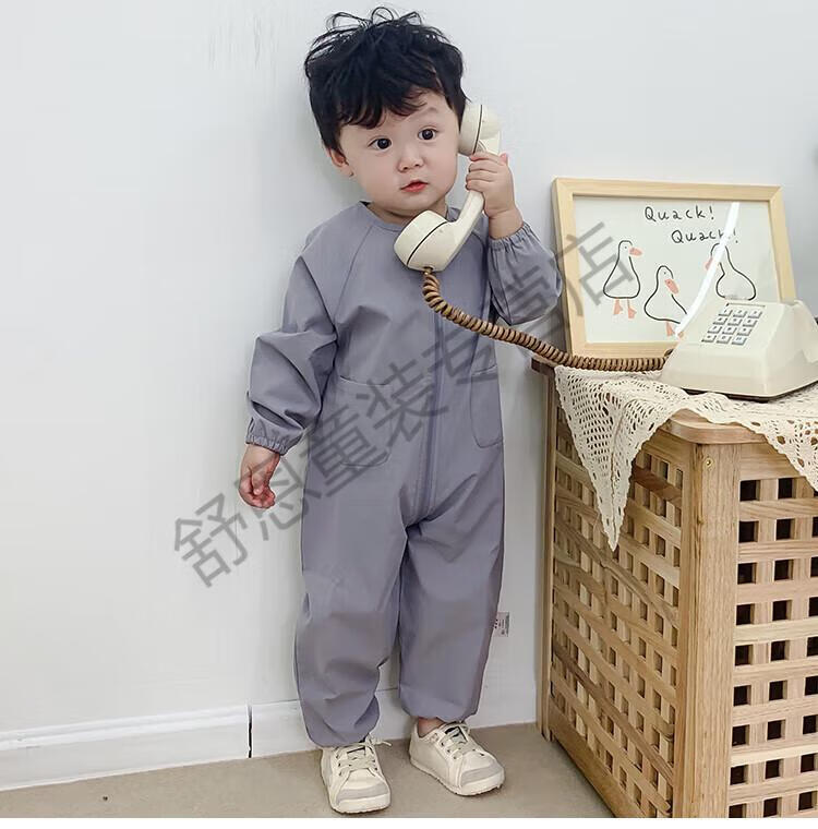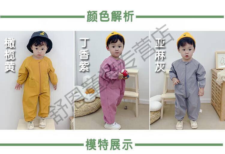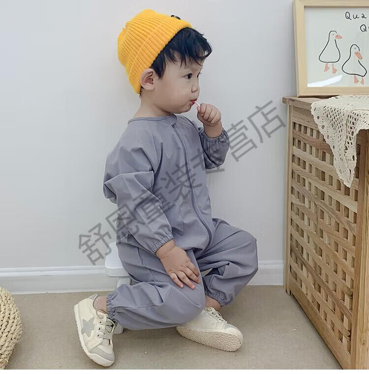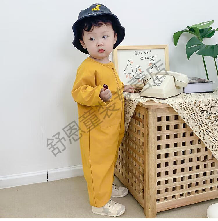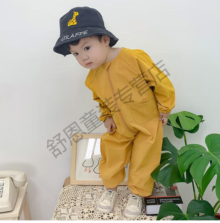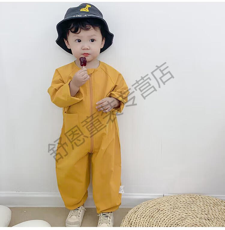 G.duck baby one-piece coverall, all-in-one, waterproof, toddler play in the sand, baby crawling suit, anti-dirty crawling suit for boys, olive yellow, loose version, 120cm, size 120/height 100-106cm