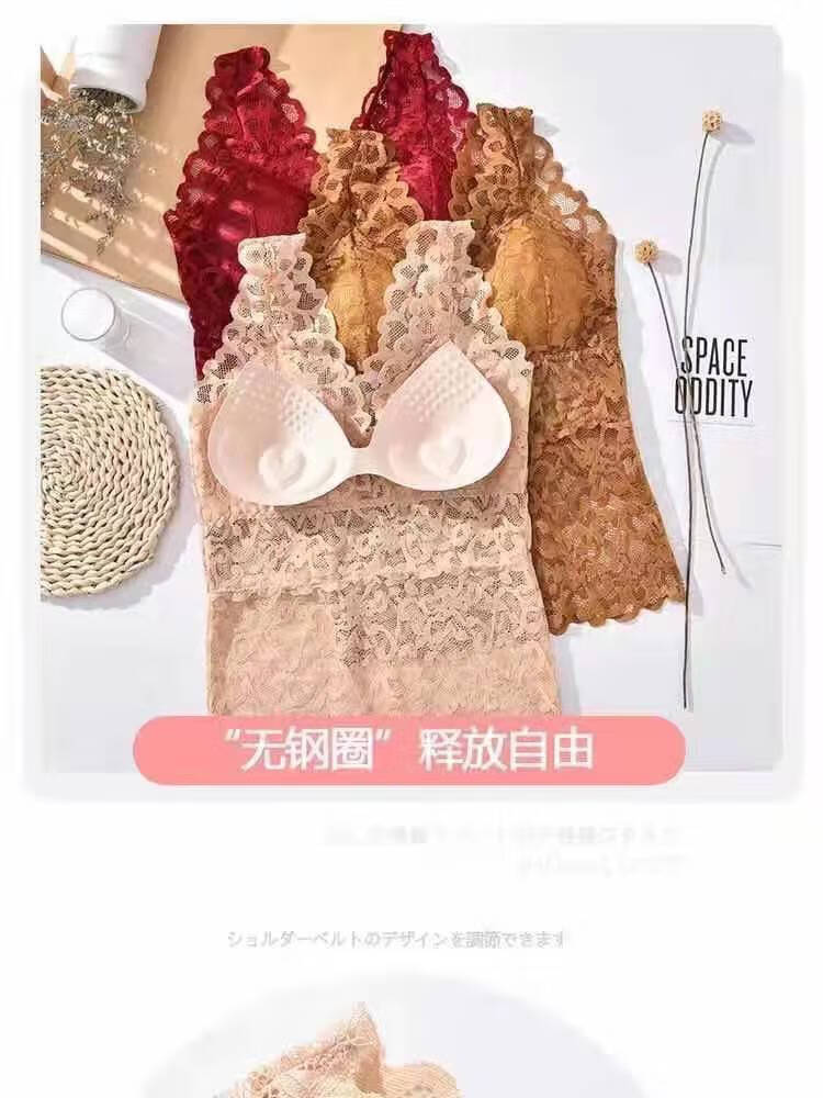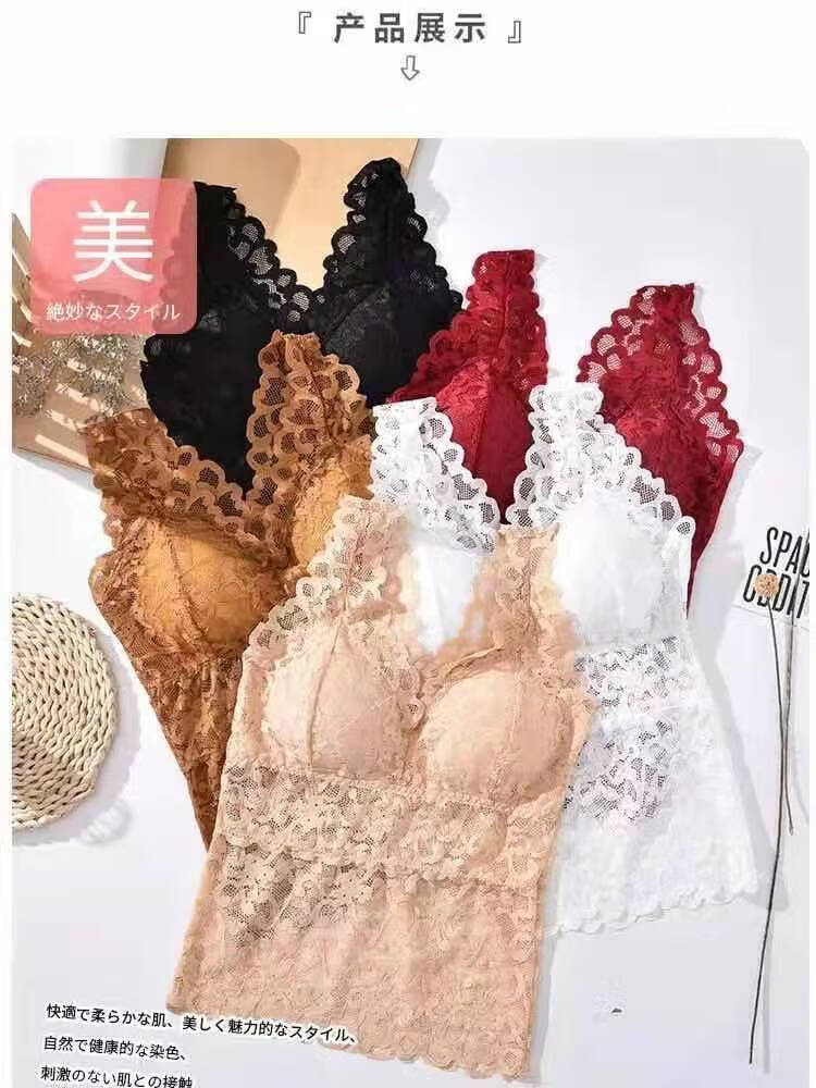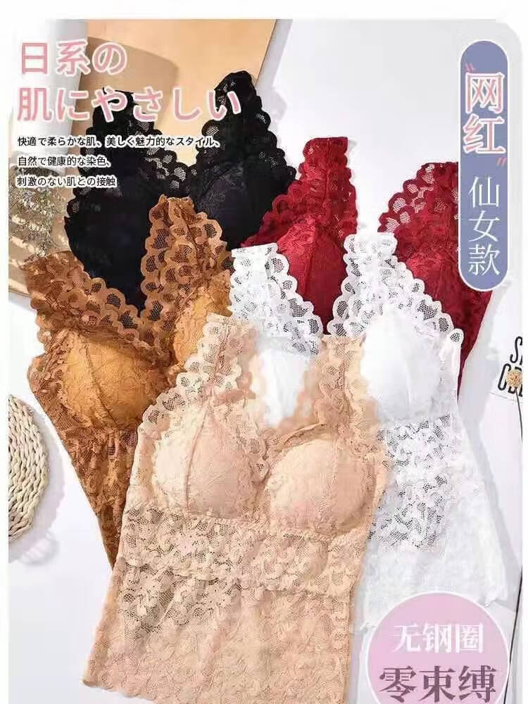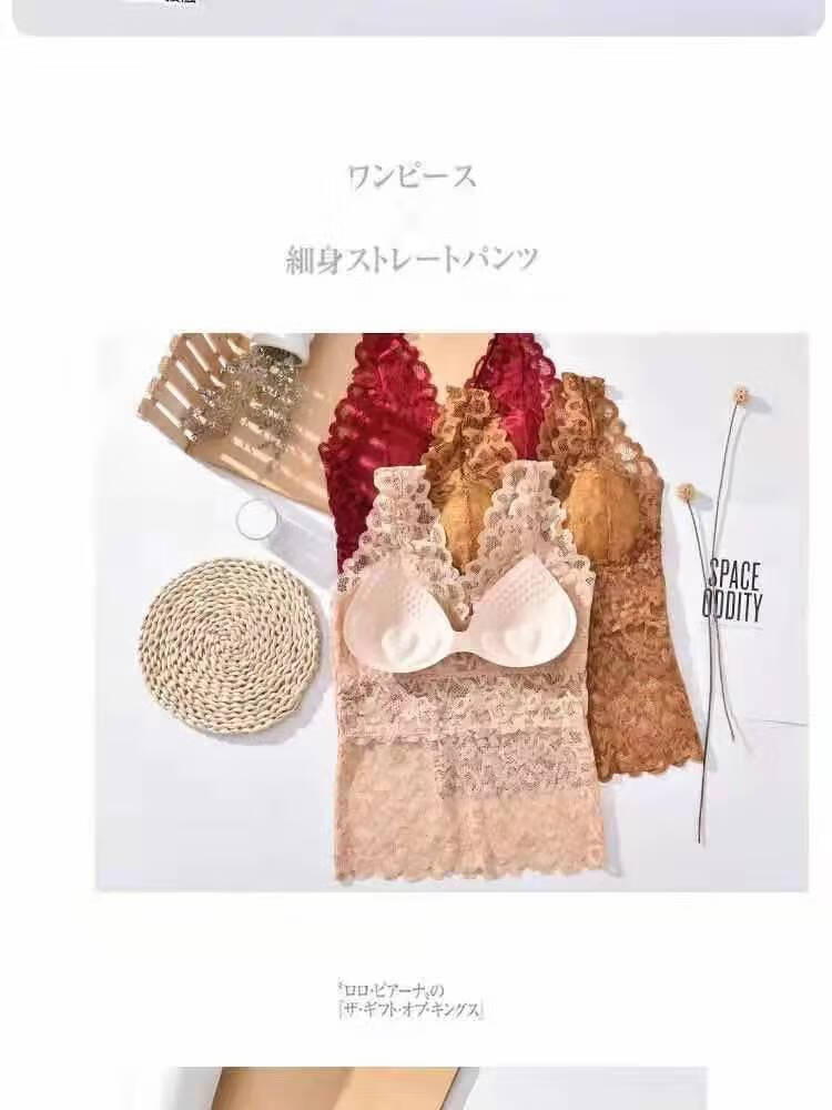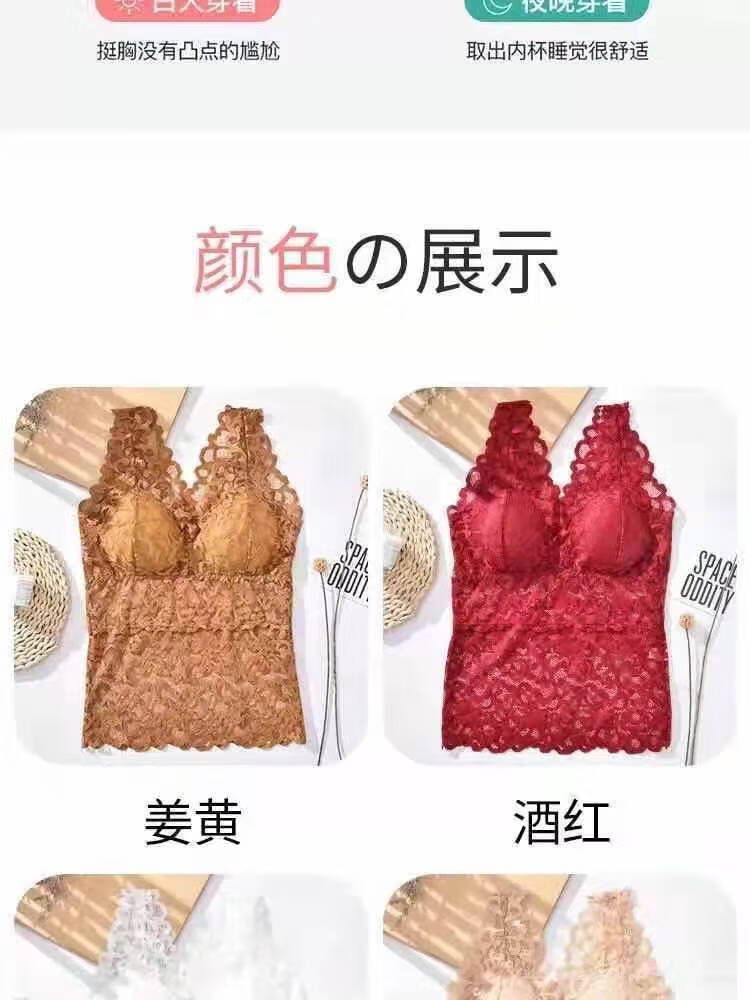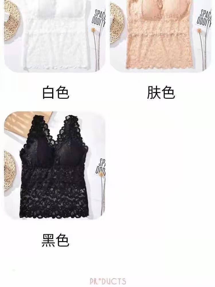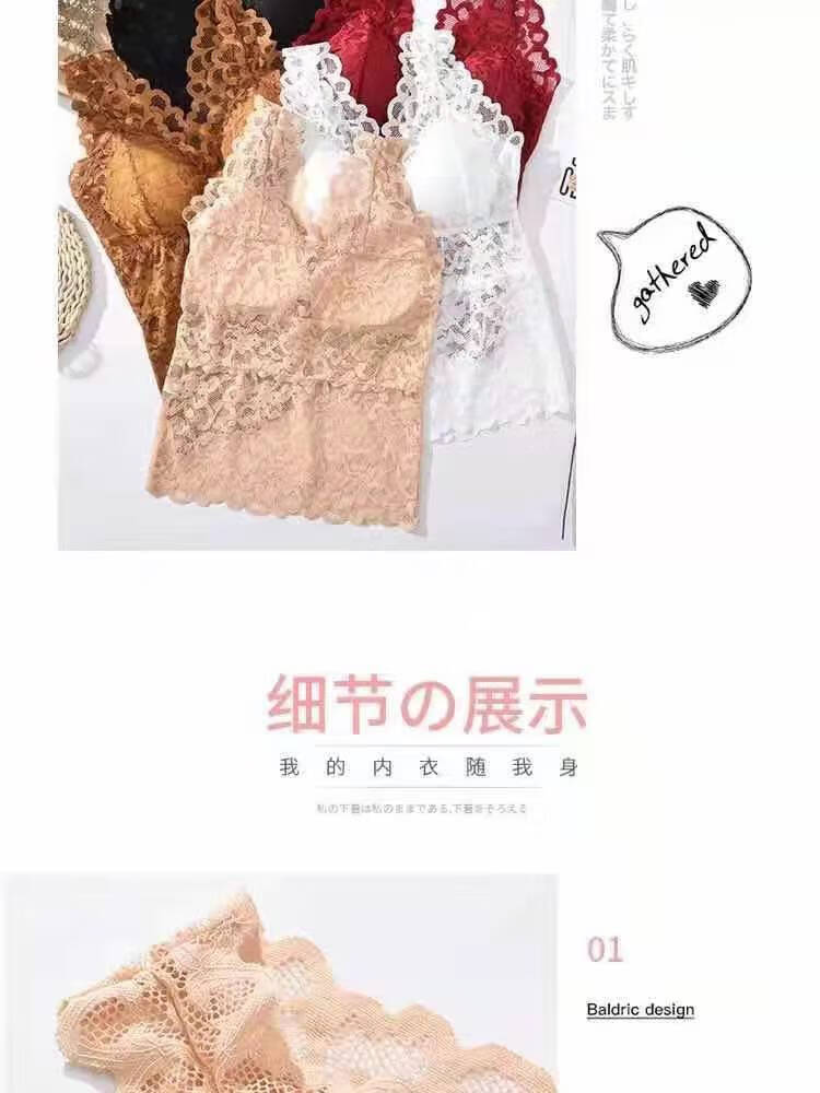 LangSha large size lace beautiful back all-in-one bra for women summer slim long camisole underwear for female students Korean style tube top white + black XL recommended (105-130Jin Jin equals 0.5kg)