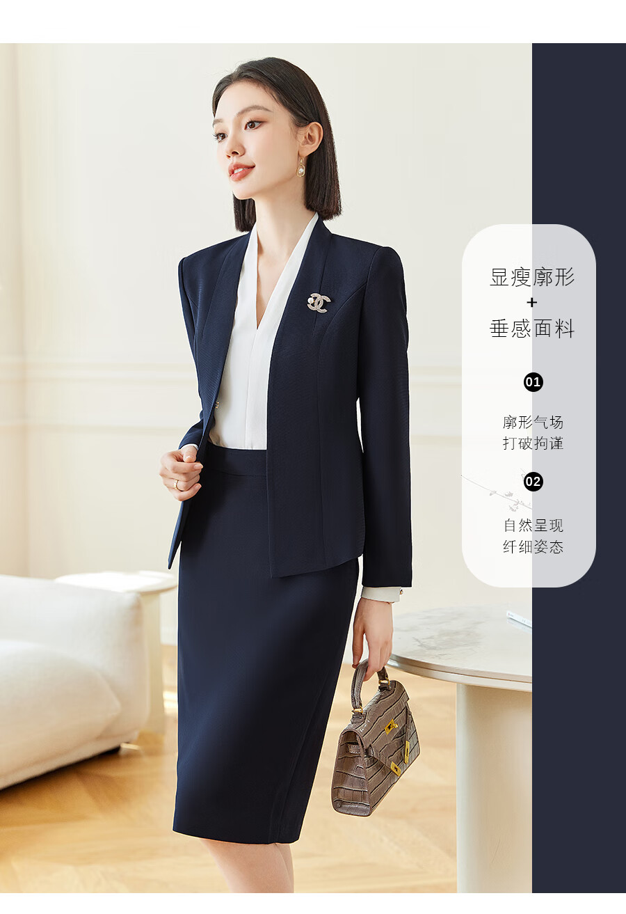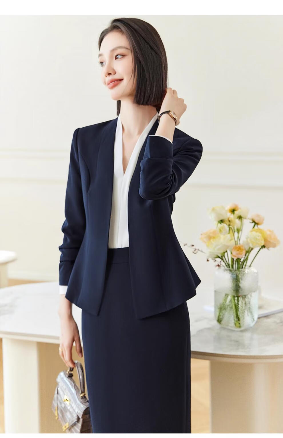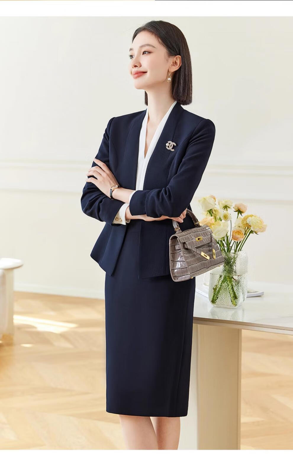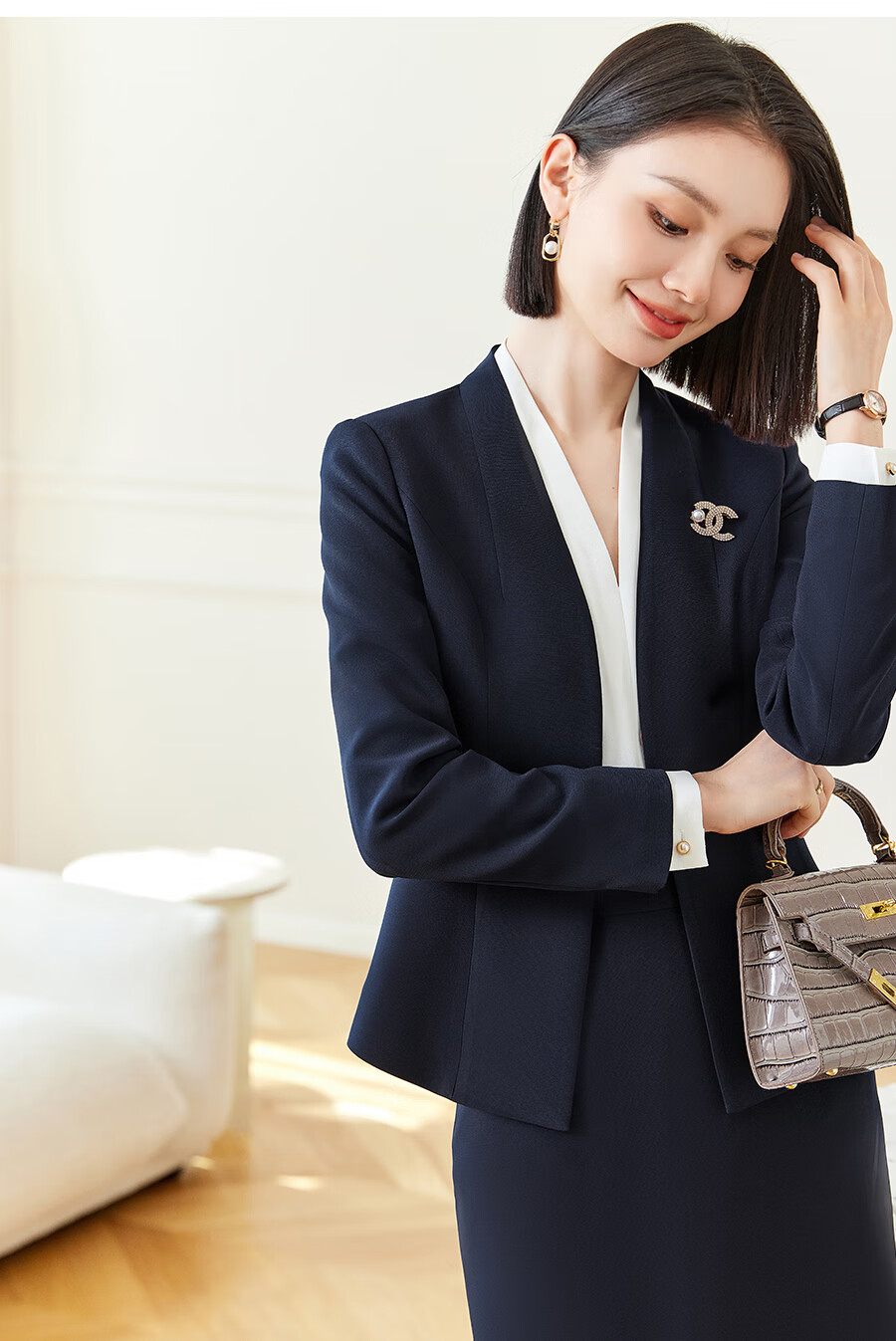 Weishipin Spring Suit Jacket for Women Small 2024 New Style Ladylike Professional Suit Work Clothes Navy Suit + Midi Skirt L Recommended 108-117 Jin Jin equals 0.5 kg