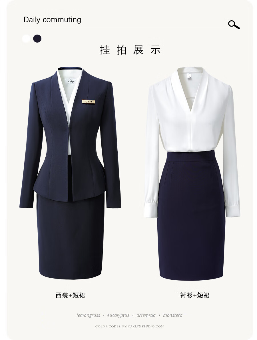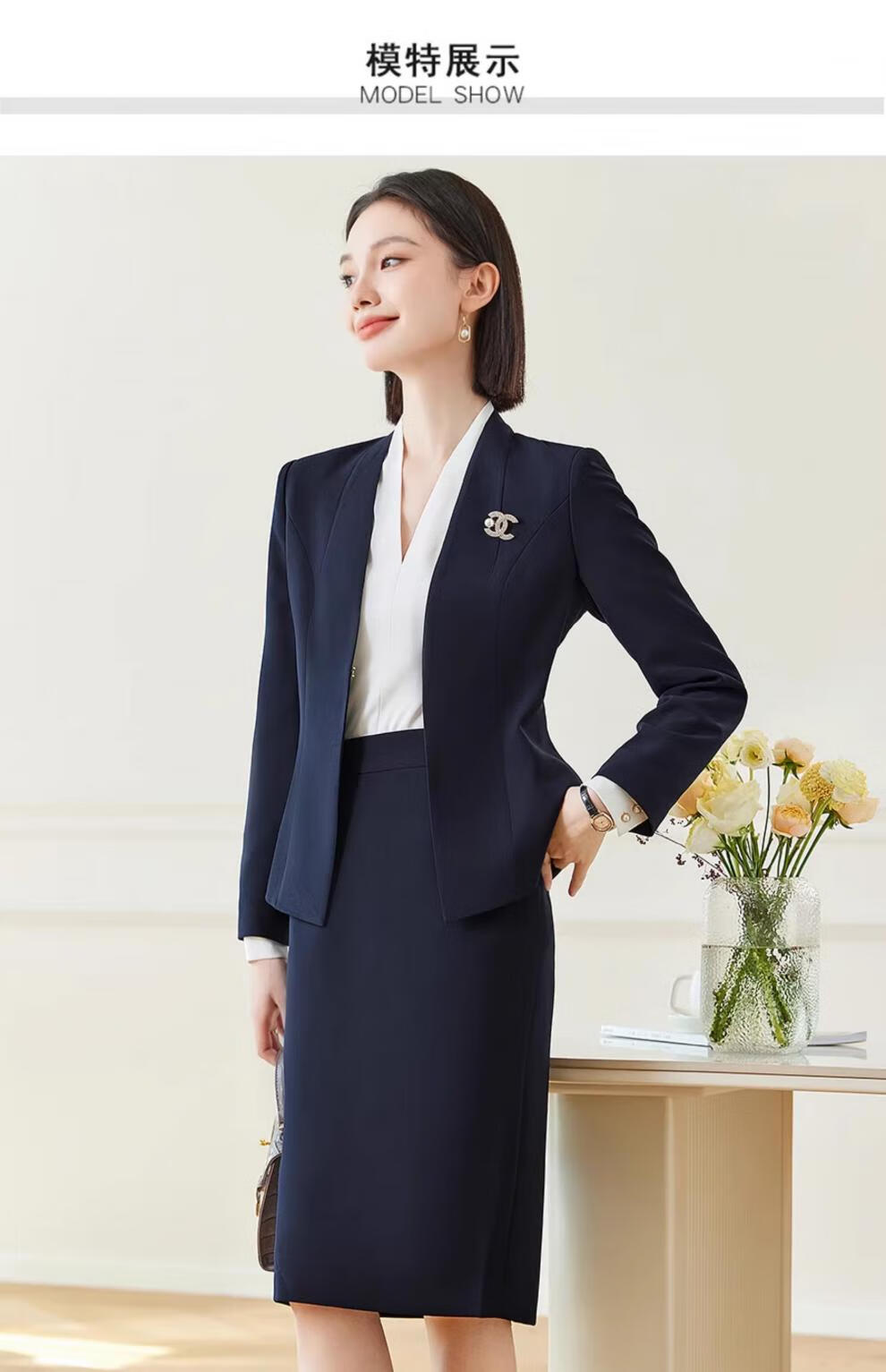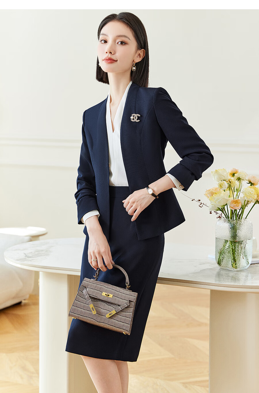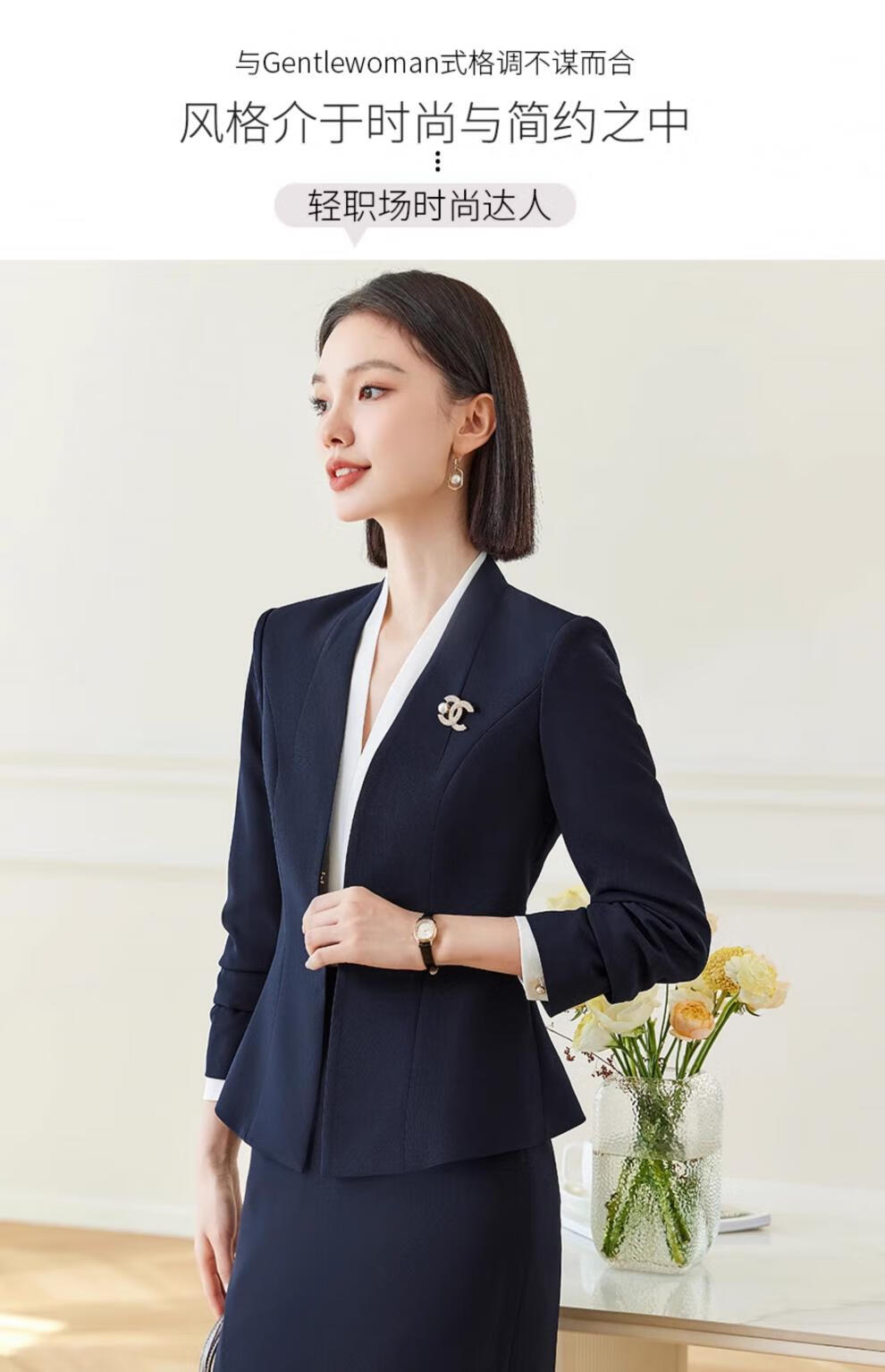 Weishipin Spring Suit Jacket for Women Small 2024 New Style Ladylike Professional Suit Work Clothes Navy Suit + Midi Skirt L Recommended 108-117 Jin Jin equals 0.5 kg