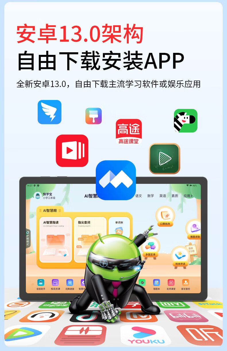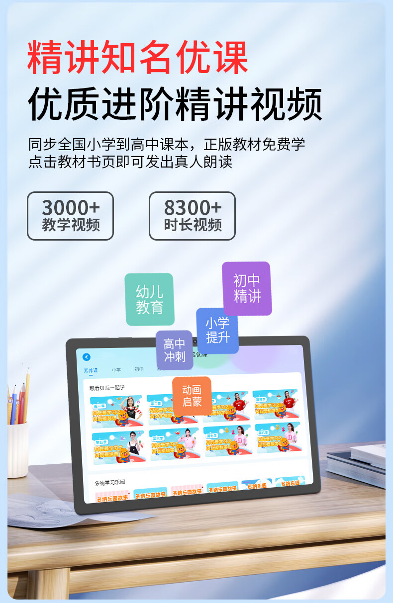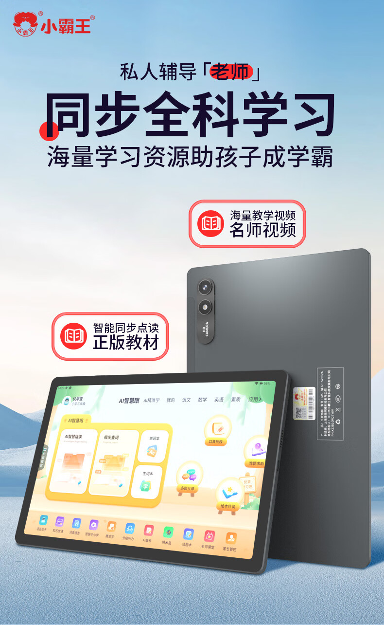 Xiaobawang M5 tablet computer learning machine 12G running primary school junior high school and high school textbooks synchronization English language math children students online classes special artifact tutor reading machine 12G running + 128G full subject synchronization accurate learning