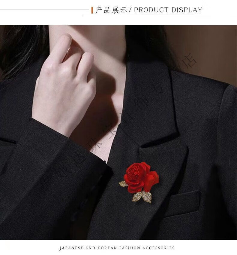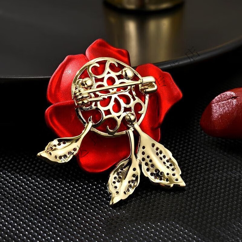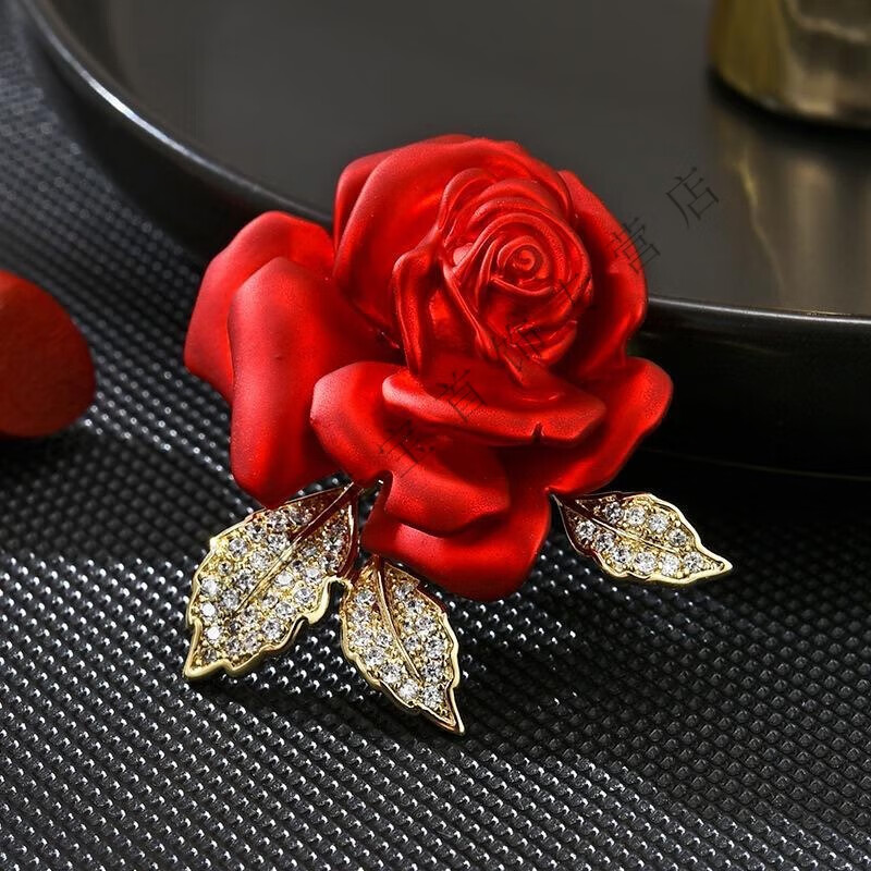 KLUCK gold store model Chinese red rose brooch, high-end women's corsage, high-end sense brooch, new exquisite style, three-petal red rose corsage