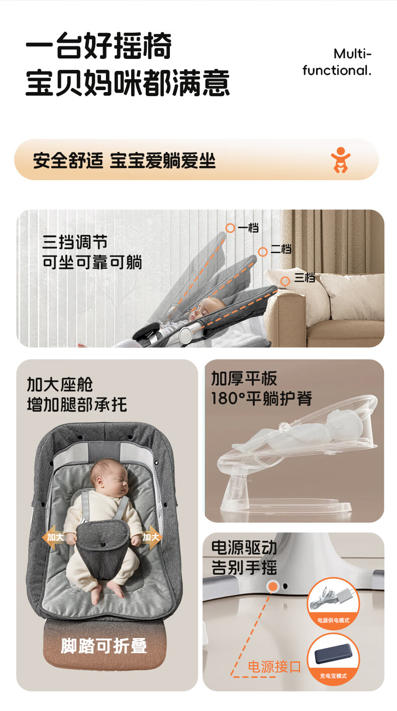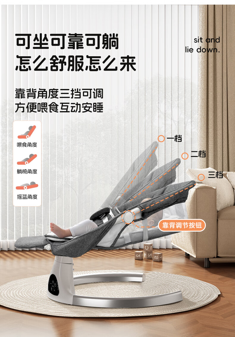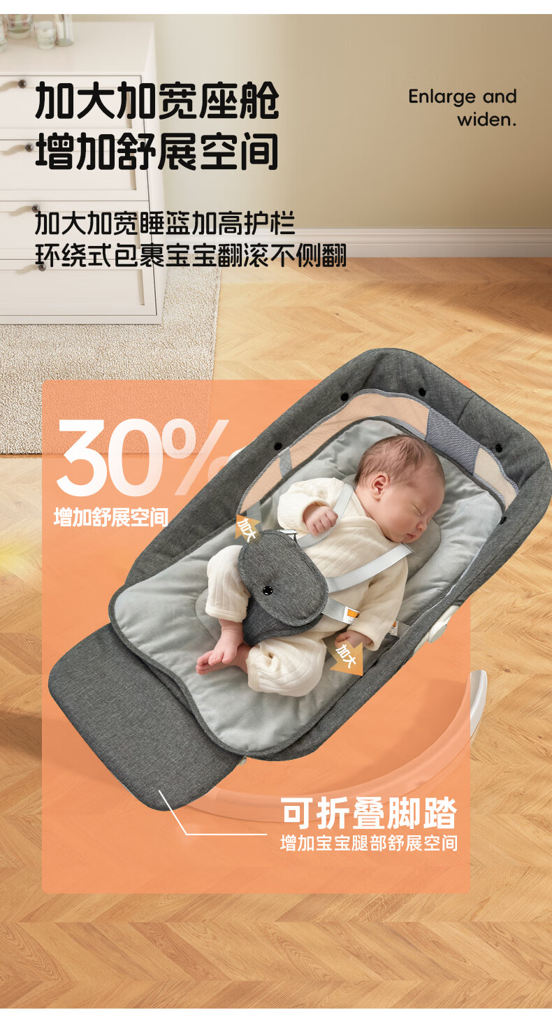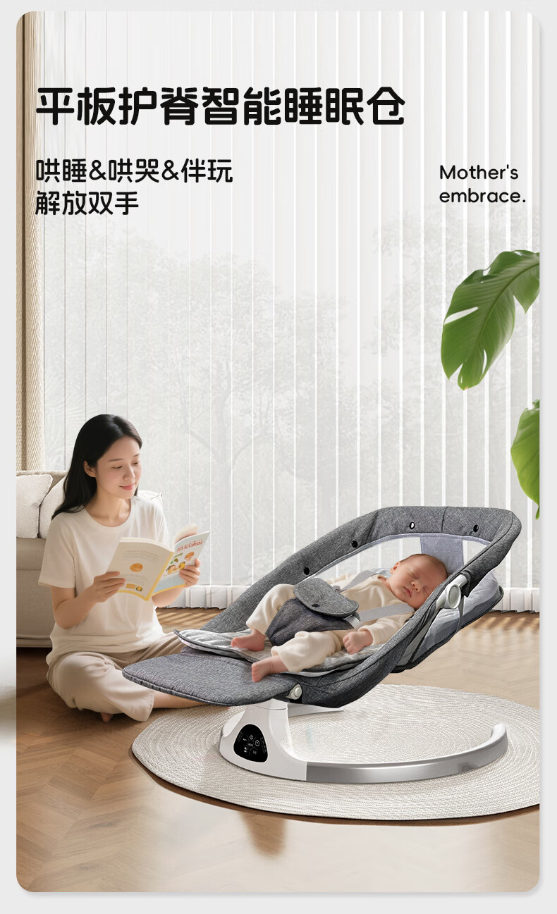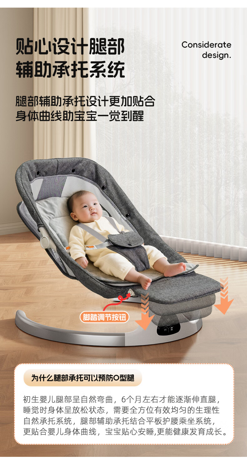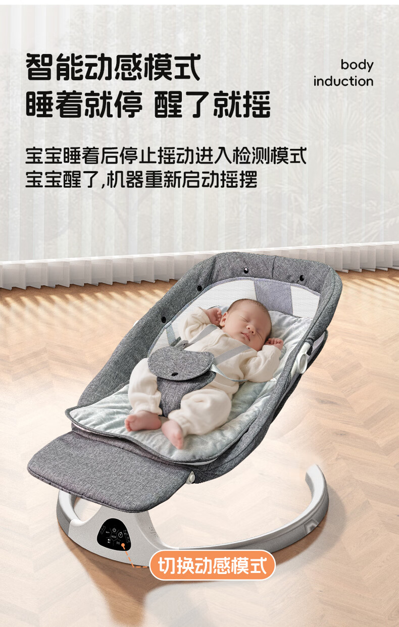 AOTGSSE Edison baby rocking chair to coax baby artifact electric rocking chair baby sleep cradle newborn rocking bed twilight gray can 180 flat lay + upgraded foot pedal