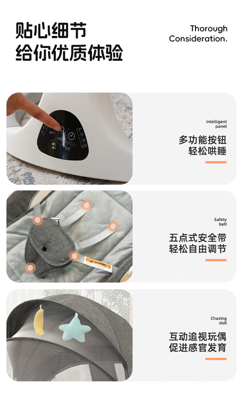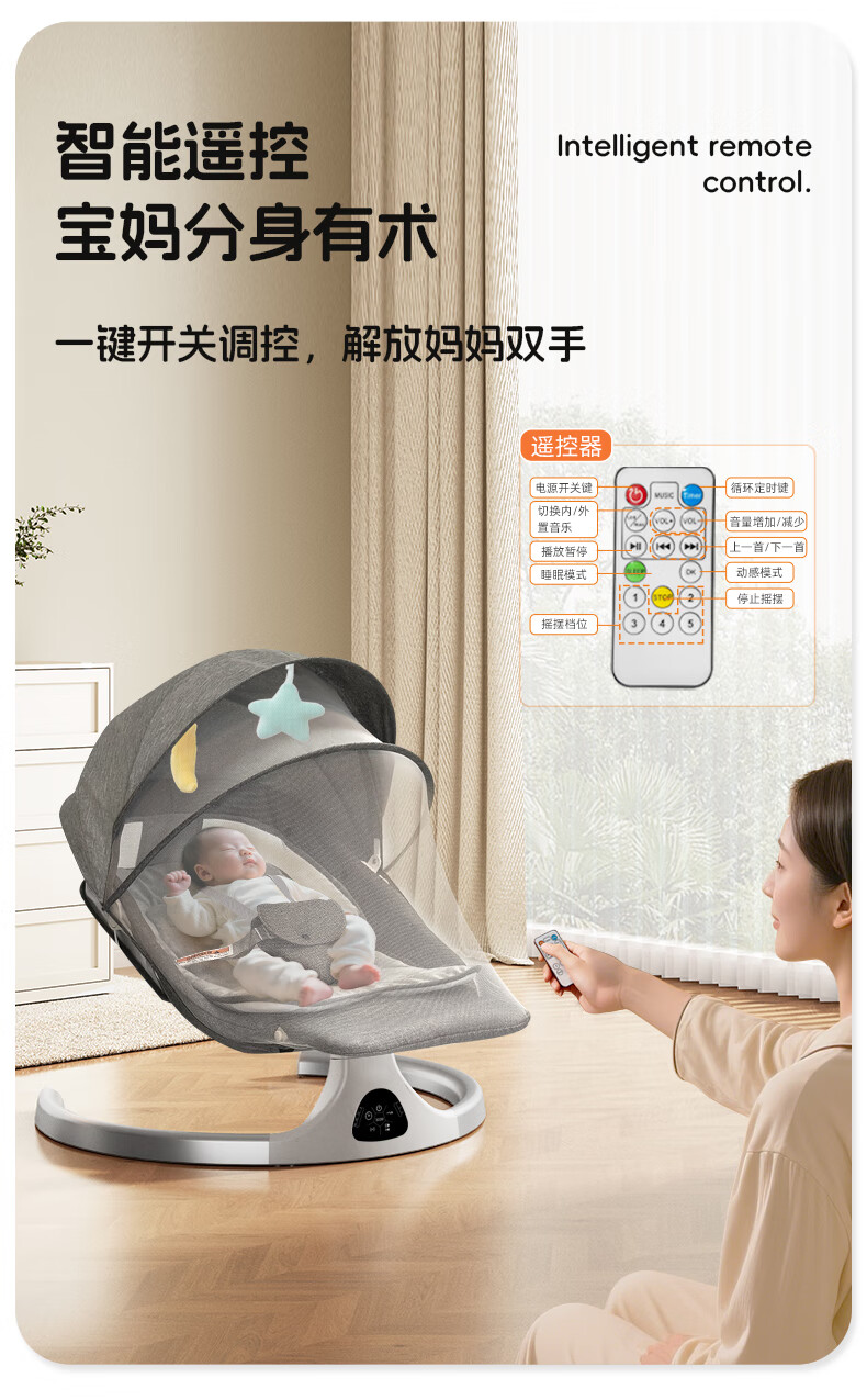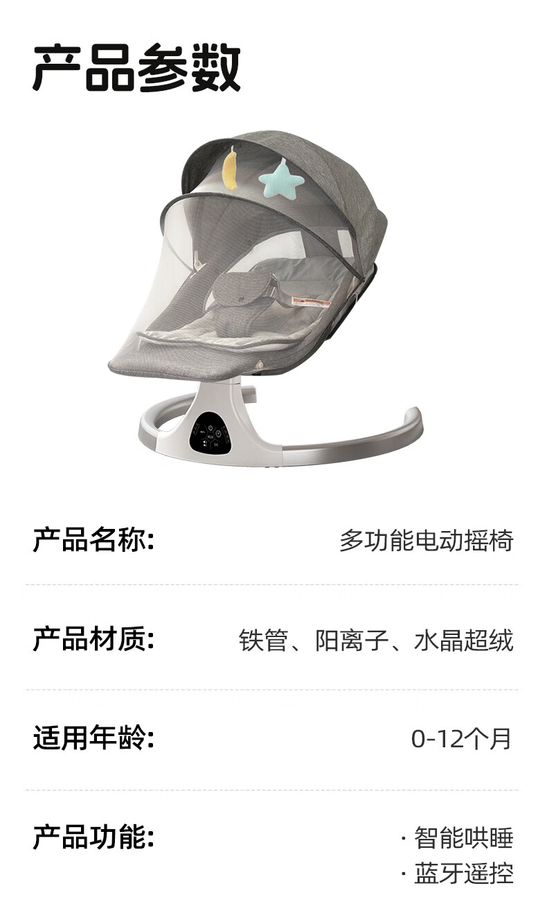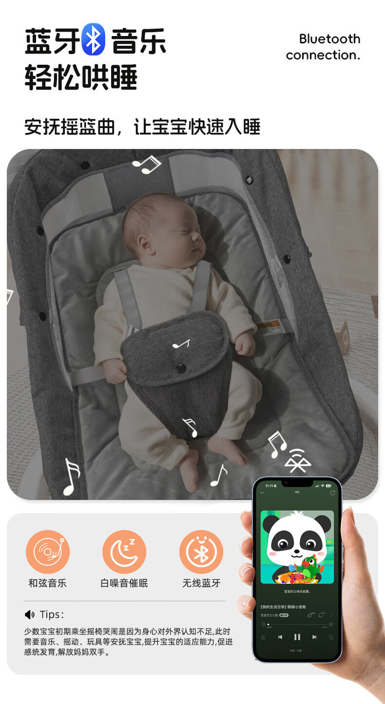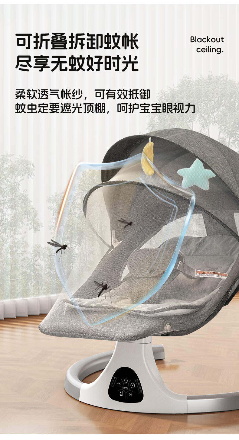 AOTGSSE Edison baby rocking chair to coax baby artifact electric rocking chair baby sleep cradle newborn rocking bed twilight gray can 180 flat lay + upgraded foot pedal