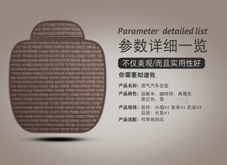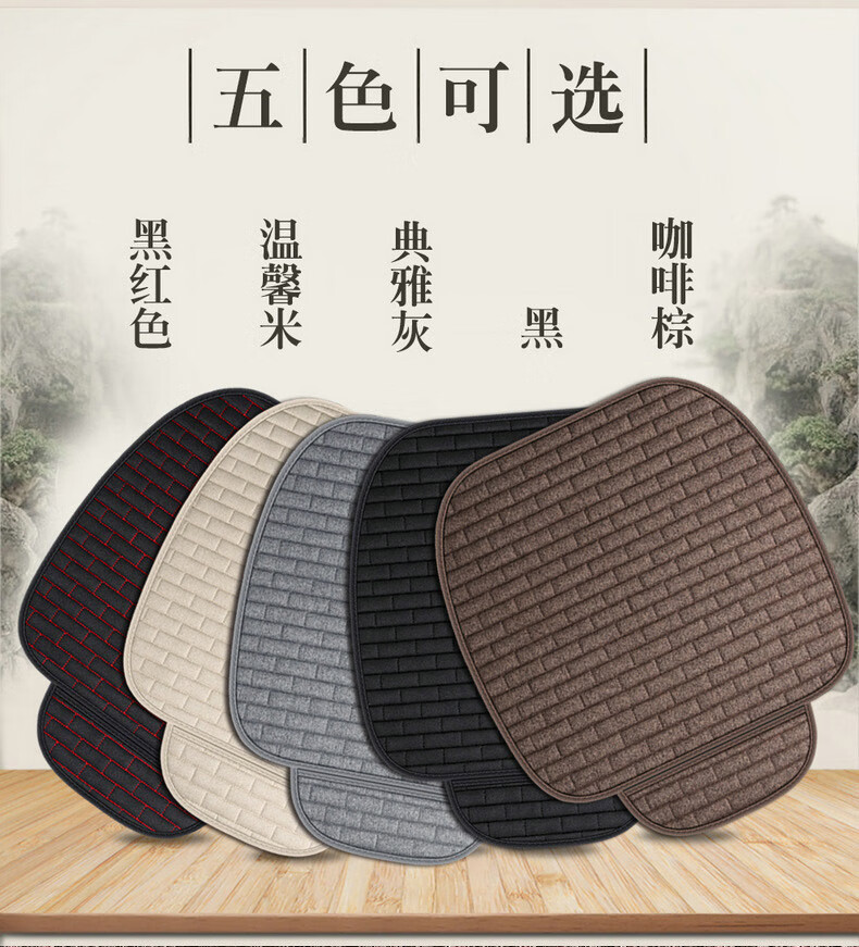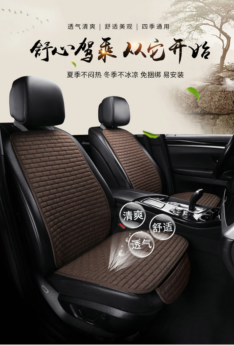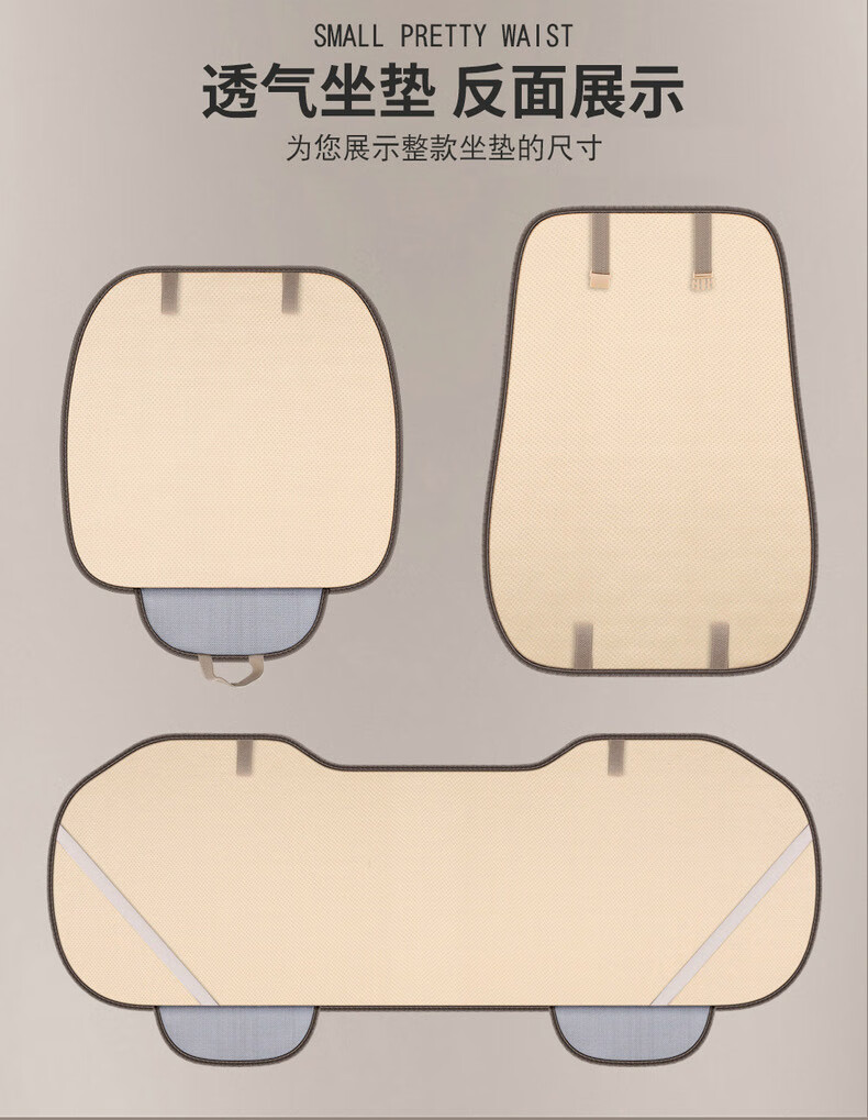 Select all car seat cushions, linen three-piece set, four-season universal car seats, full car seat cushions, non-slip, tie-free, breathable seven-piece set, standard five-seat three-piece set, warm rice