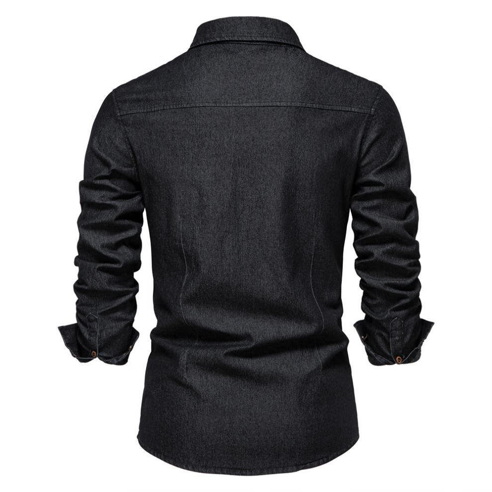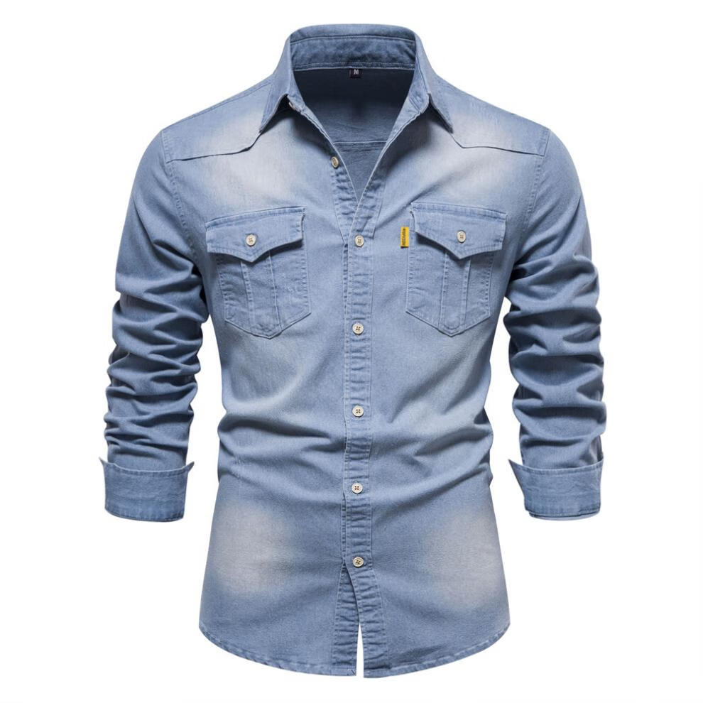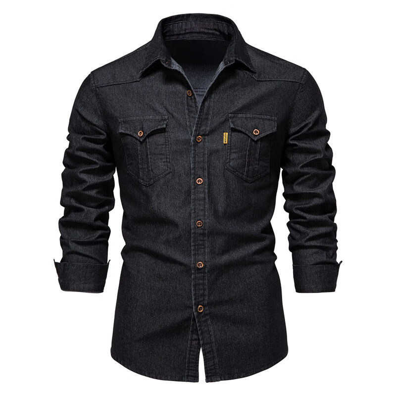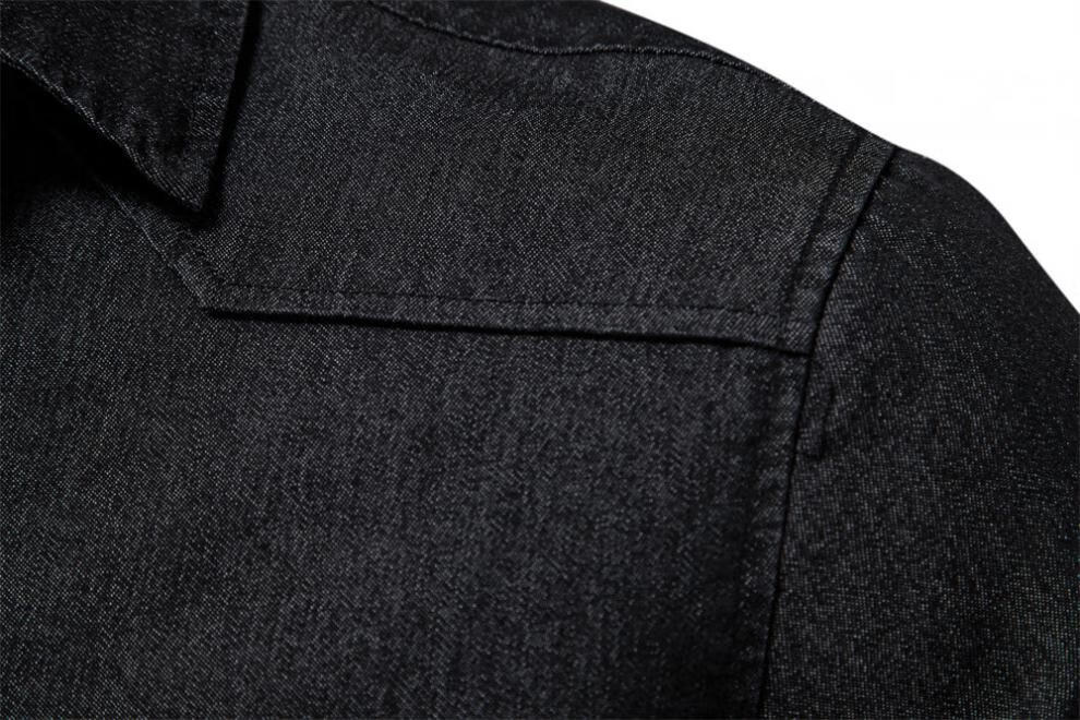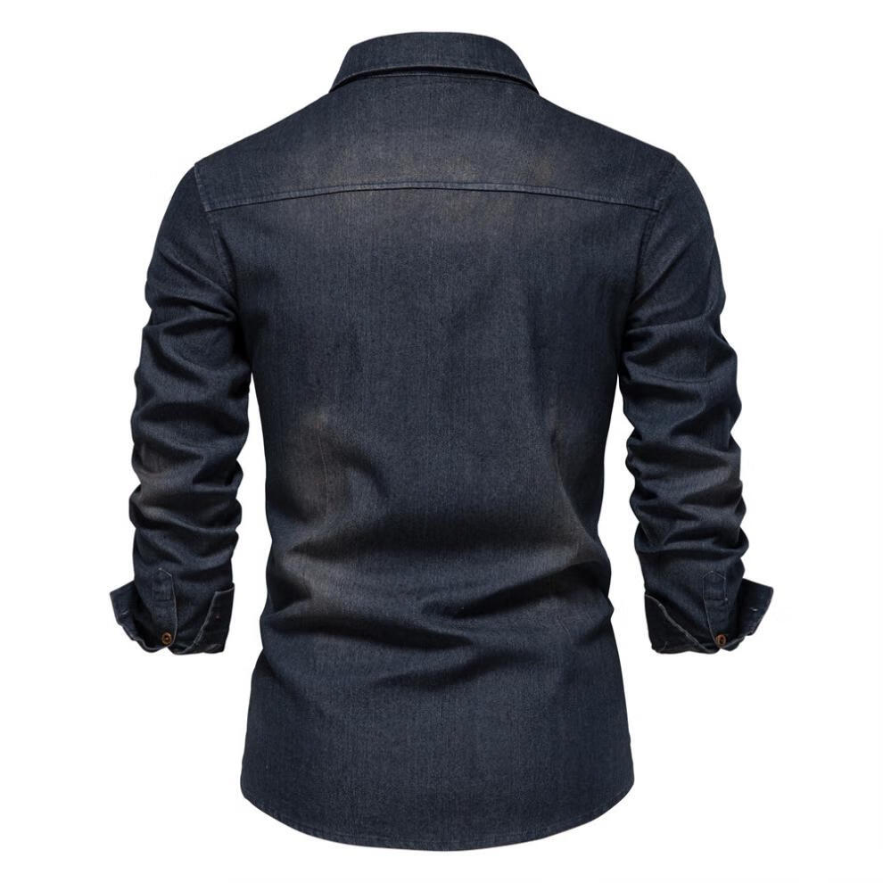 Pierre Cardin spring and autumn new slim denim lapel shirt American version trendy men's casual solid color jacket men's long-sleeved lining knitted navy XL