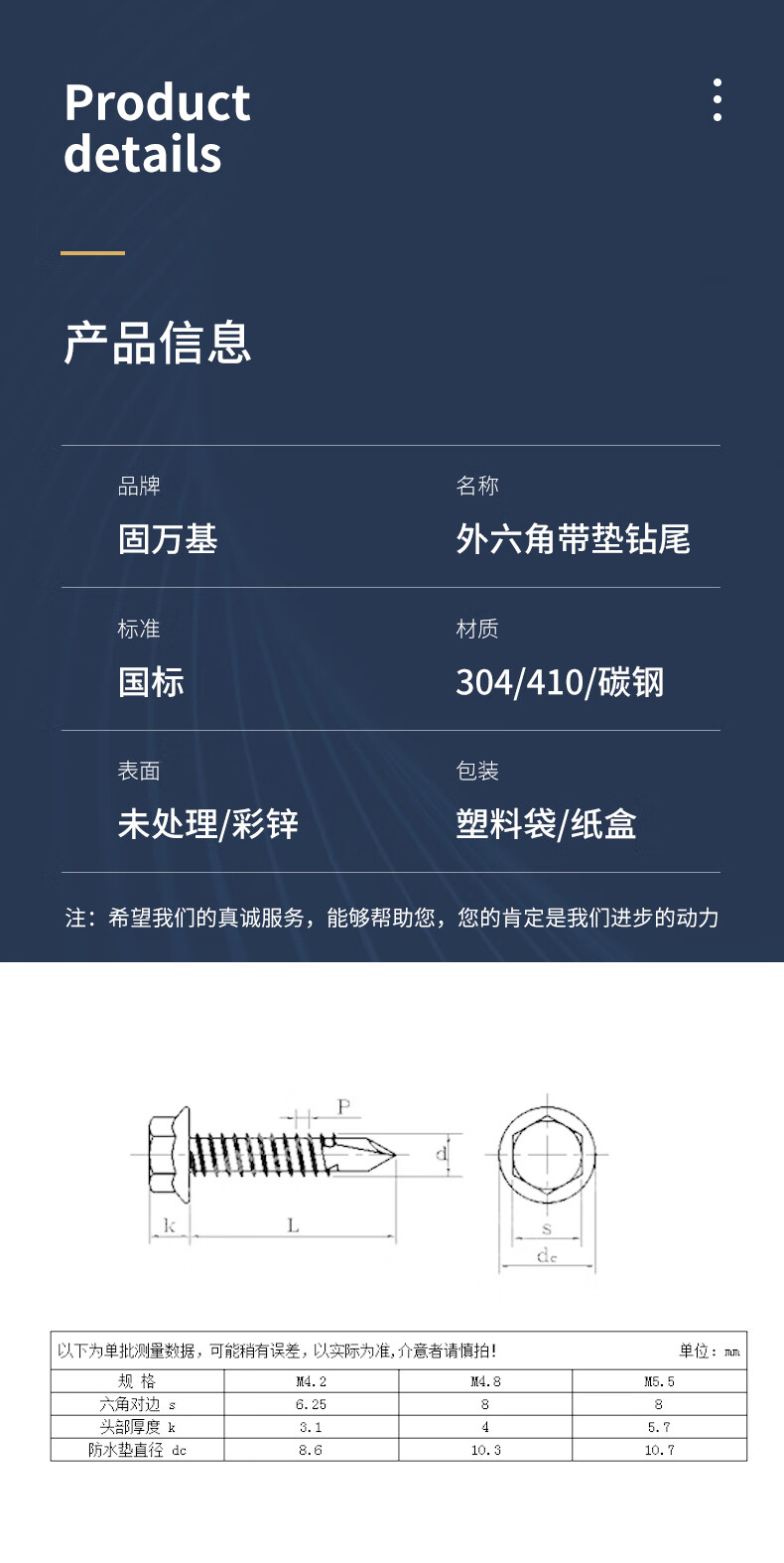 Guwanji external hexagon drill tail screw color steel tile self-tapping self-drilling dovetail screw tapping iron sheet steel plate national standard accessories with rubber ring M5.5x125 (10 pieces) 410