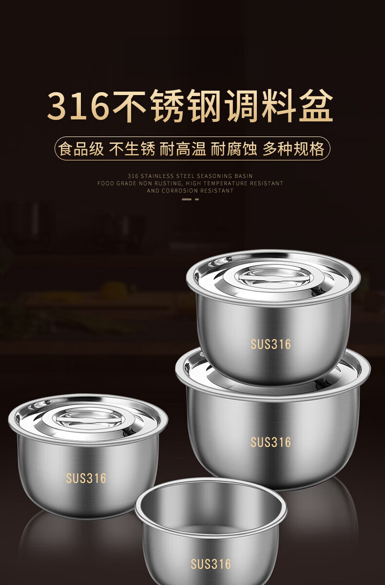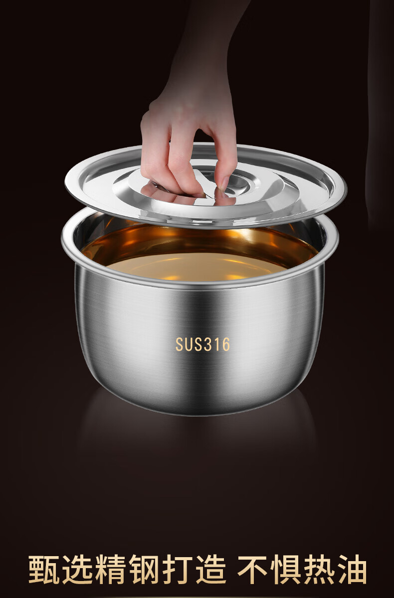 Lard basin 316 stainless steel lard tank kitchen household high temperature resistant old-fashioned oil basin with lid oil pot oil tank seasoning 316 stainless steel oil basin 17CM 1.34L