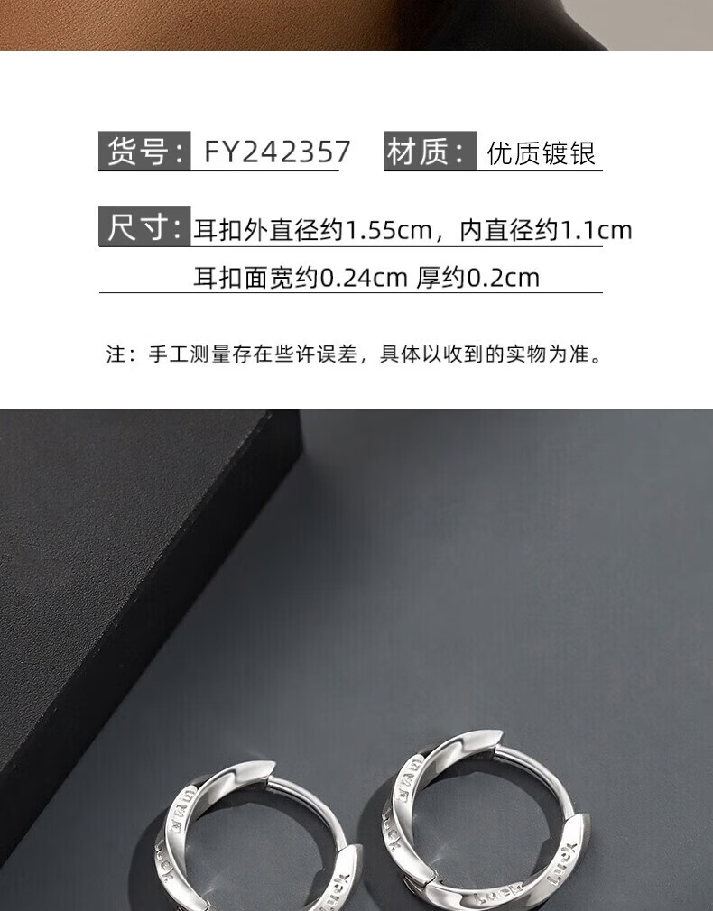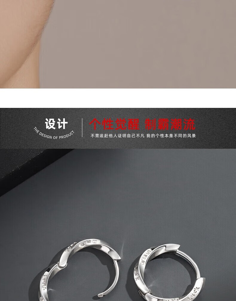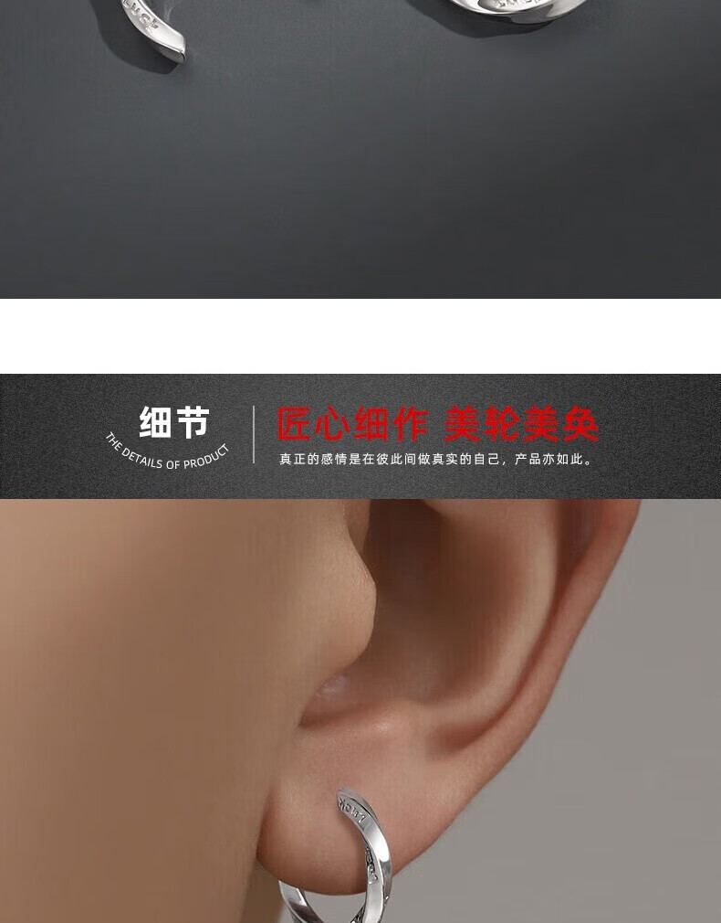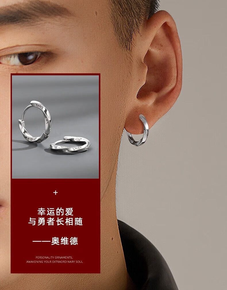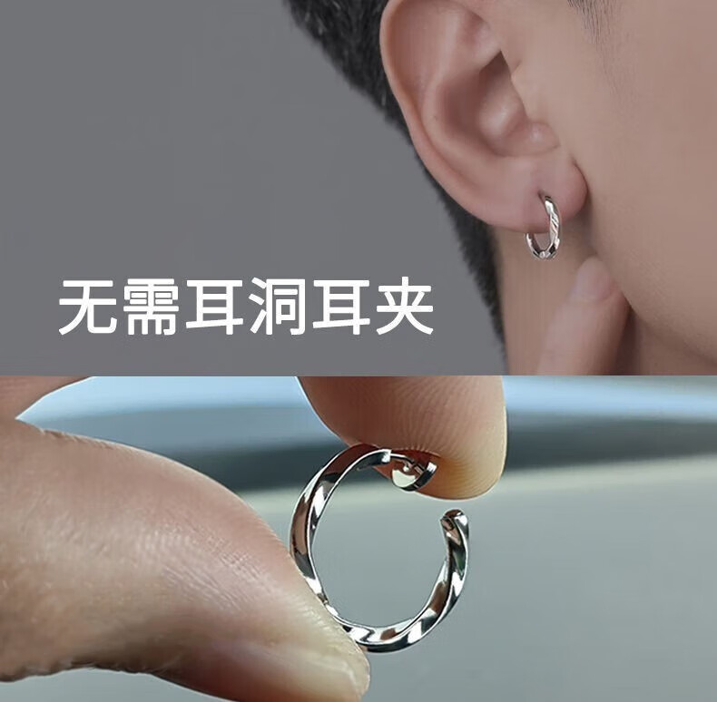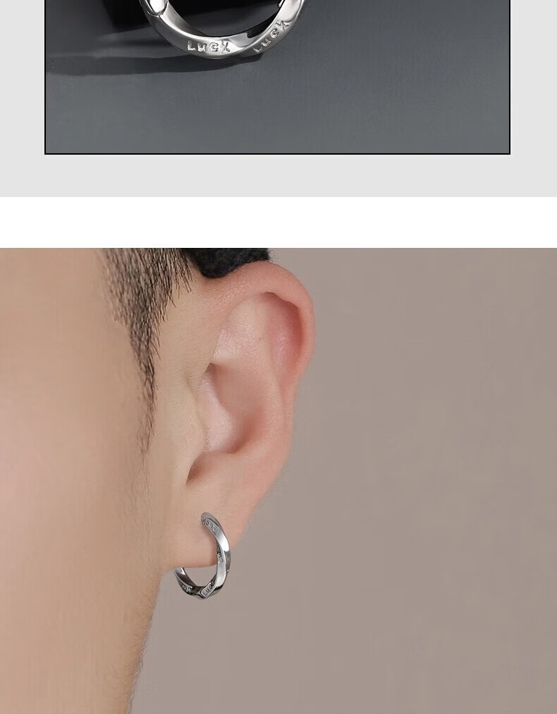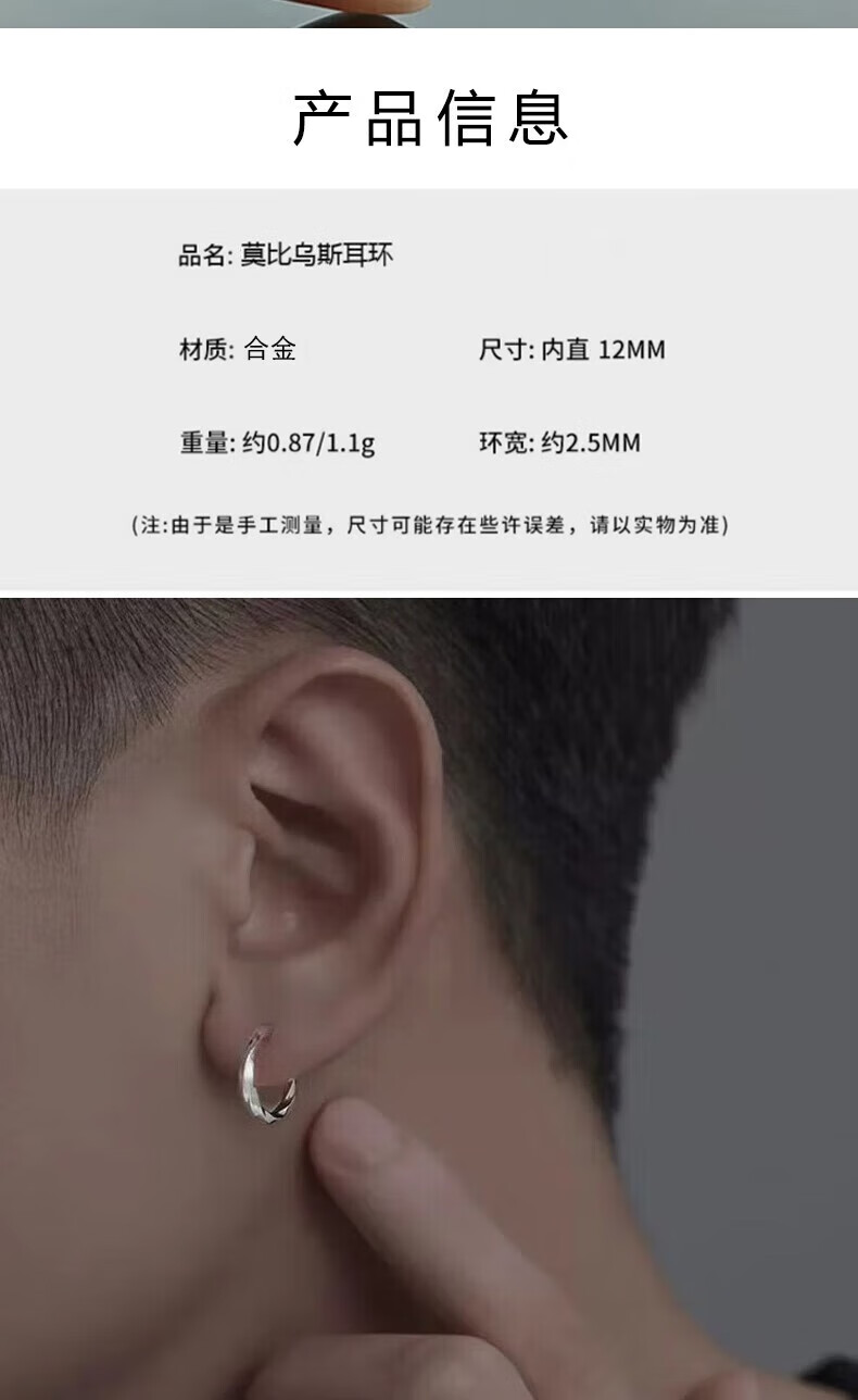 Xinshe Möbius ring earrings for men, trendy non-pierced earrings, men's punch-free fake earrings, personalized temperament spring earrings, 12mm pair