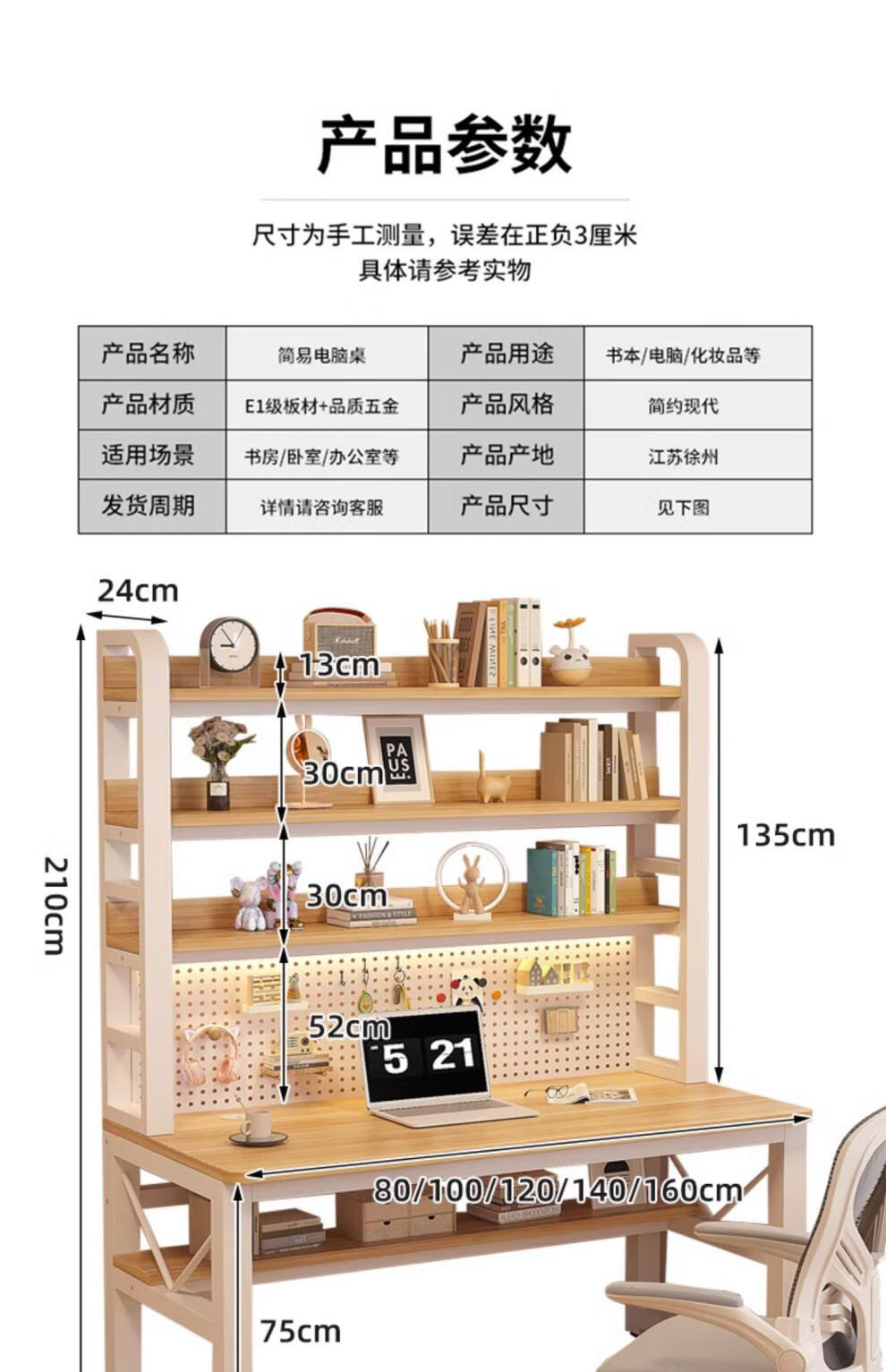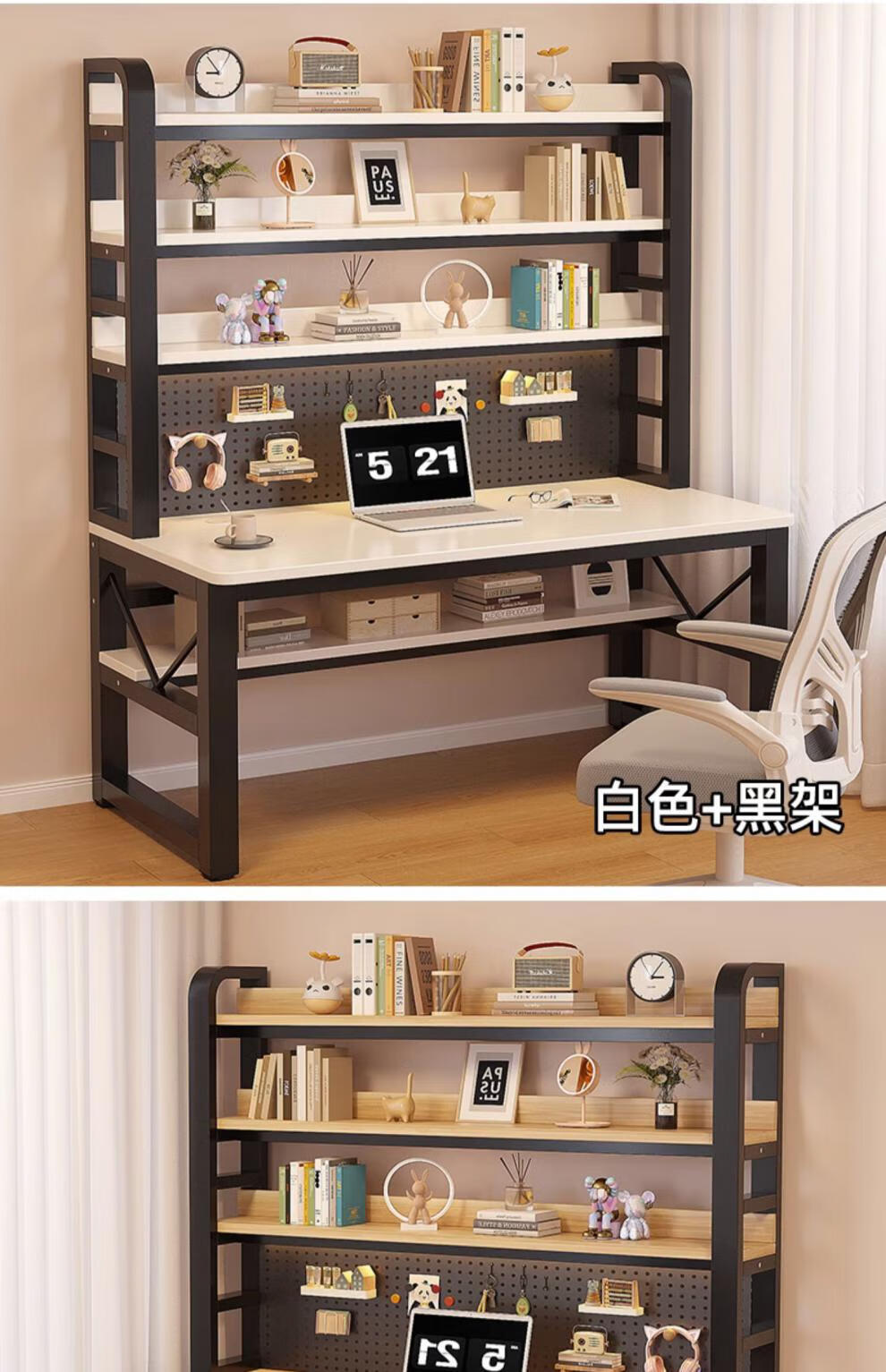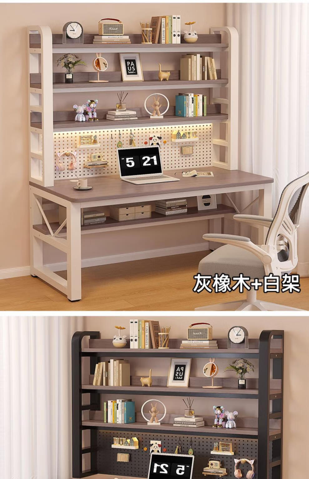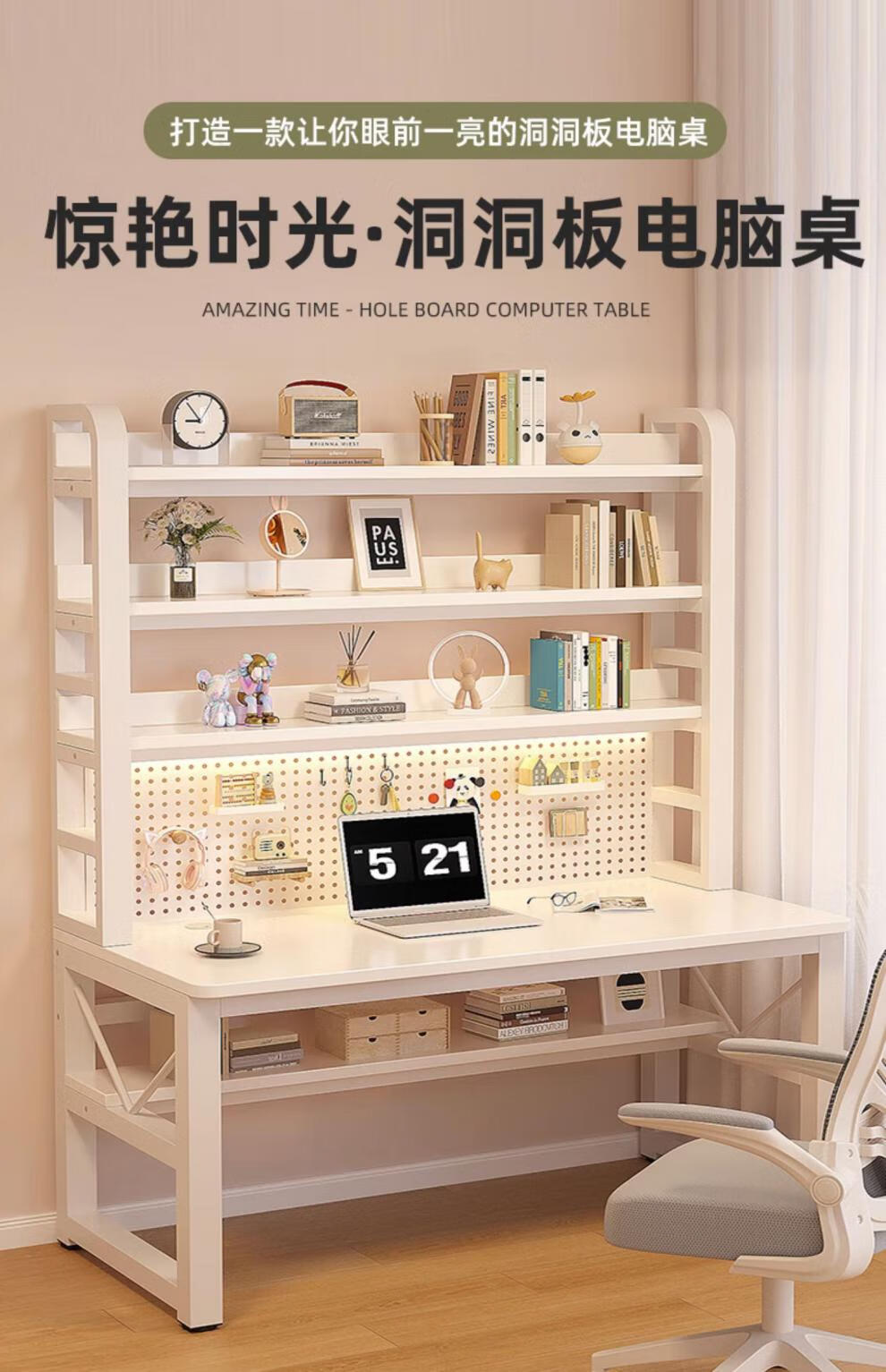 Computer desk desktop bedroom home table simple with perforated board student desk bookshelf integrated table Xiaoyao style computer chair + computer table (contact customer for color 120x60x210cm