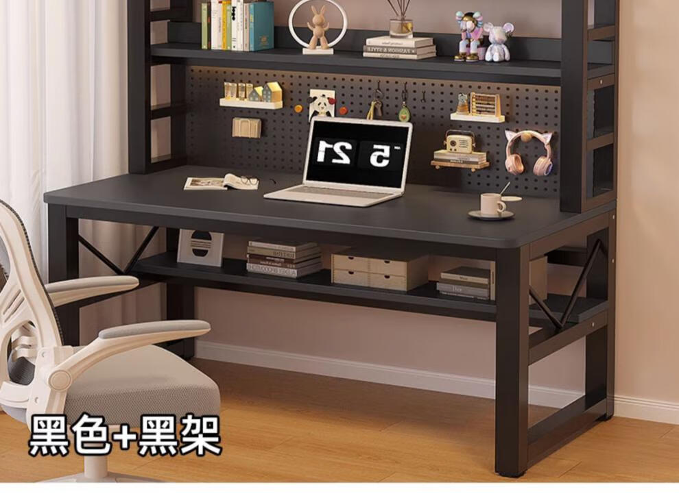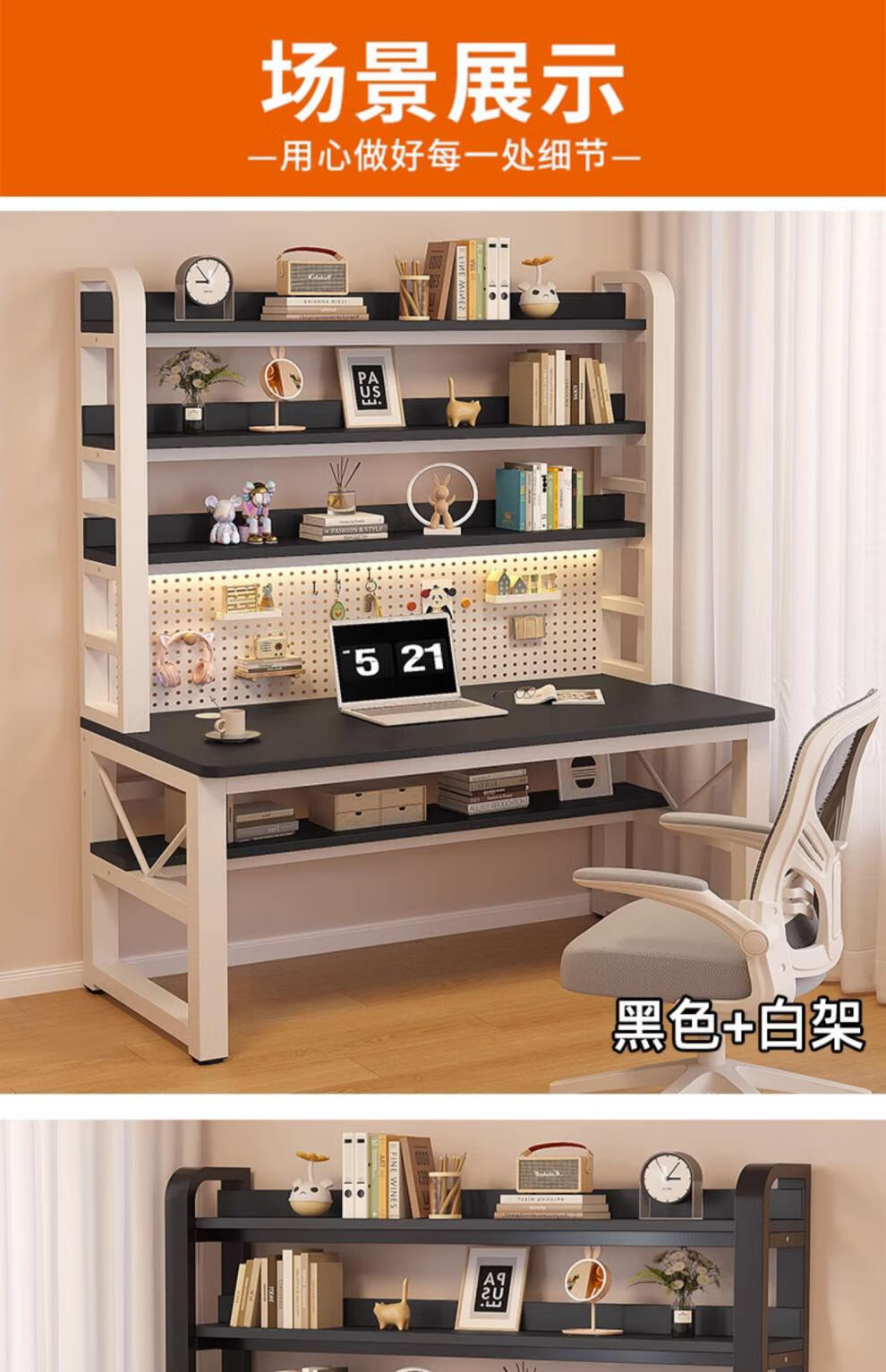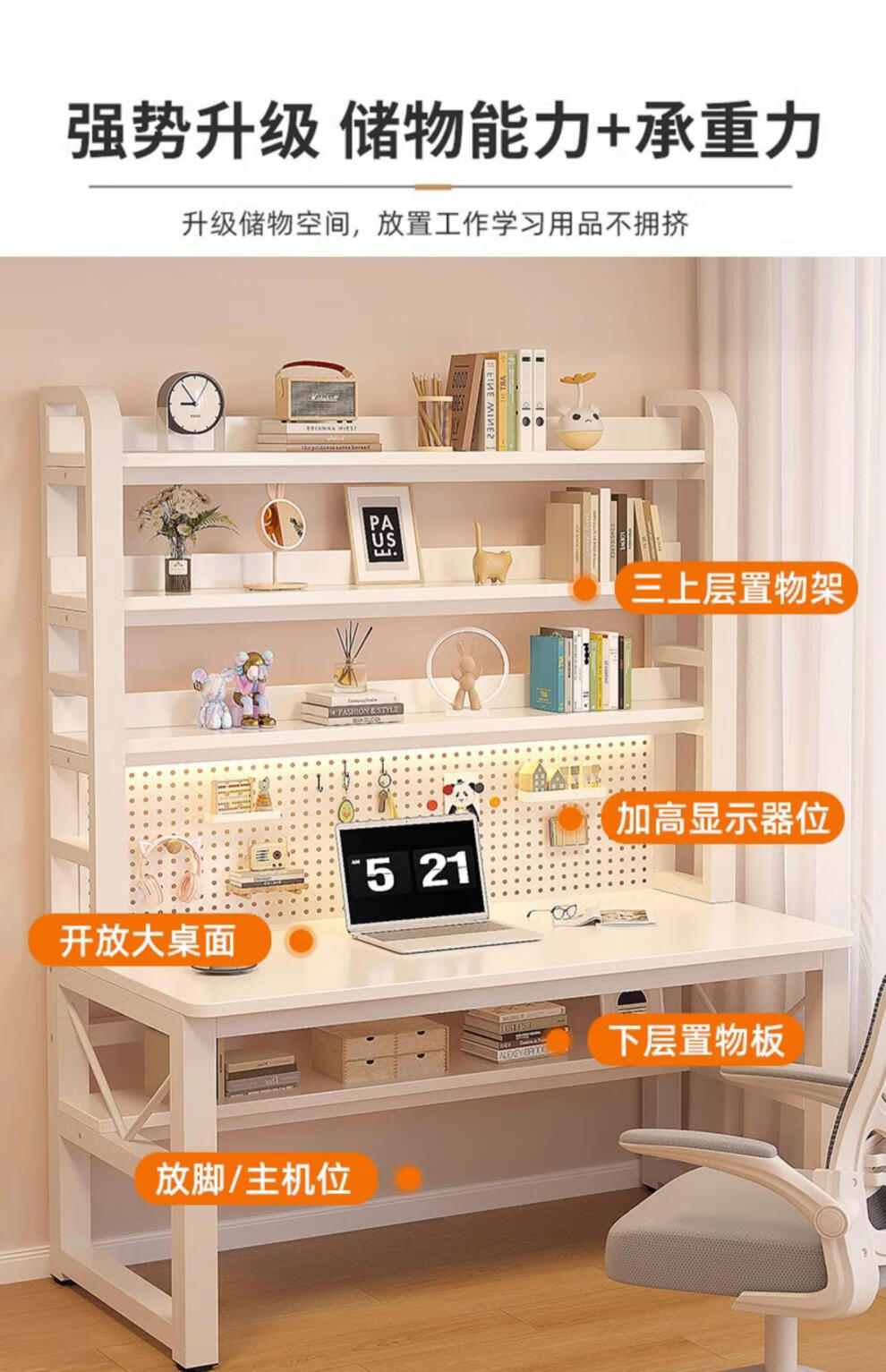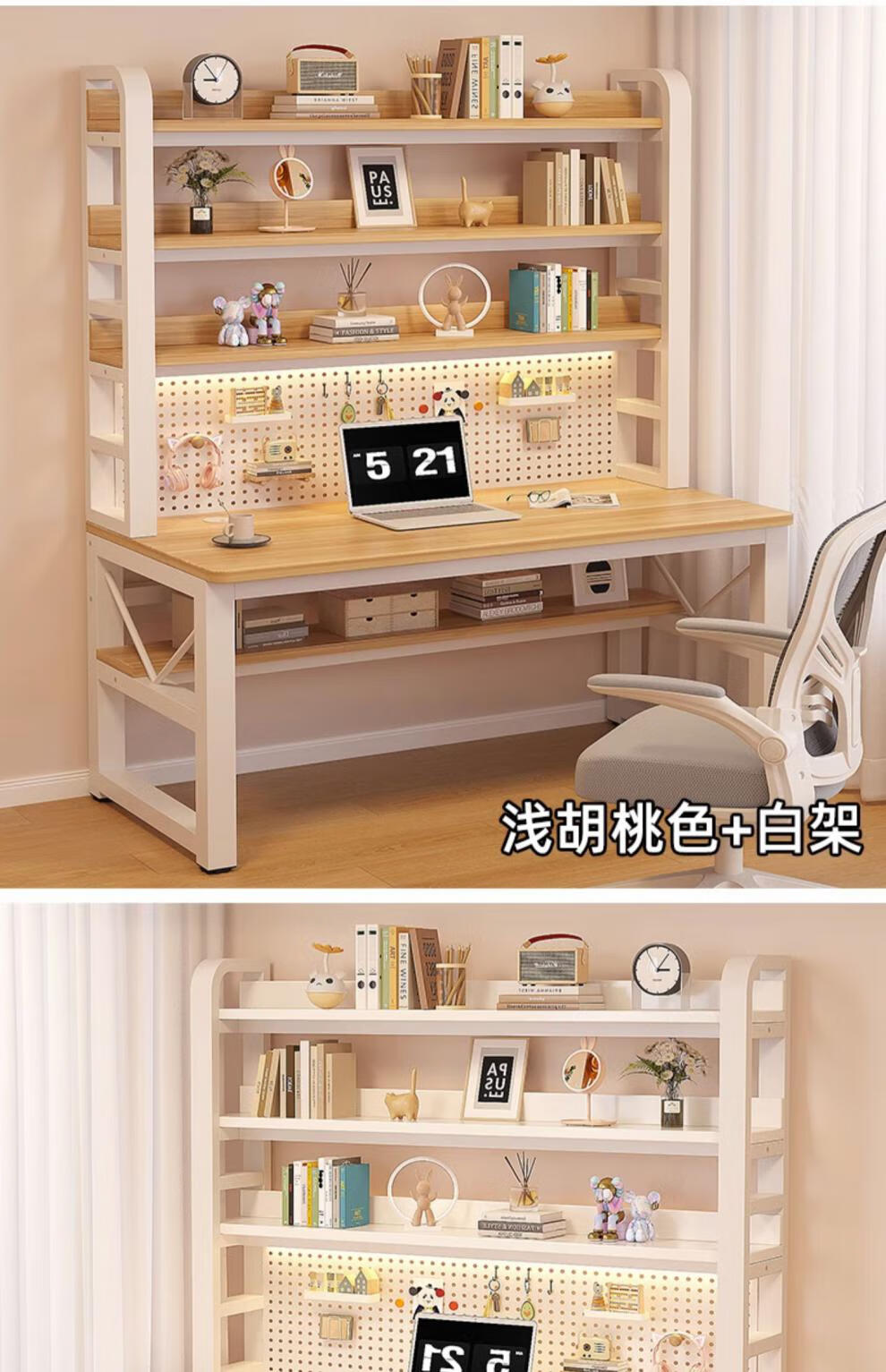 Computer desk desktop bedroom home table simple with perforated board student desk bookshelf integrated table Xiaoyao style computer chair + computer table (contact customer for color 120x60x210cm