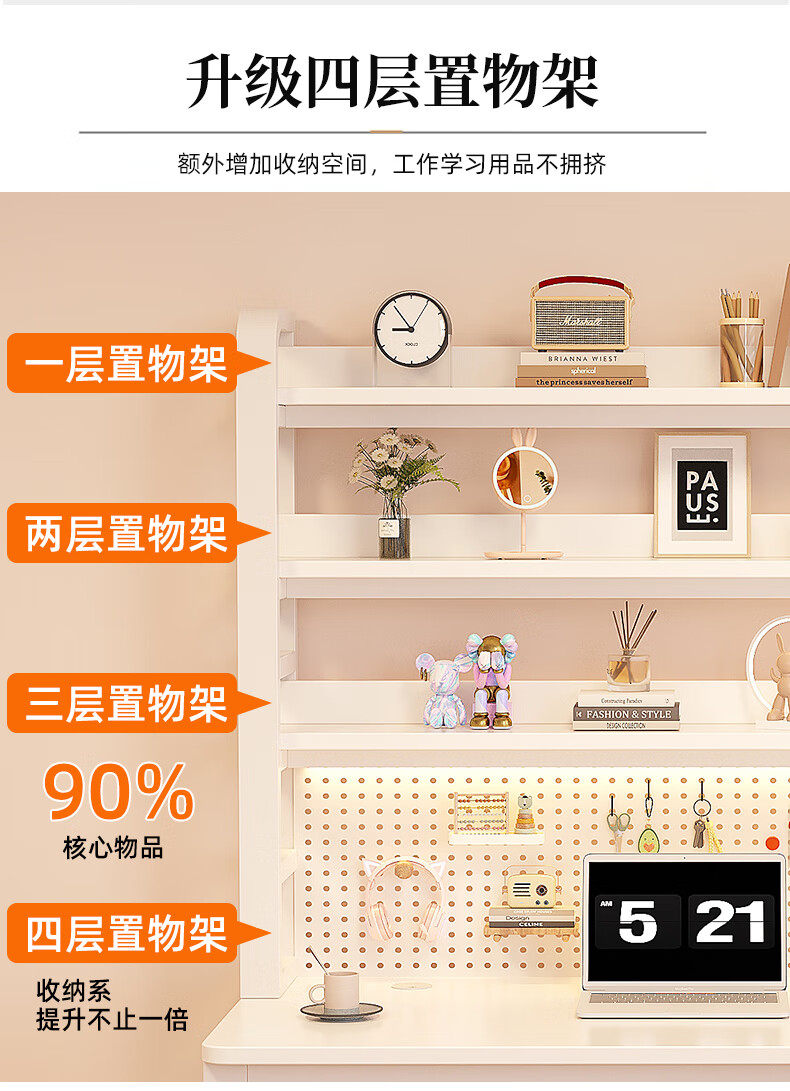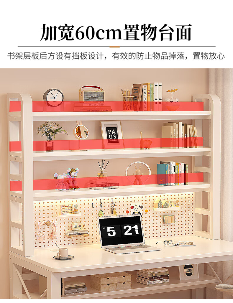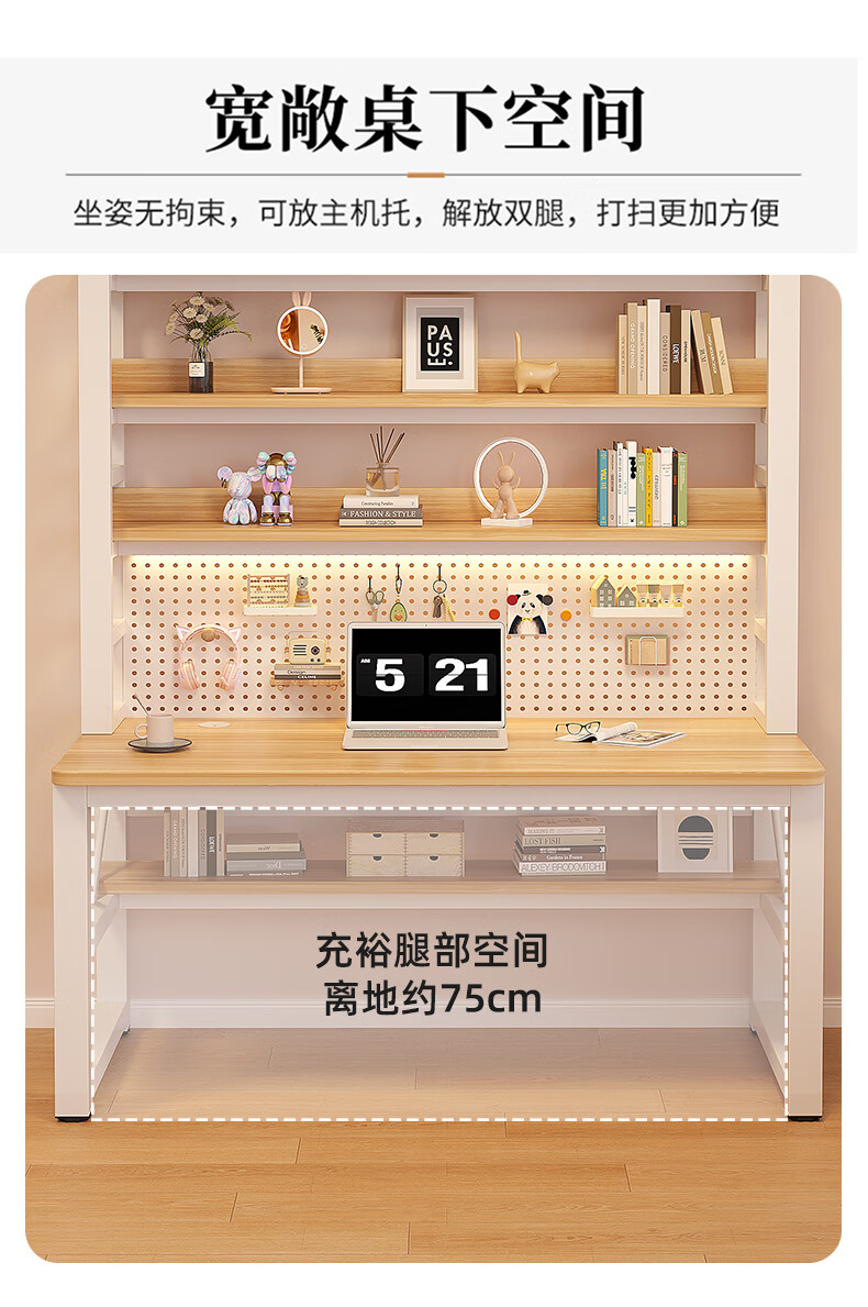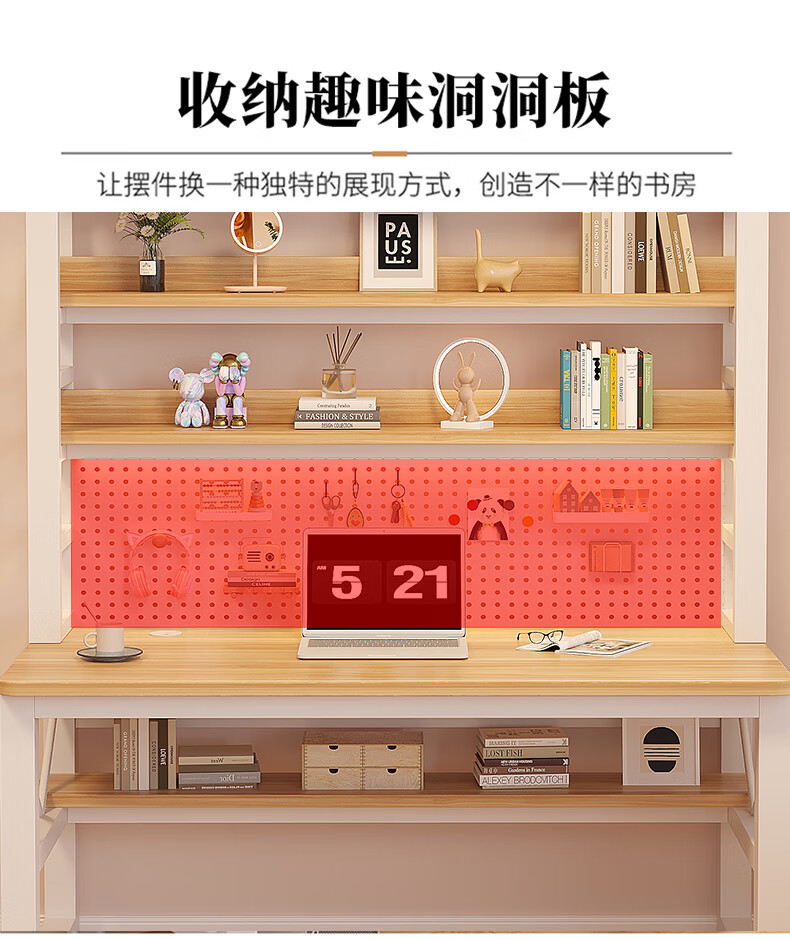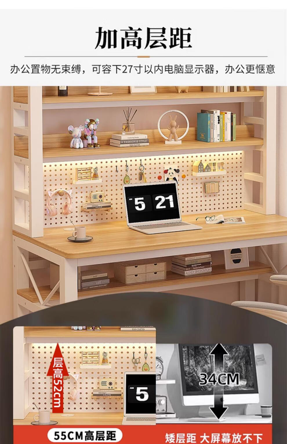 Computer desk desktop bedroom home table simple with perforated board student desk bookshelf integrated table Xiaoyao style computer chair + computer table (contact customer for color 120x60x210cm