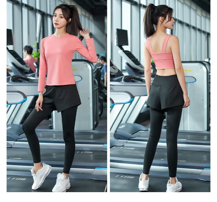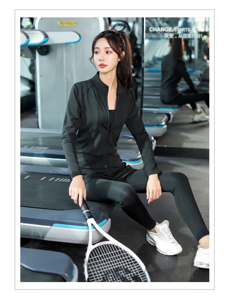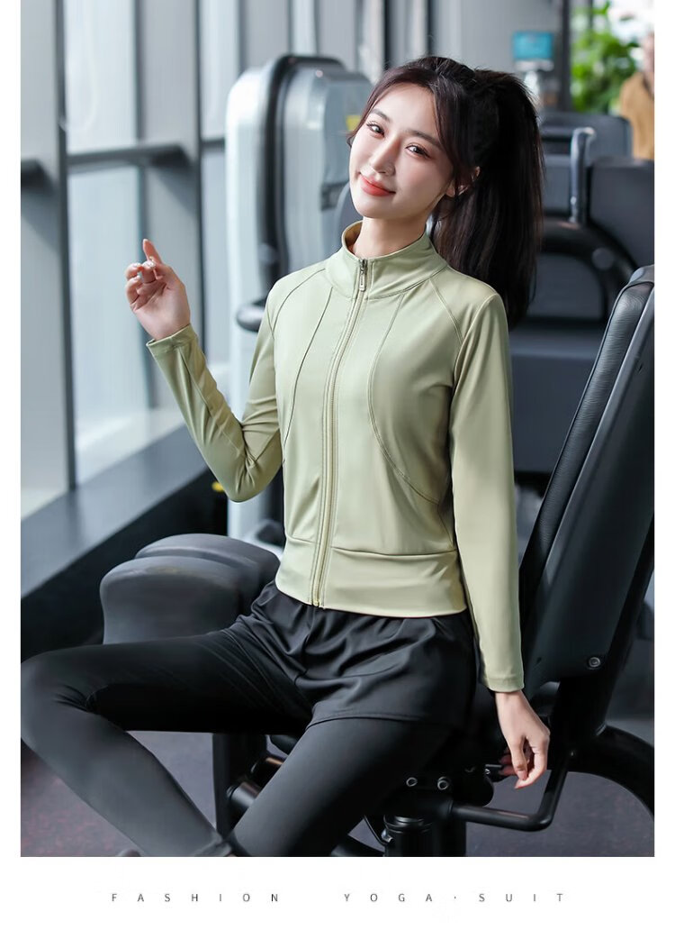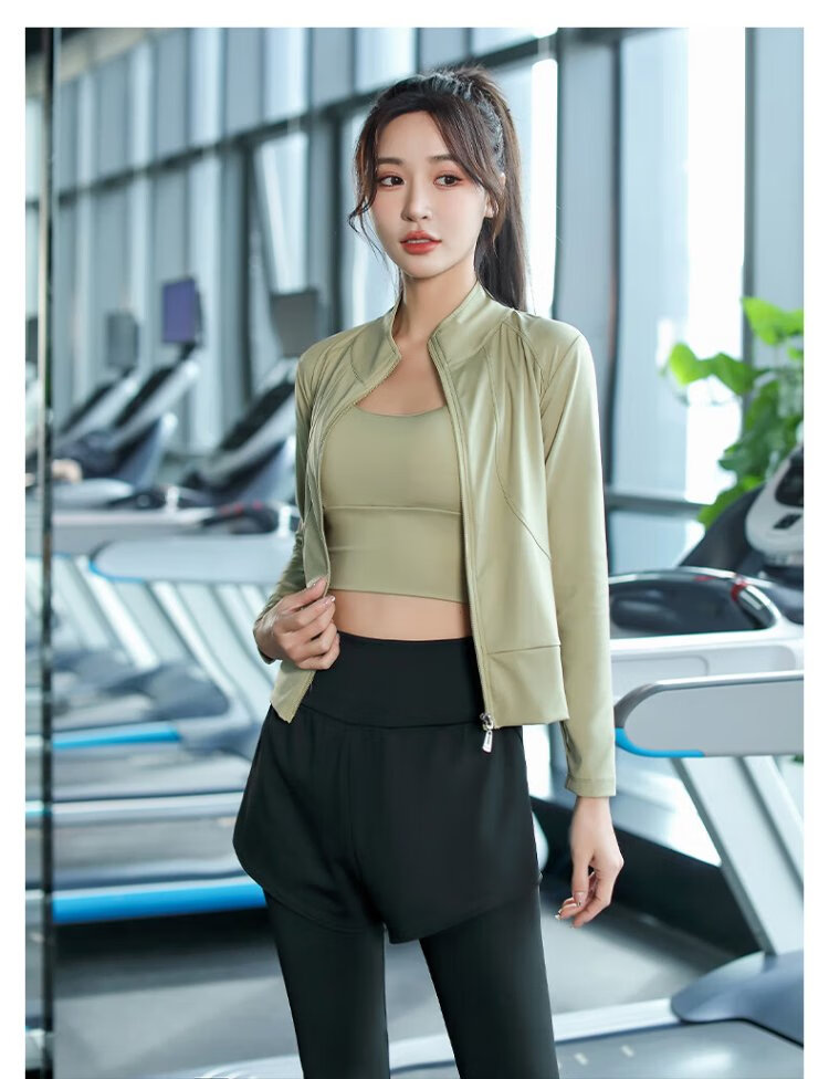 Fluniyou yoga wear women's running sports suit women's five-piece quick-drying breathable shock-proof fitness wear Pilates training clothes grass green five-piece set L recommended weight 100-112 Jin Jin equals 0.5 kg
