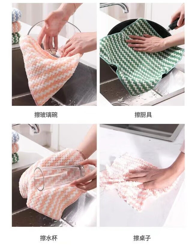 Thousand Lingniao thickened and larger rags, absorbent dishcloths, kitchen special non-linting towels for wiping tables, lazy scouring pads, 5 packs, mixed colors, 30*40cm, large size