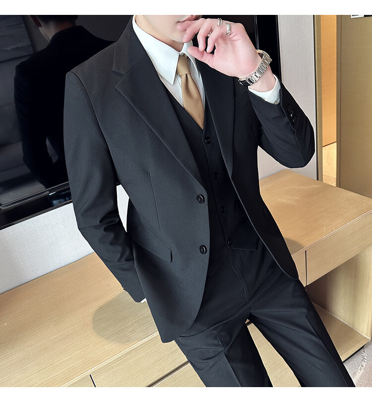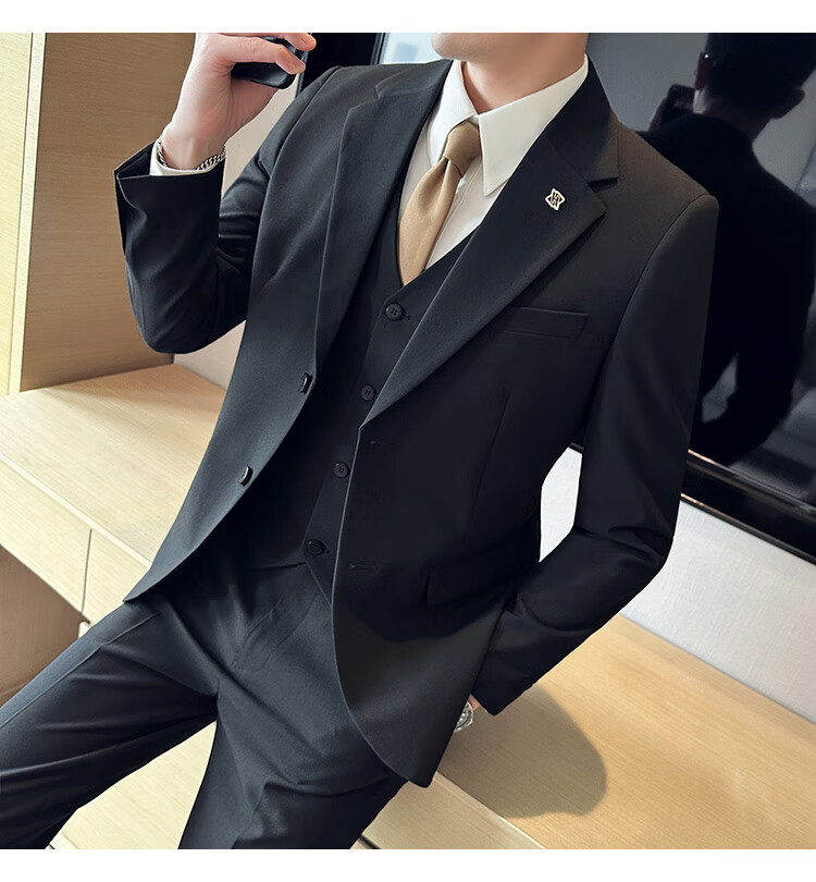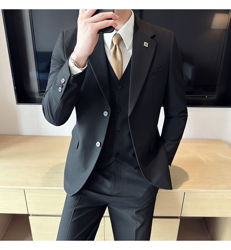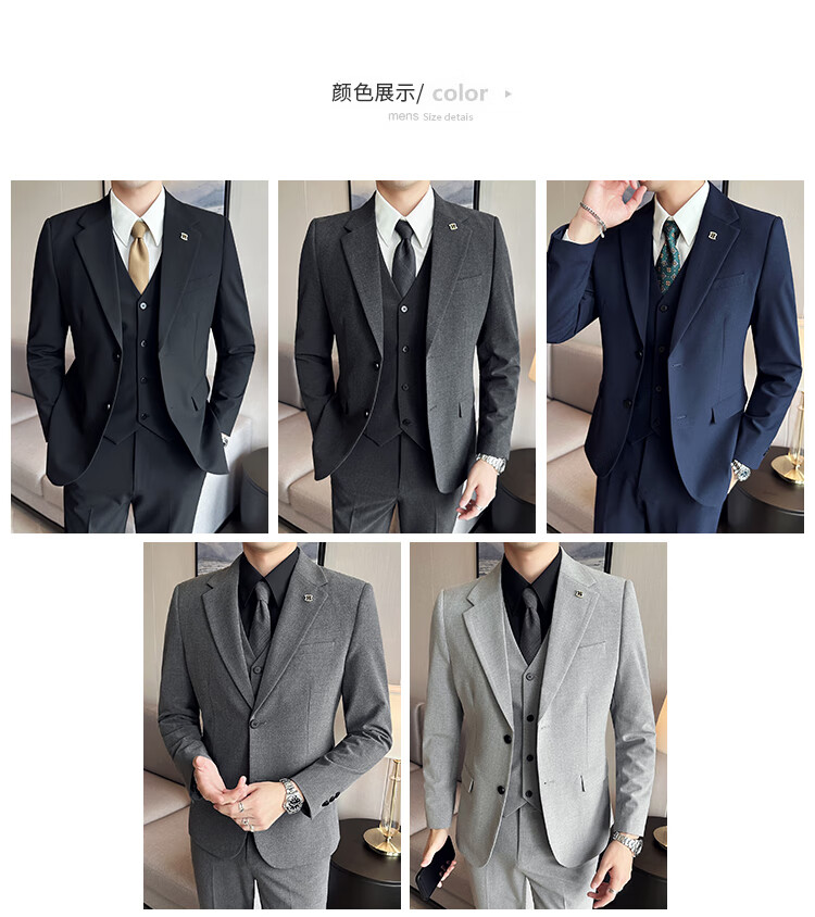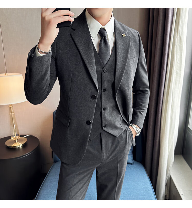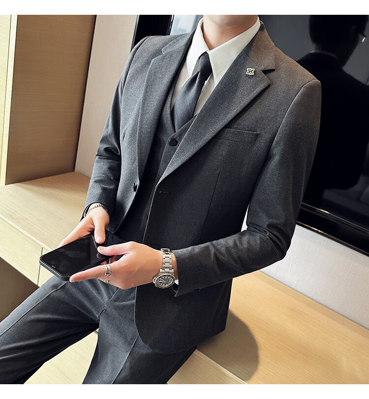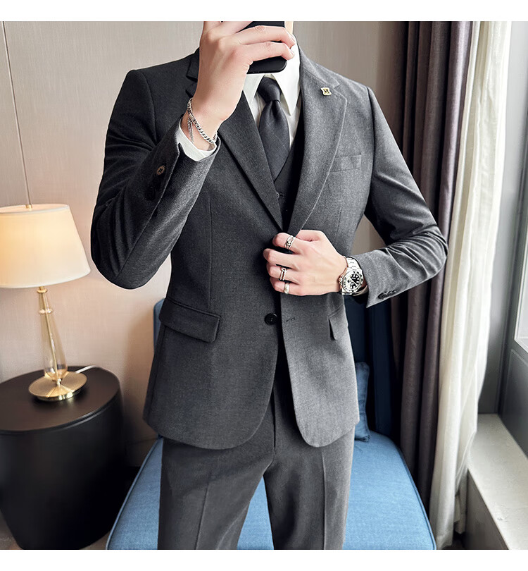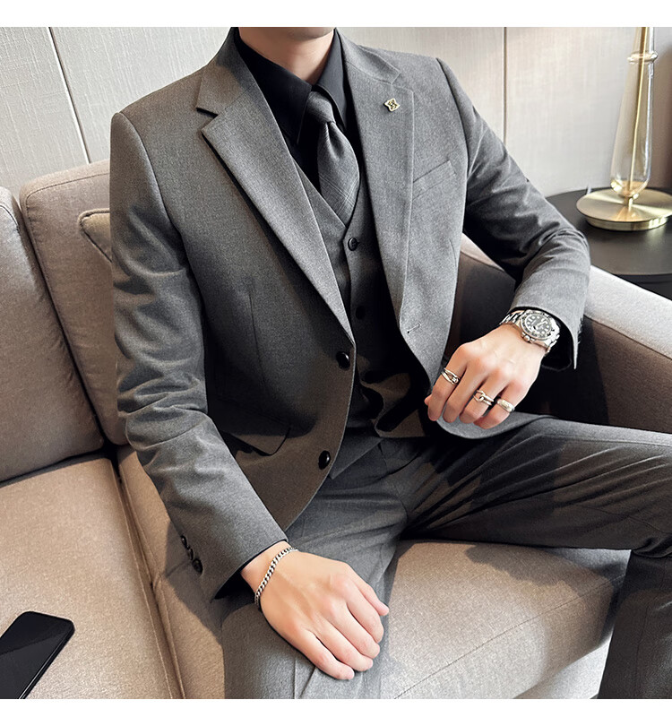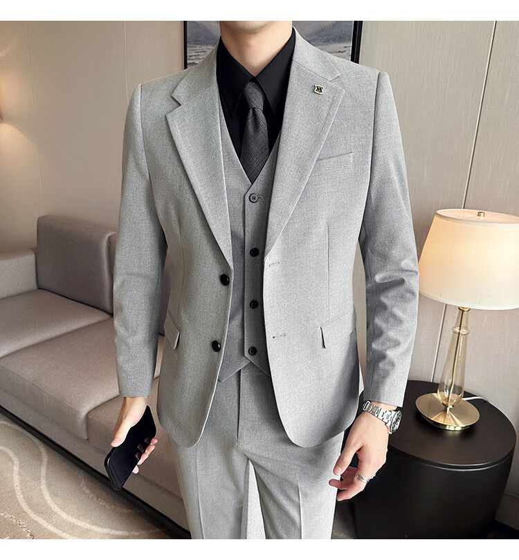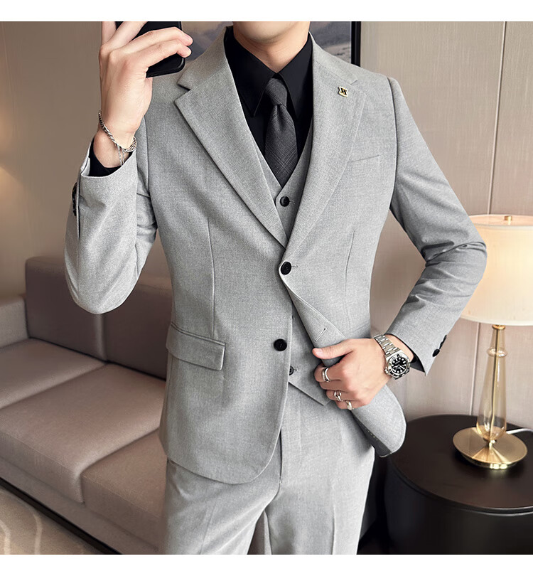 Pierre Cardin Suit Suit Men's Business Professional Formal Wear Groom Wedding Dress Men's Casual Slim Knitted Suit Jacket Fashion Medium Gray (Suit + Pants) 6XL