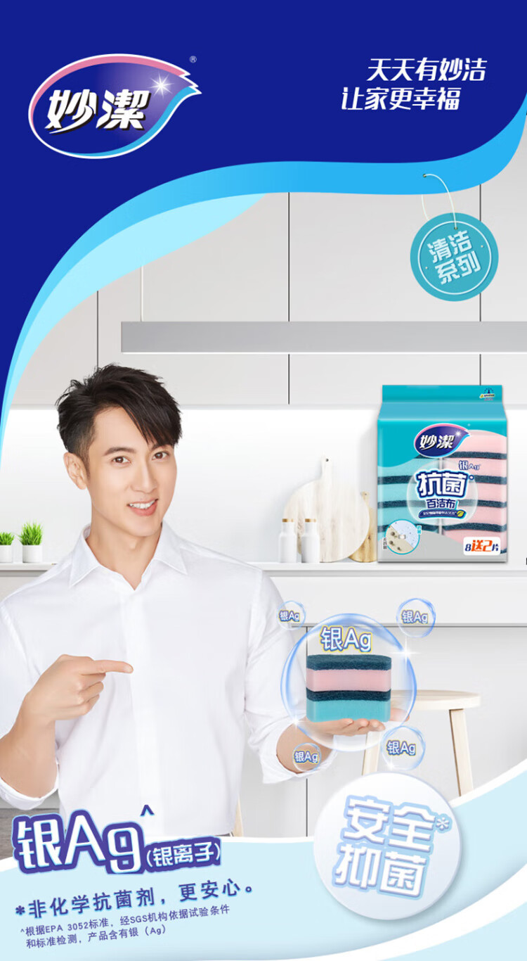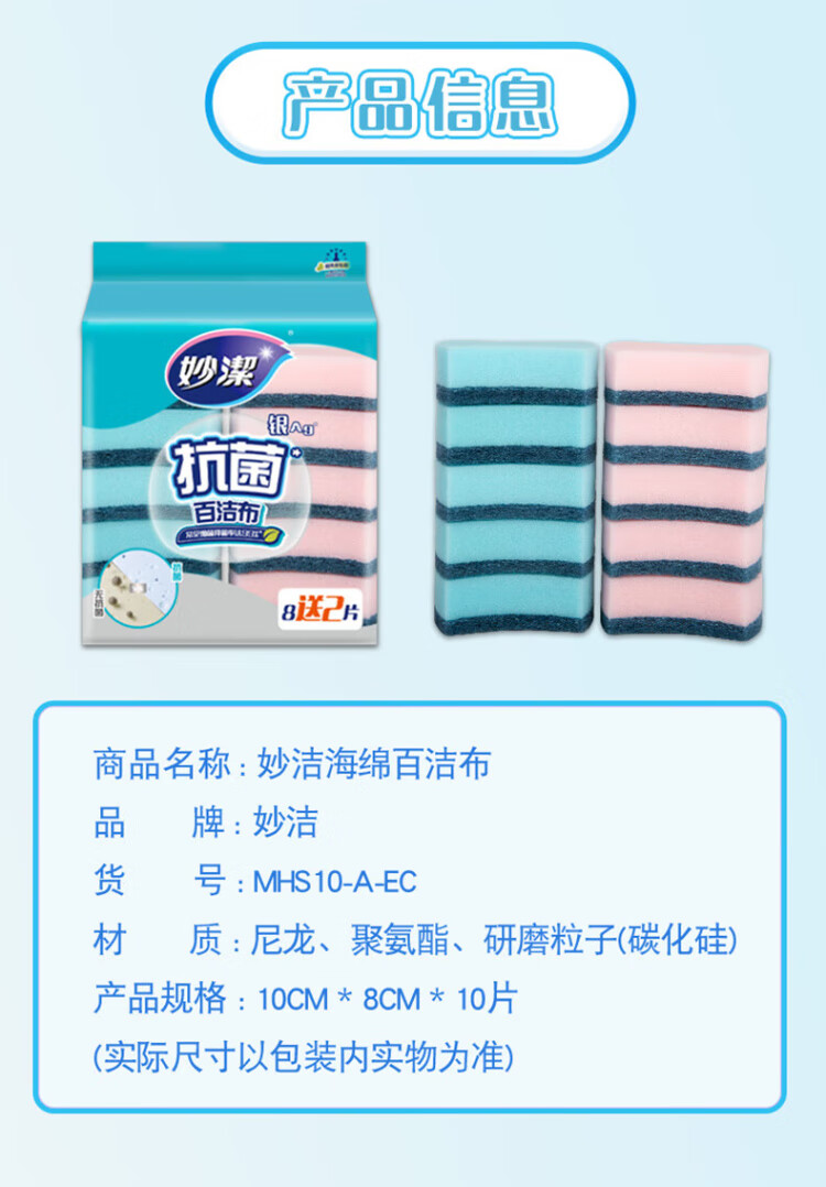 Miaojie sponge scouring pad, dishwashing cloth, easy-absorbent rag, kitchen cleaning and degreasing cleaning cloth, 2 packs of 20 pieces in total