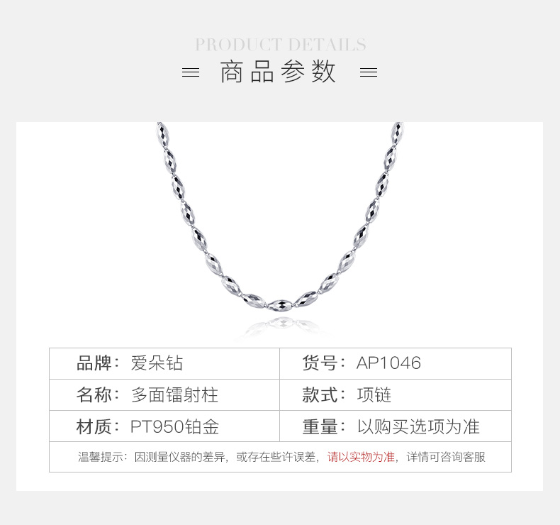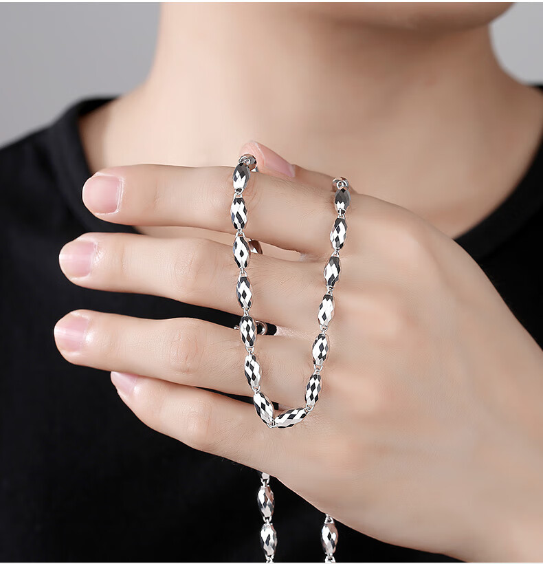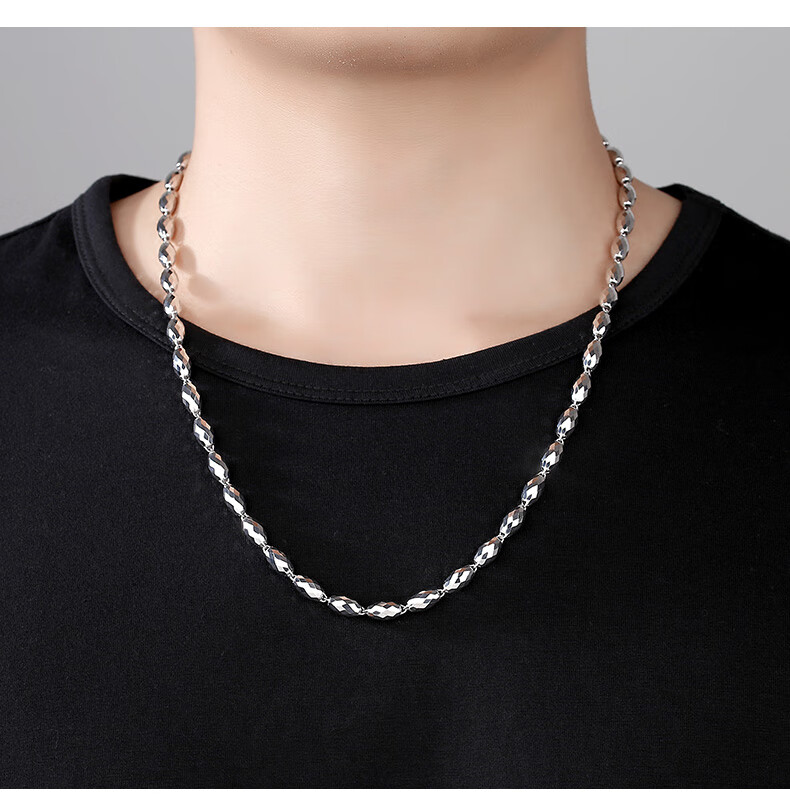 Aido diamond platinum necklace men's pt950 platinum olive bead chain men's style elegant chain weight 11.78g length 52cm thick about 3.0mm