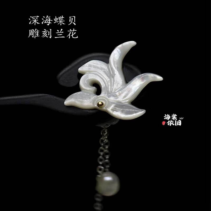 YIZUN. CHOMEL original clear water clear lotus new Chinese style ebony hairpin updo high-end cheongsam 520 gift for girlfriend tassel style night ebony hairpin