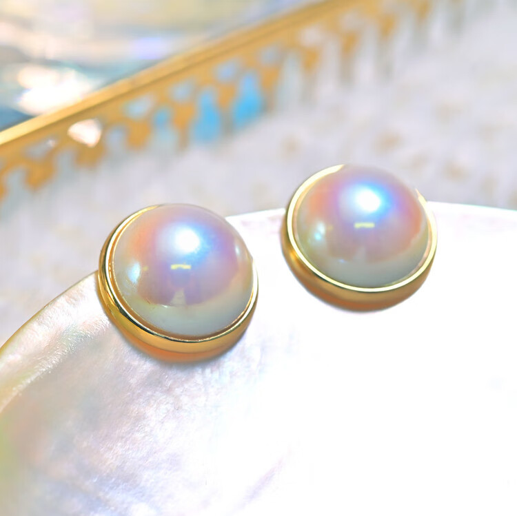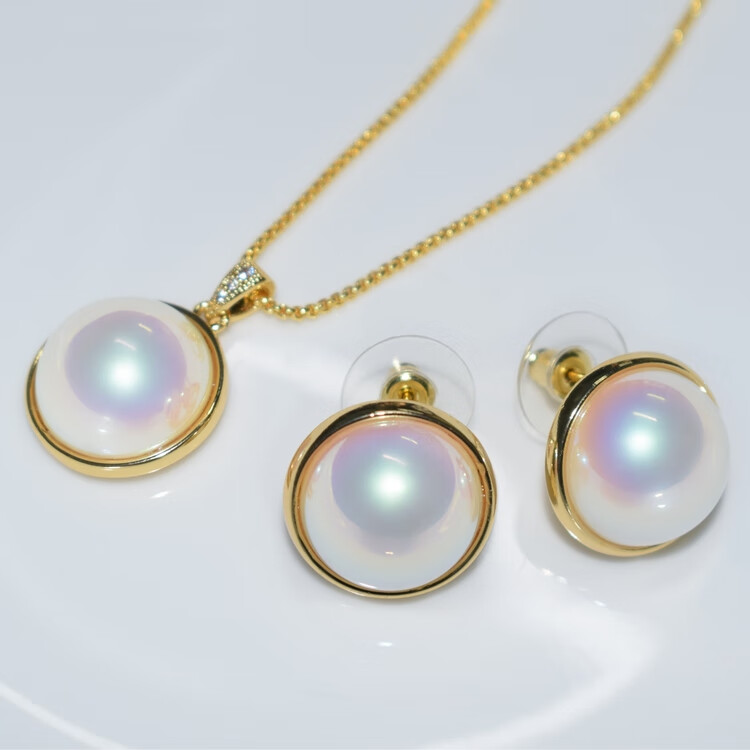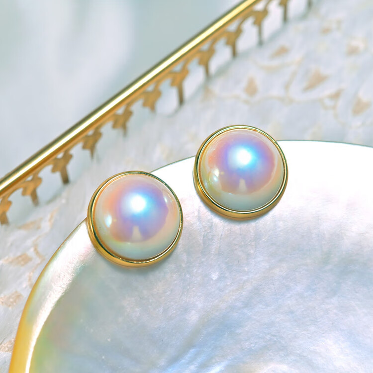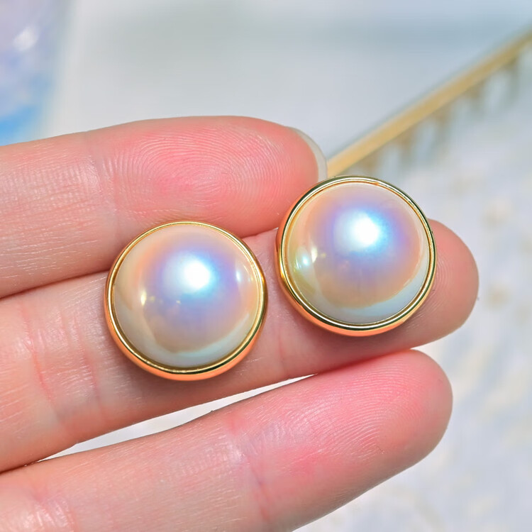 Sakurayu Japanese Aurora Mabe Pearl Design Earrings 17-18mm Marine Mother-of-Pearl Starry Sky Blue Pendant Set Aurora Mabei Earrings 17-18mm