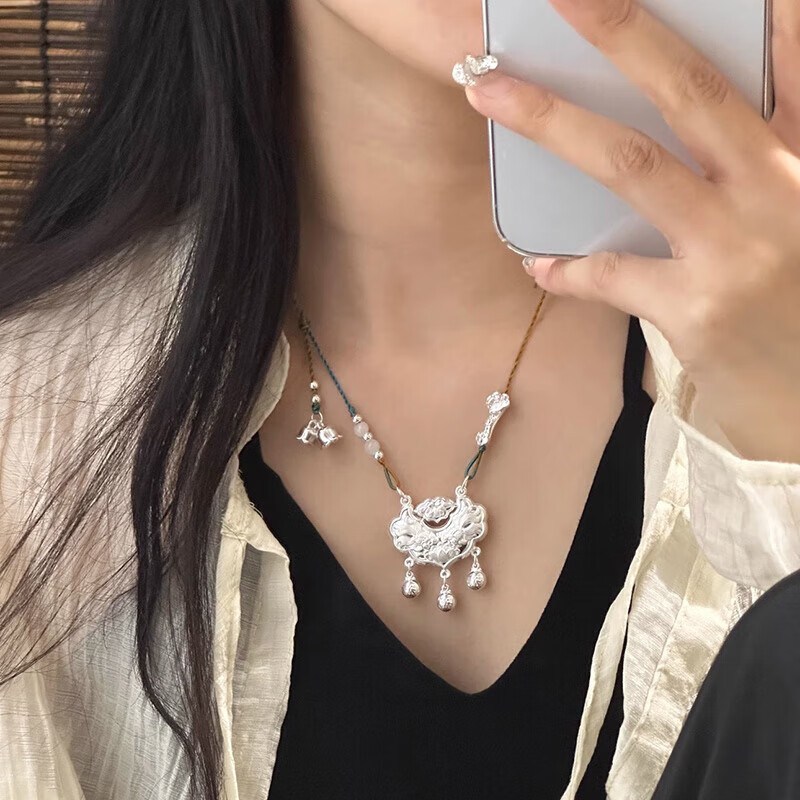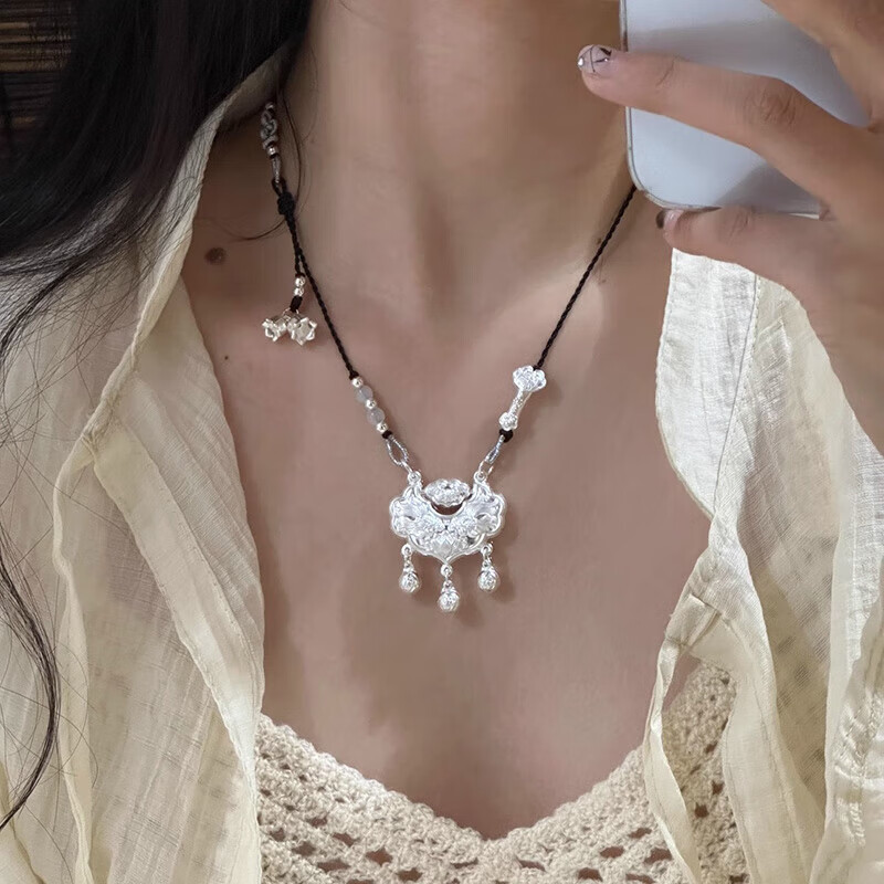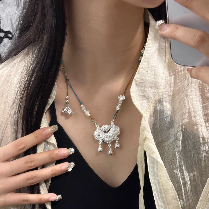 Chaoyu pure silver 999 Pisces koi lock necklace women's safety lock icing on the cake longevity lock necklace pendant Chinese Valentine's Day gift 999 pure silver koi necklace black rope