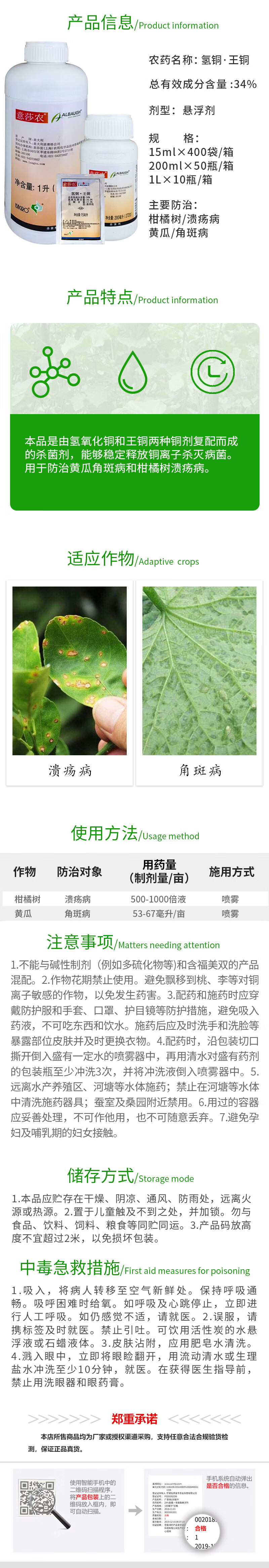 SEG Essanon 34% Copper Hydroxide King Copper Citrus Tree Canker Cucumber Angular Spot Pesticide Fungicide 1L