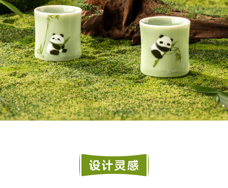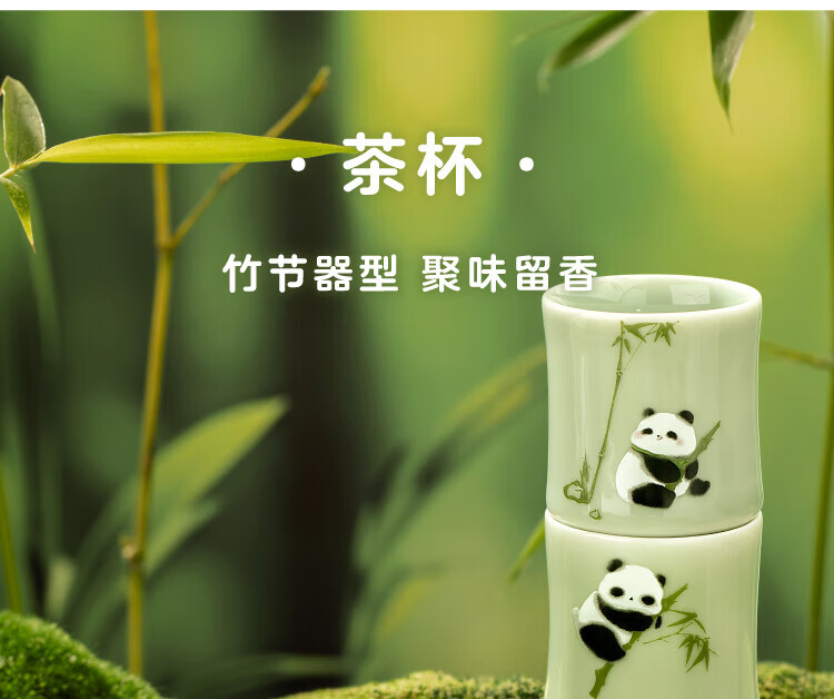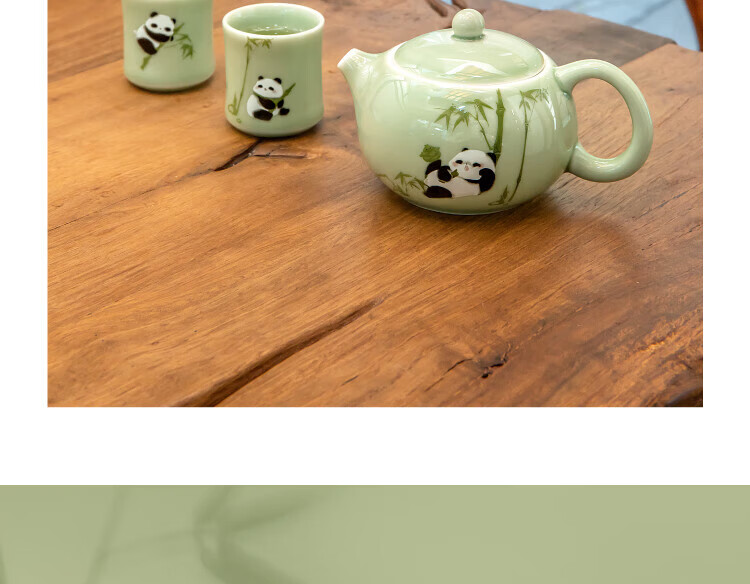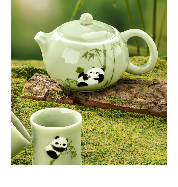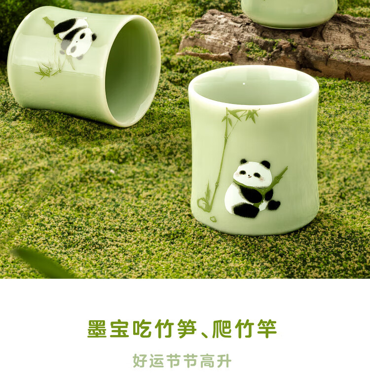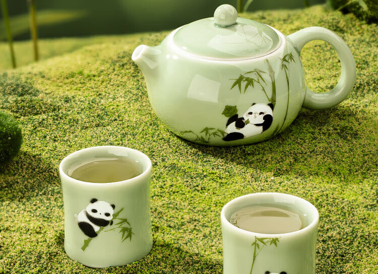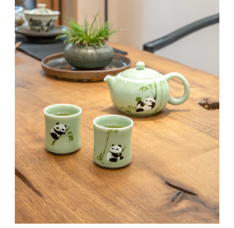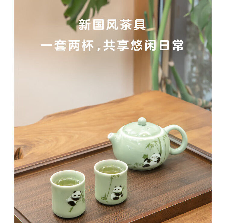 Bengong’s Good Things Panda Calligraphy Peripheral Tea Set Three-piece Tea Set Gift Box Chinese Style Housewarming Birthday Gift Thanksgiving Day (1 Pot 2 Cups) 3 Pieces