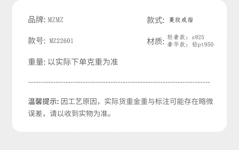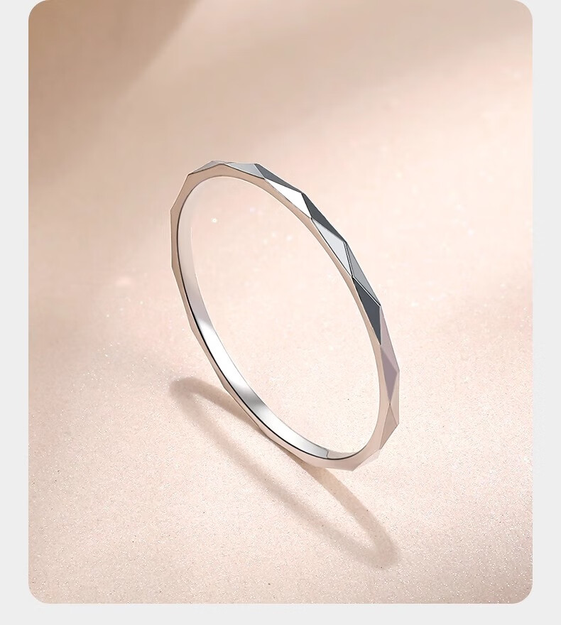MZMZ Platinum Ring Diamond Pattern pt950 Platinum Plain Ring Men's and Women's Ring Birthday Anniversary Gift Light Luxury Style-Diamond Pattern Ring