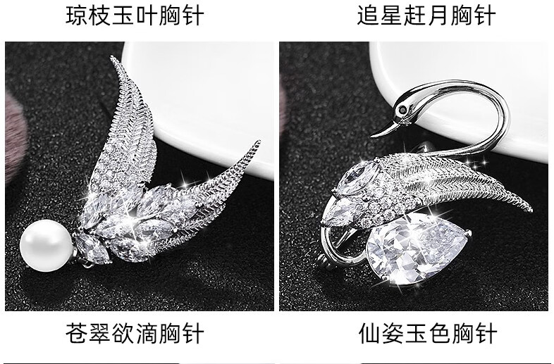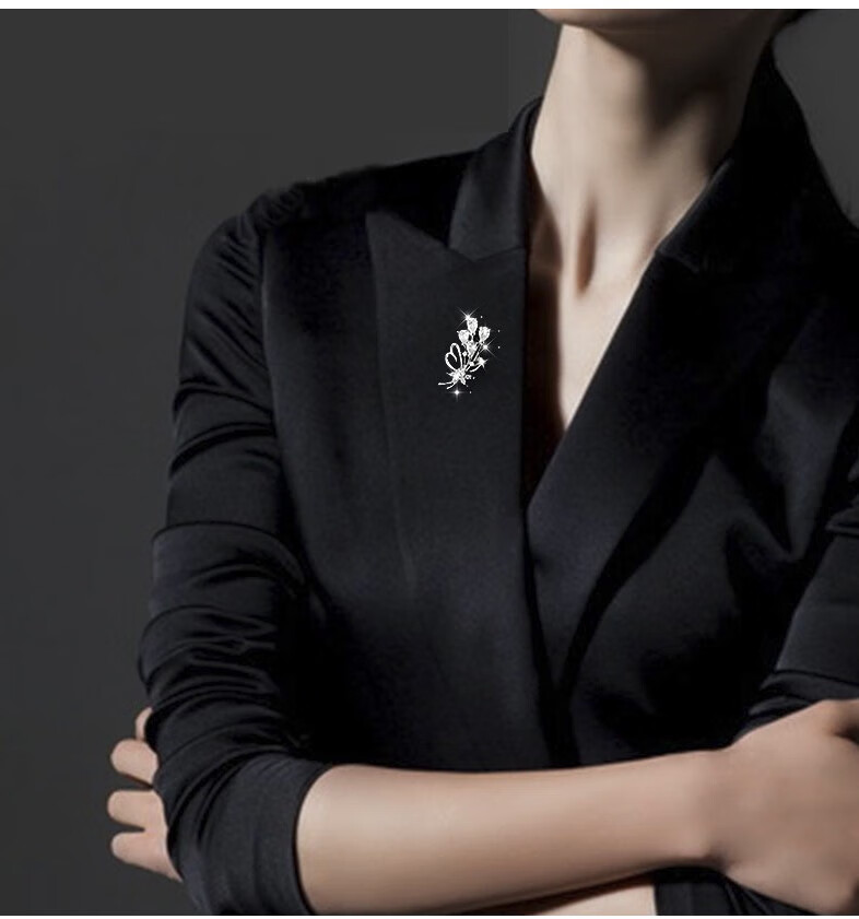 QUAMER's new crystal high-end 2024 brooch for women Japanese and Korean luxury corsage sweater pin Aopai brooch - white diamond