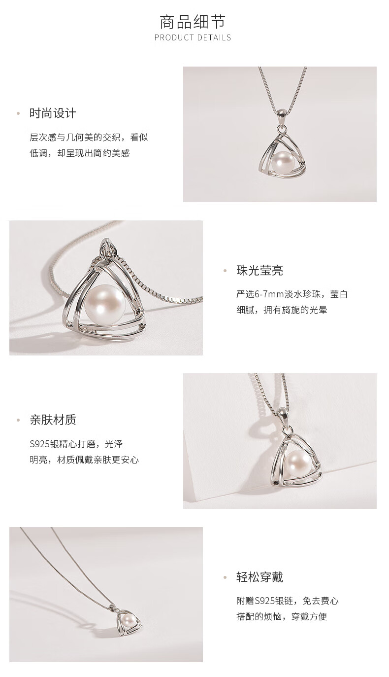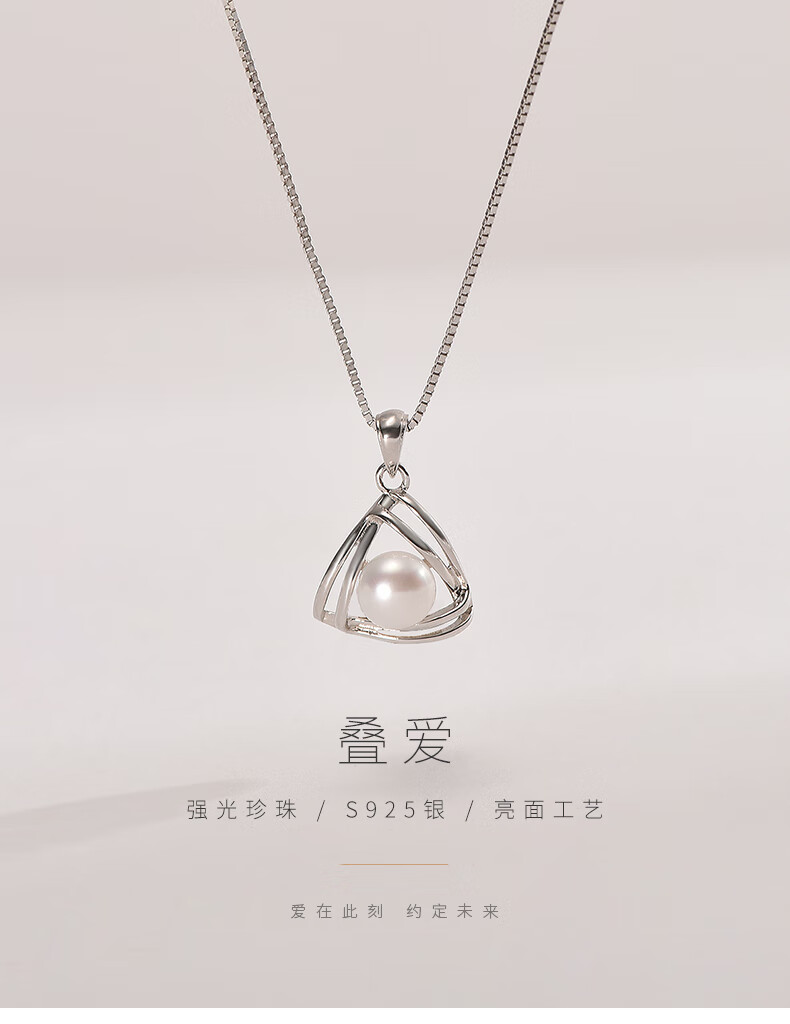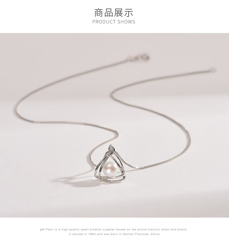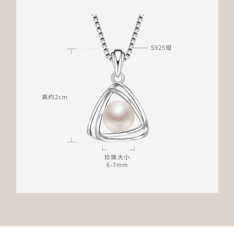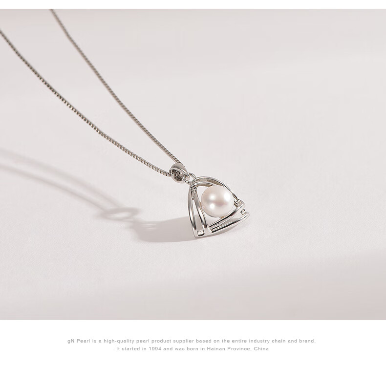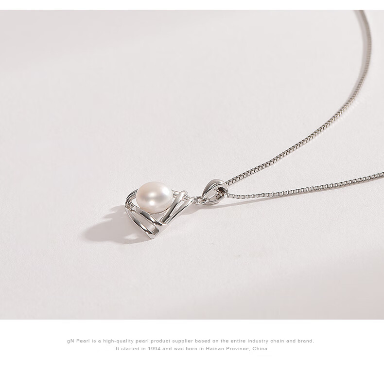 Jingrun Pearl Pendant Chain Love 925 Silver Freshwater Pearl Pendant Highlight Steamed Bun Shape Pendant Birthday Gift 6-7mm (With Free Silver Chain)