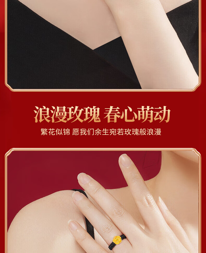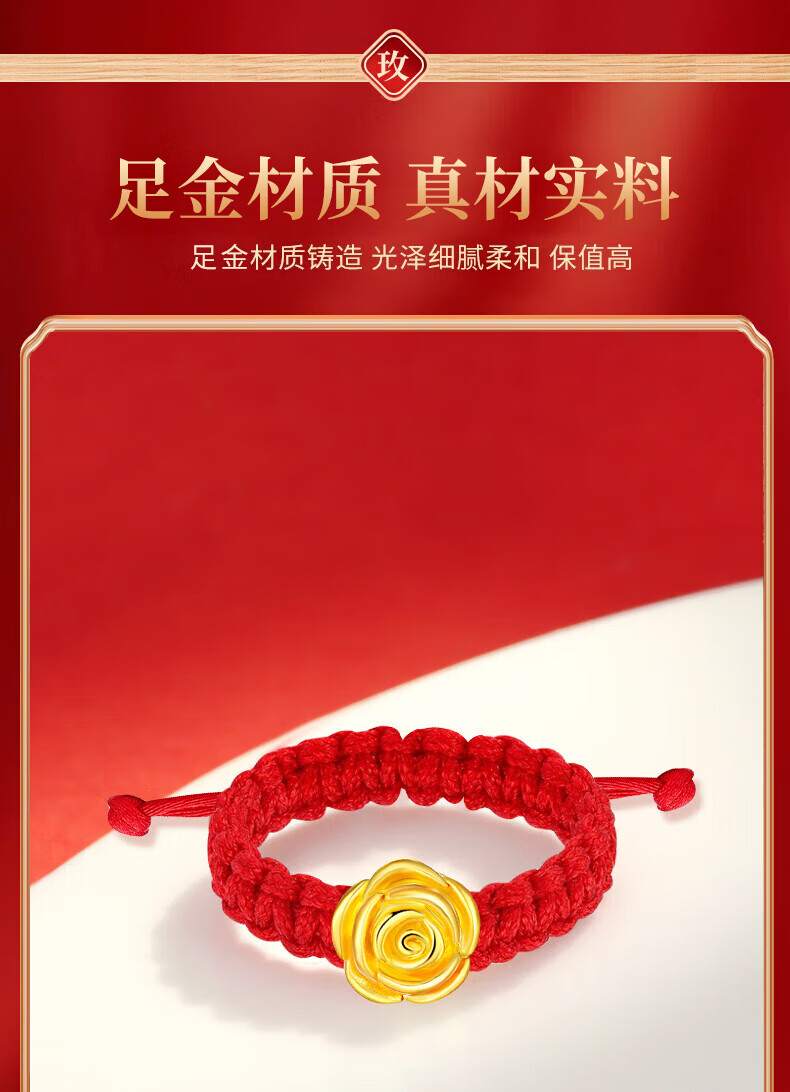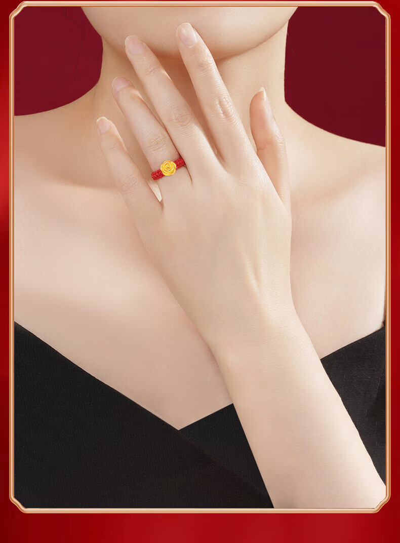 CHINA GOLD Rose Gold Ring Women's Pure Gold Proposal Ring Birthday Gift for Girlfriend and Wife Wedding Anniversary Pure Gold Rose Ring Red String Ring