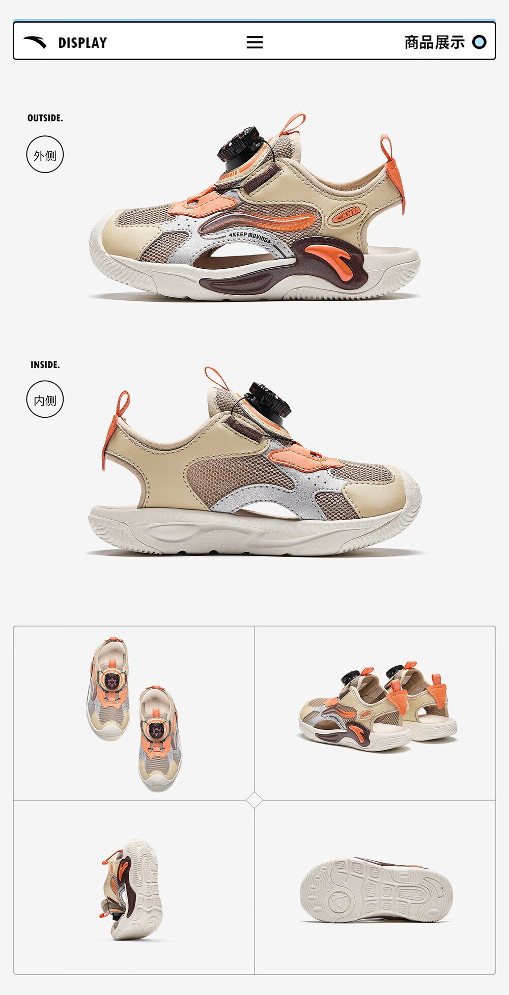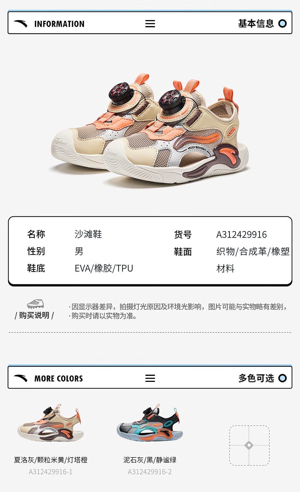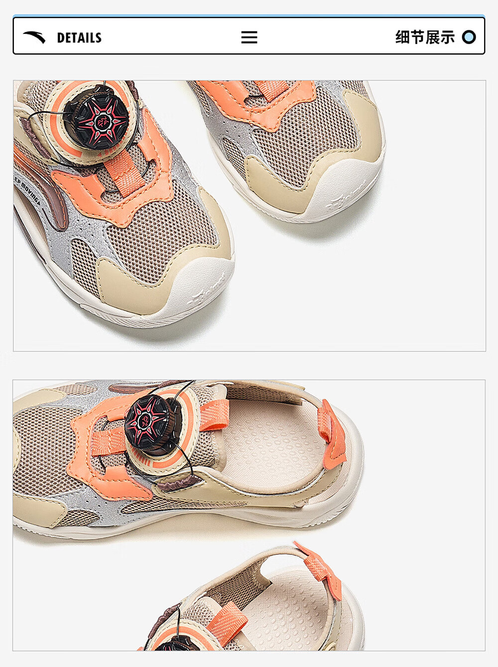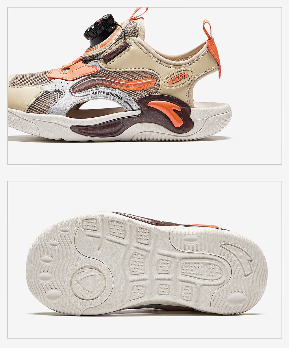 ANTA Children's Sandals Boys' Beach Shoes 2024 Summer New Baotou Breathable Outdoor Physical Education Class Knob Button Soft Sole Shoes Charlotte Gray/Grain Beige/Lighthouse Orange-1 28 Size