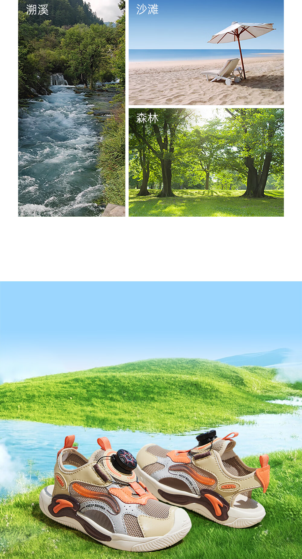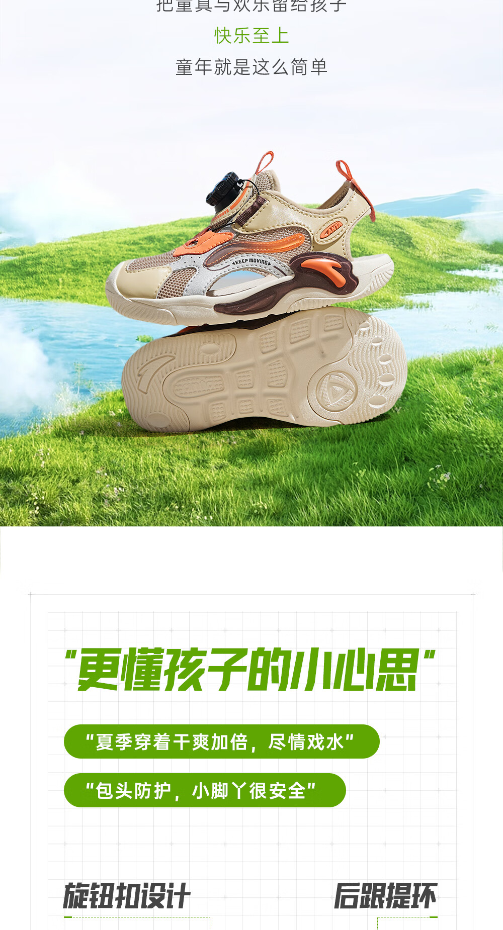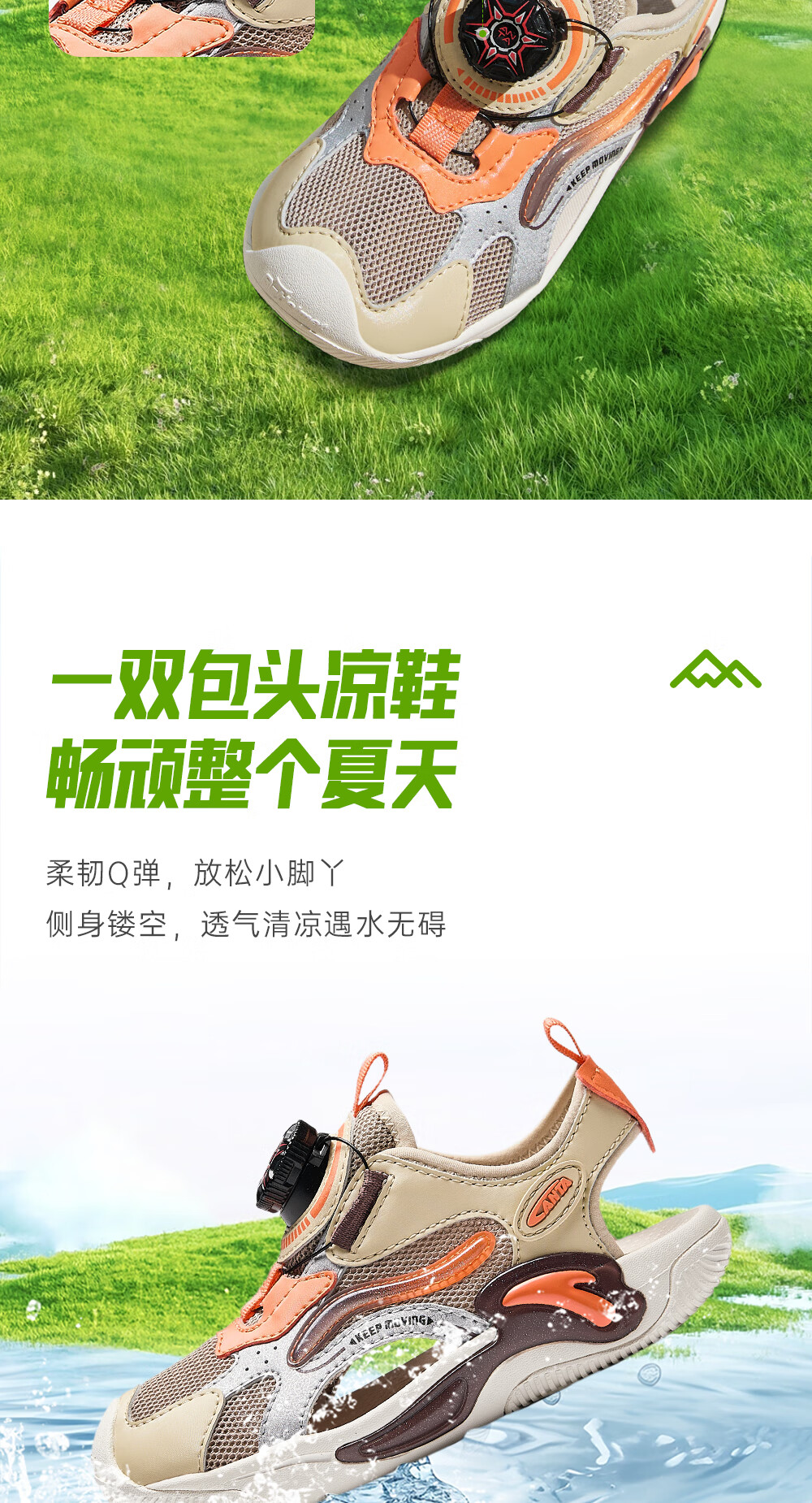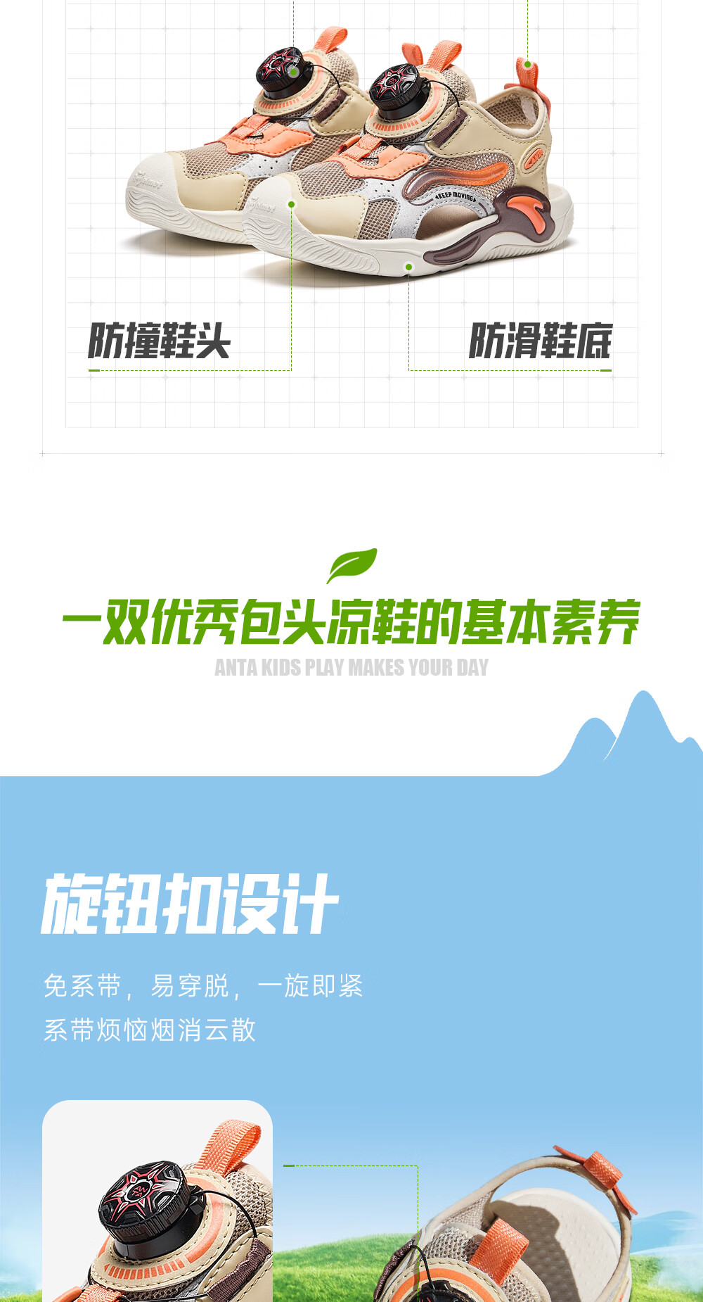 ANTA Children's Sandals Boys' Beach Shoes 2024 Summer New Baotou Breathable Outdoor Physical Education Class Knob Button Soft Sole Shoes Charlotte Gray/Grain Beige/Lighthouse Orange-1 28 Size