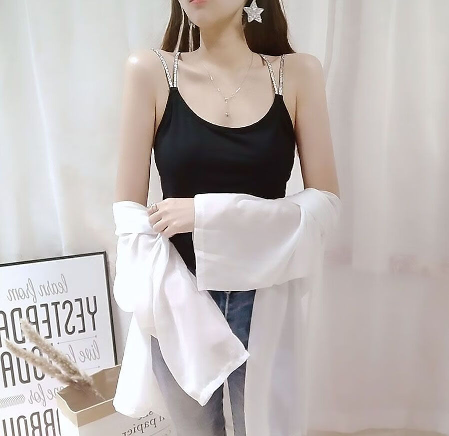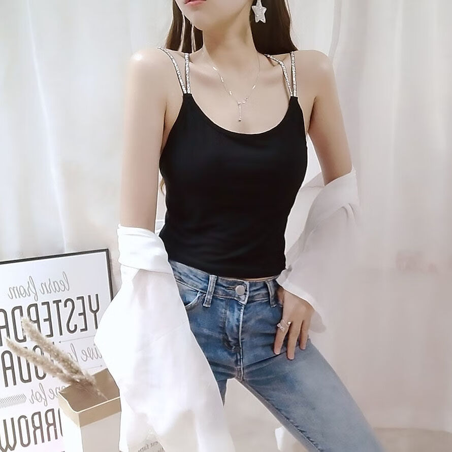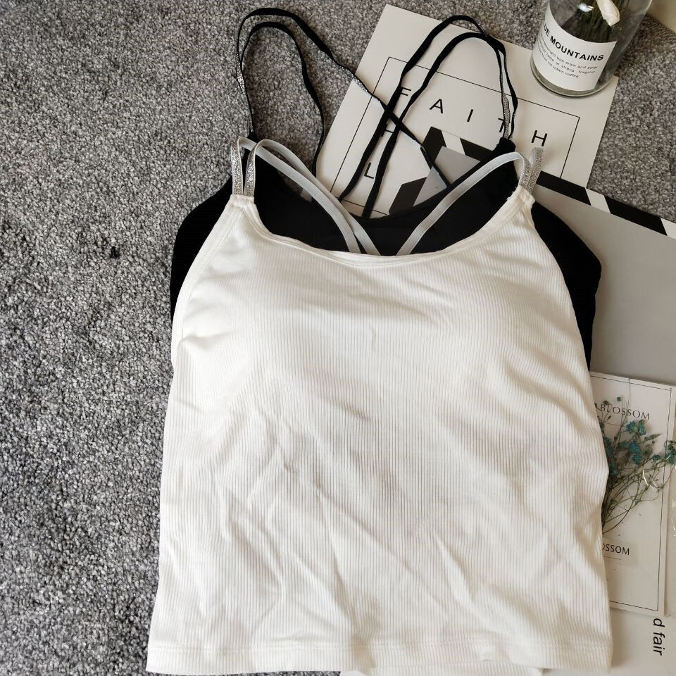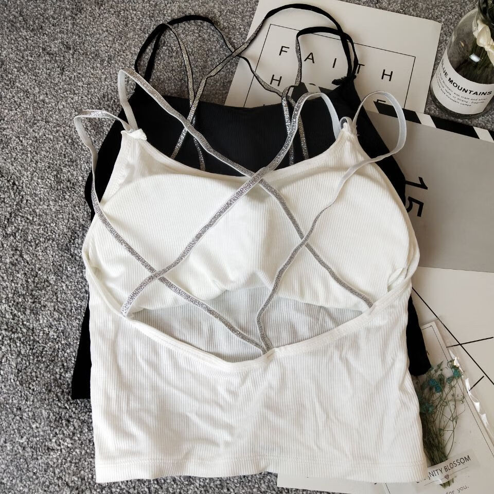 LangSha's new spring and summer women's clothing is fashionable and sexy with a silver cross-over back-wrapped chest strap and padded camisole, brown, one size fits all
