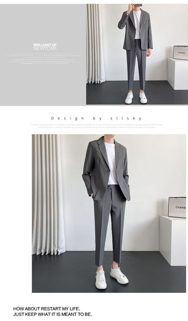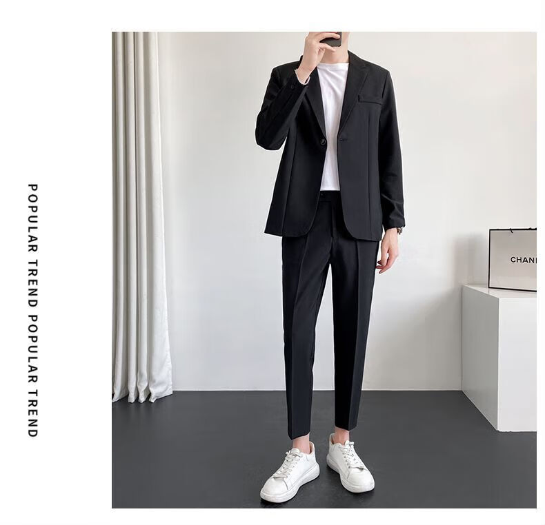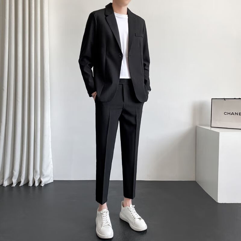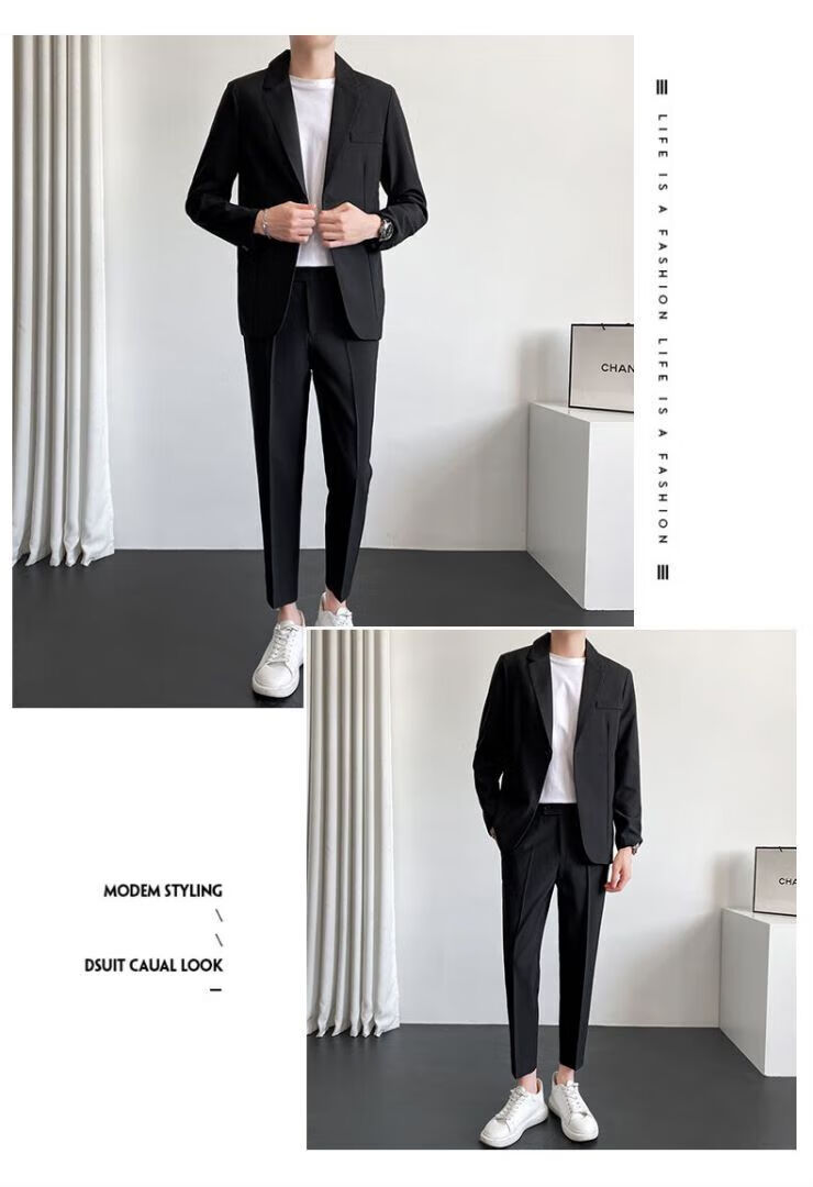 Kaduton New Casual Suit Suit Men's Loose Drape Business Suit Suit Versatile Groomsman Groomsmen Dress Black 19 Suit (Plus Short T) Three-piece Set L 111-130Jin Jin is equal to 0.5 kg