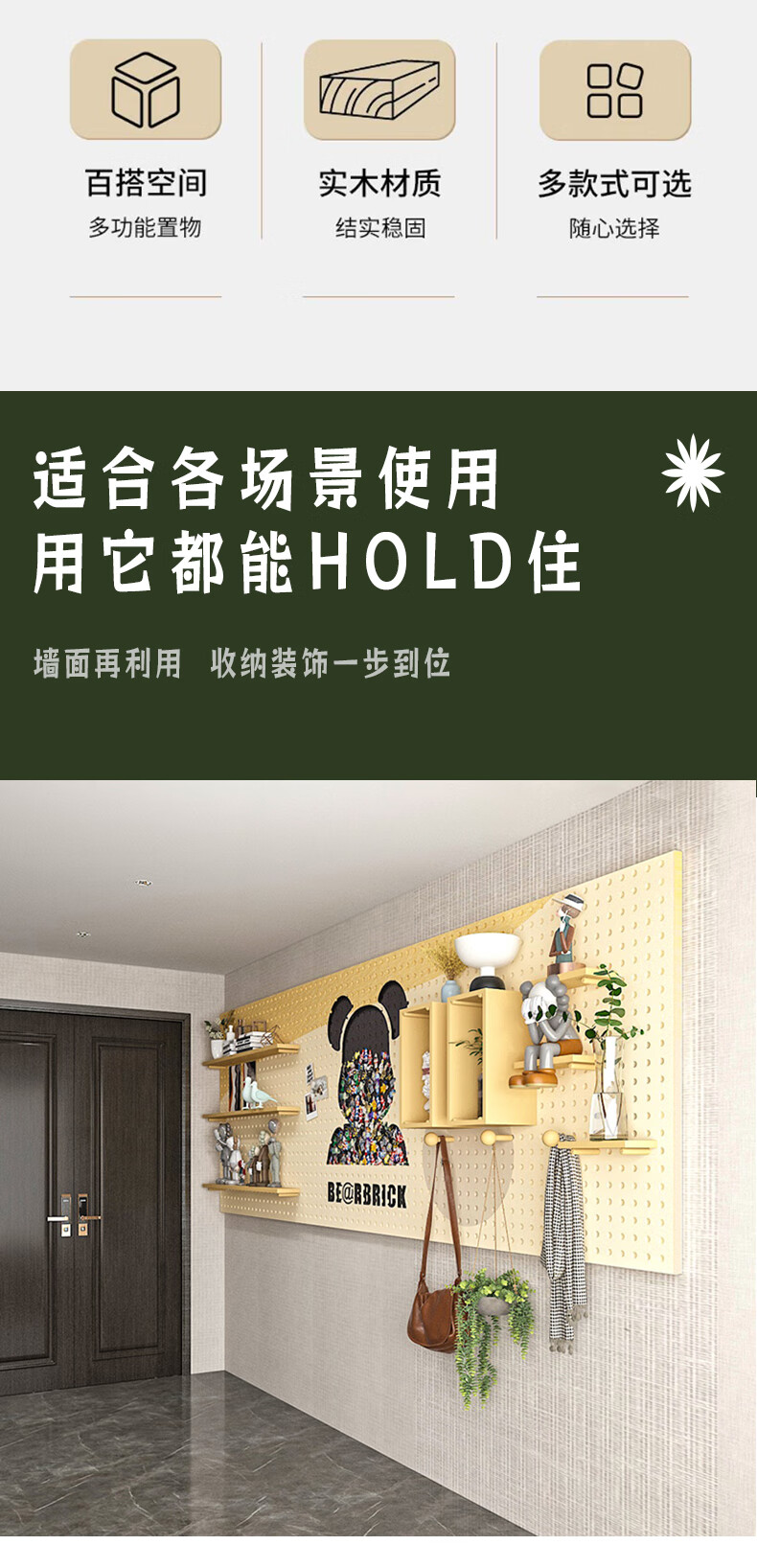 Chuangjingyi selected entrance hole board creative solid wood hole board storage rack home blocking entrance entrance violent bear wall hanging board 100*100 (log color)