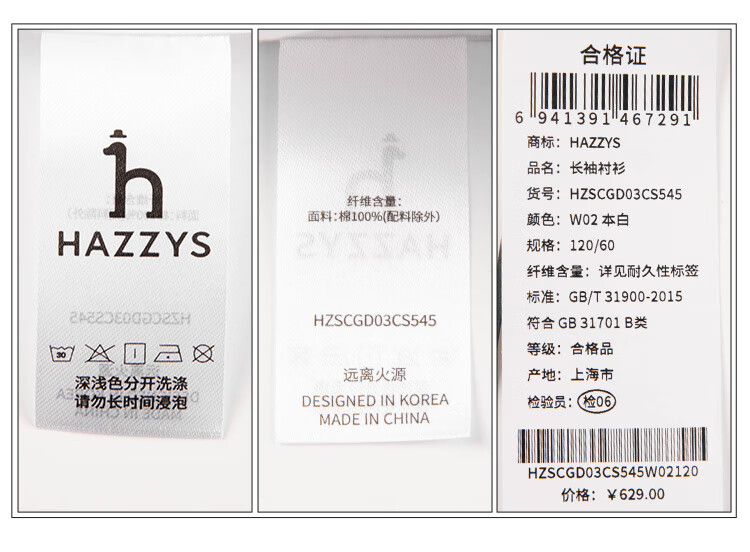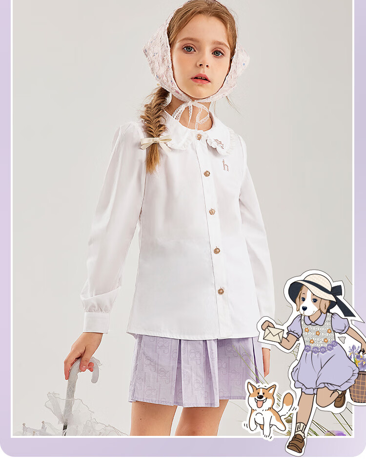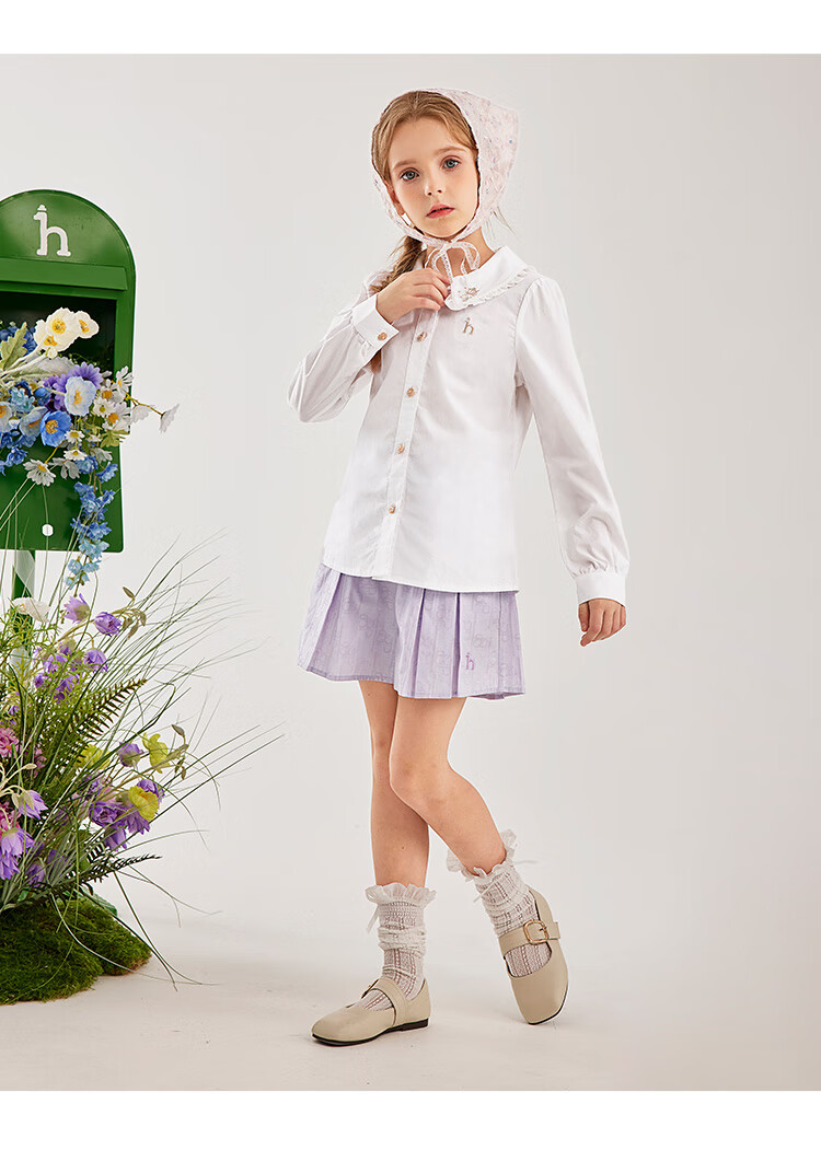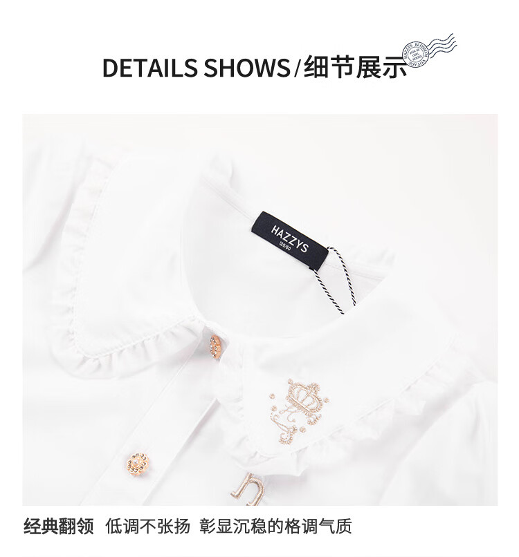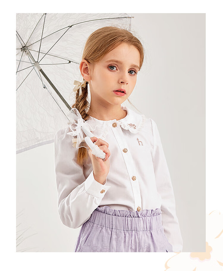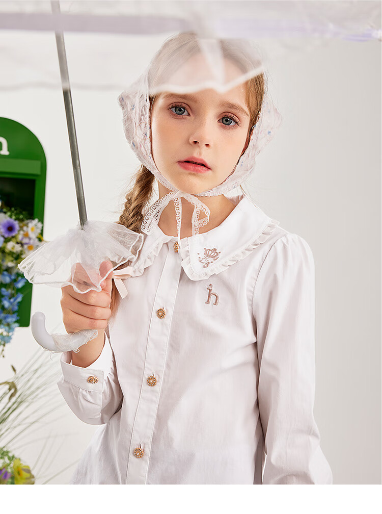 HAZZYS brand children's clothing girls' shirt spring new style comfortable classic lapel fashion retro simple long-sleeved shirt original white 160cm