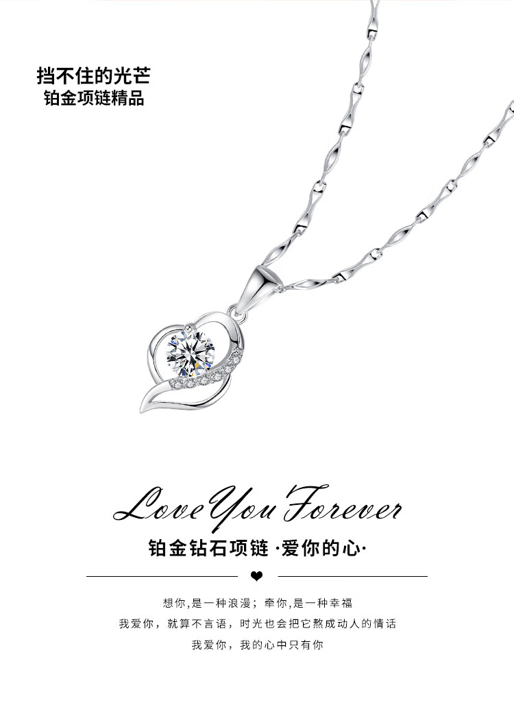 JOLINSYPT950 platinum diamond necklace with you in my heart pendant platinum love short clavicle chain jewelry birthday gift diamond 30 points platinum necklace
