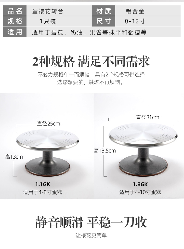 Junmo 12-inch decorating turntable, professional birthday cake turntable, household commercial baking tool rotation, 10-inch aluminum alloy standard model
