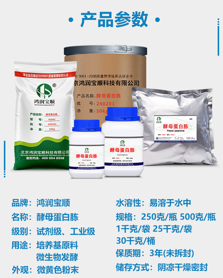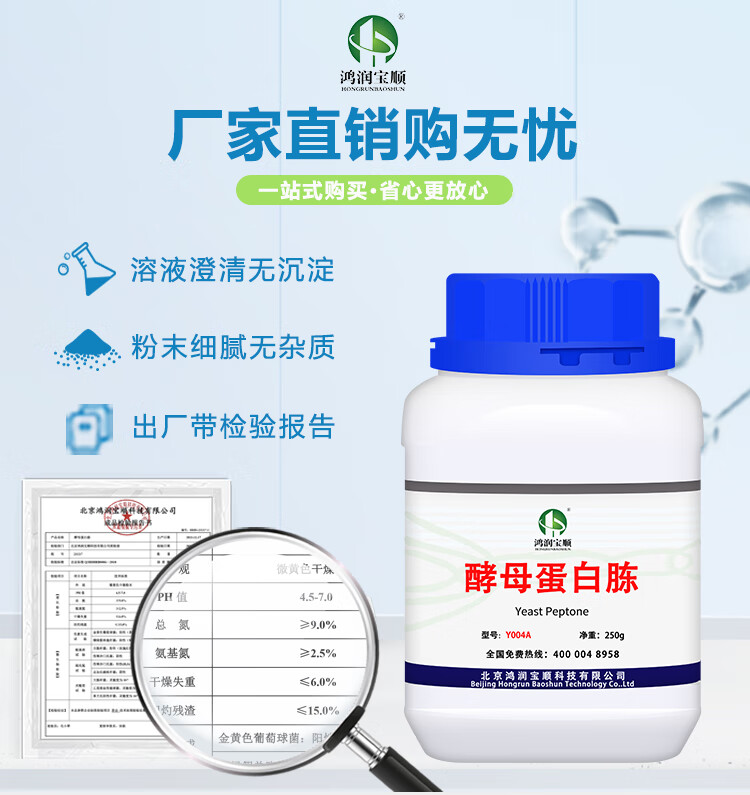 Hongrun Baoshun Yeast Peptone Y004A/C BR laboratory microbial culture medium raw material to promote bacterial growth and organic nitrogen source fermentation Y004A 250g/bottle (reagent grade) in stock