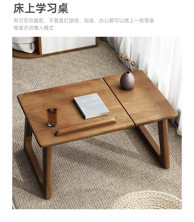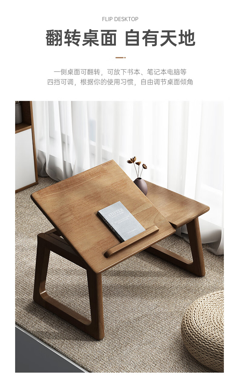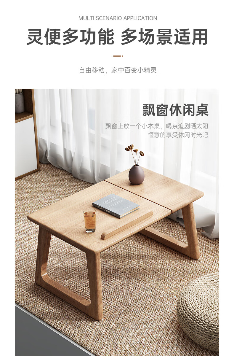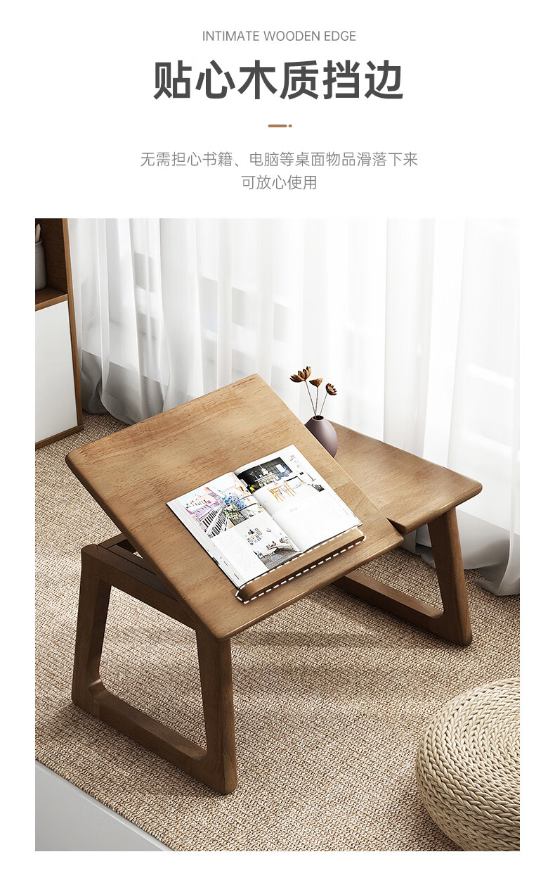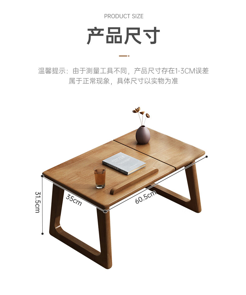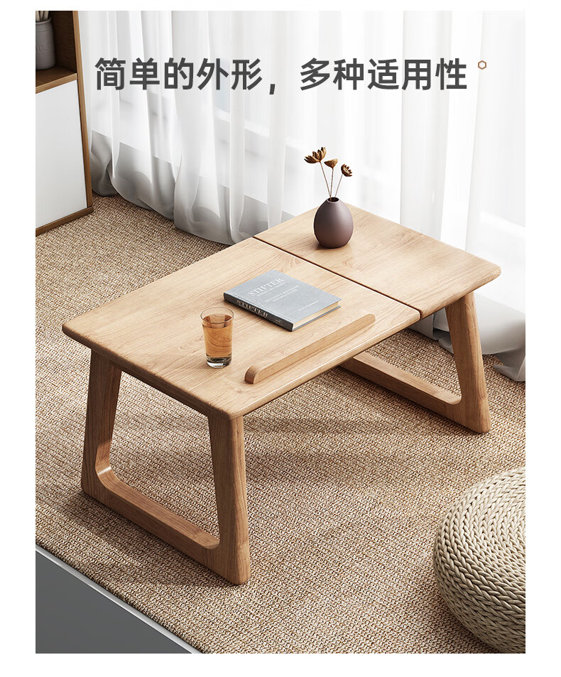 Aoki Yipin Bay Window Table Foldable Solid Wood Small Table Coffee Table Computer Table Japanese Balcony Desk Household Small Tea Table Practical Full Rubber Wood-Desktop Adjustable Cherry Wood Color 60.5*35*31.5
