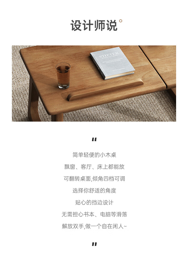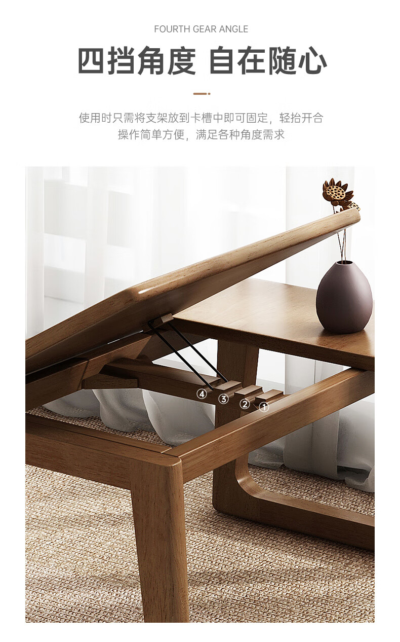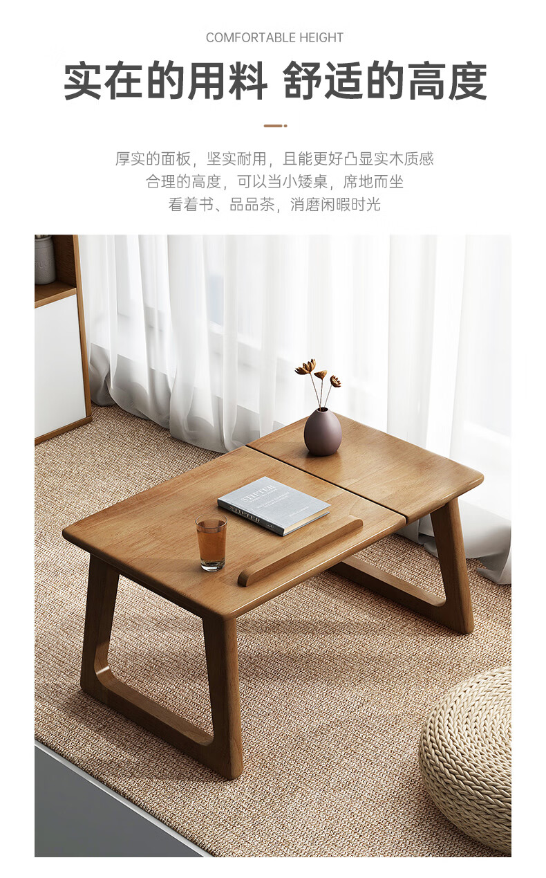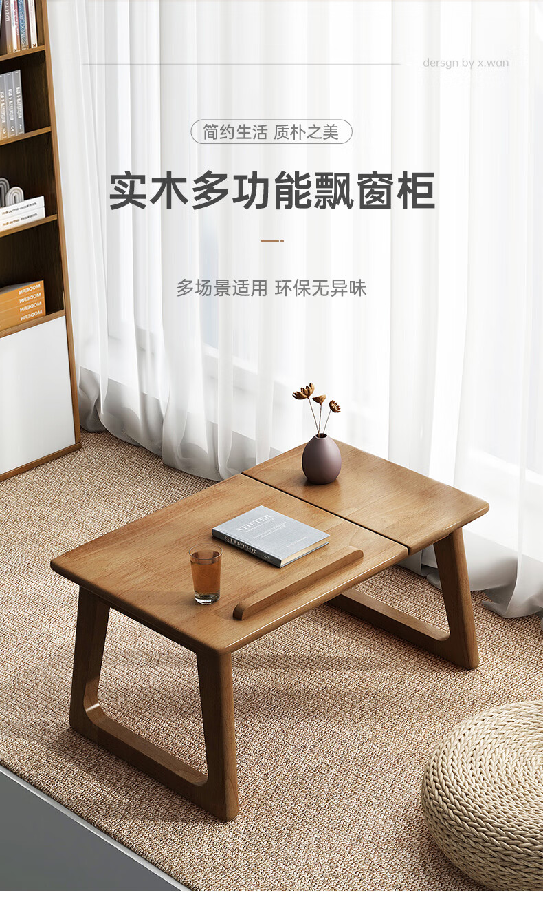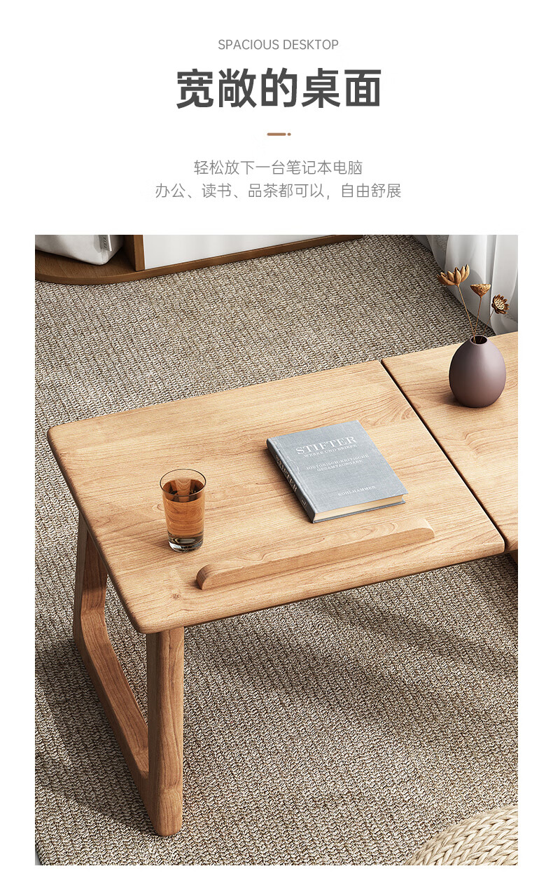 Aoki Yipin Bay Window Table Foldable Solid Wood Small Table Coffee Table Computer Table Japanese Balcony Desk Household Small Tea Table Practical Full Rubber Wood-Desktop Adjustable Cherry Wood Color 60.5*35*31.5