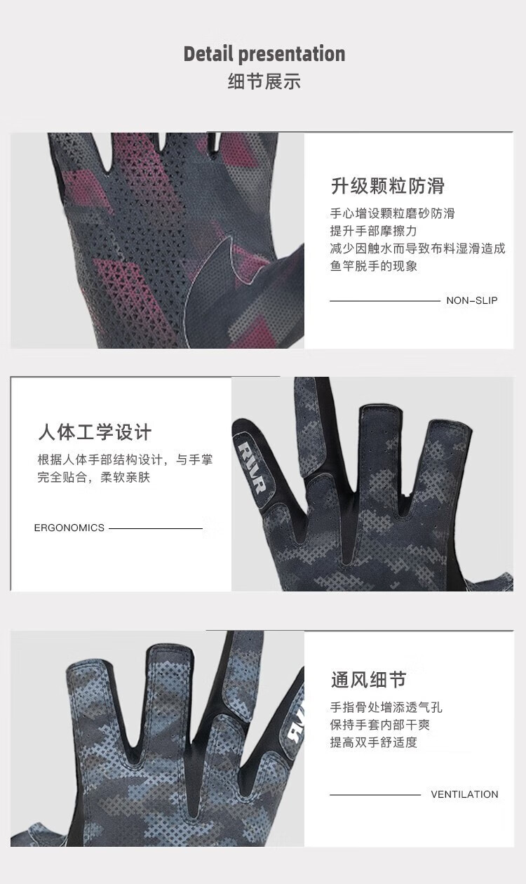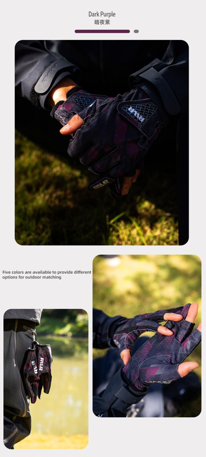 RVVR23/24 three-finger/five-finger Lure Fishing Gloves Second Generation Upgraded Laxelle Gloves Anti-Slip for All Seasons Five Fingers Exposed-Dark Night Purple M