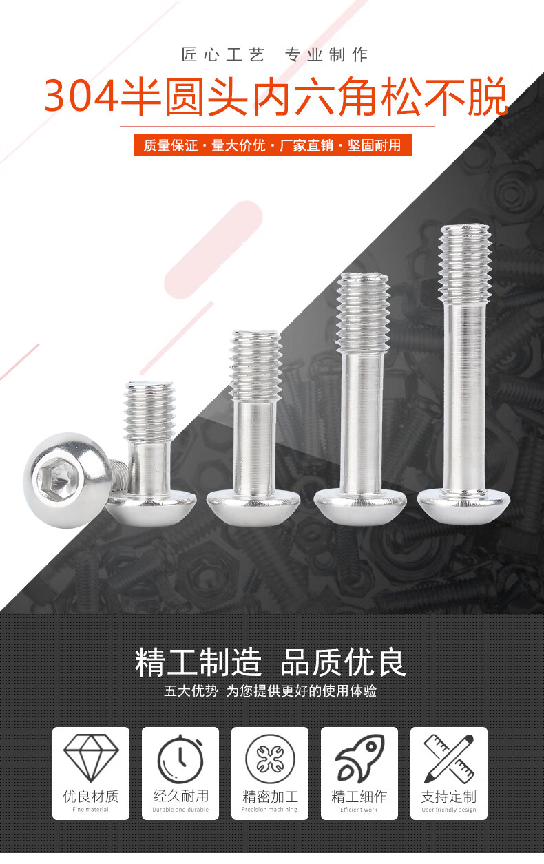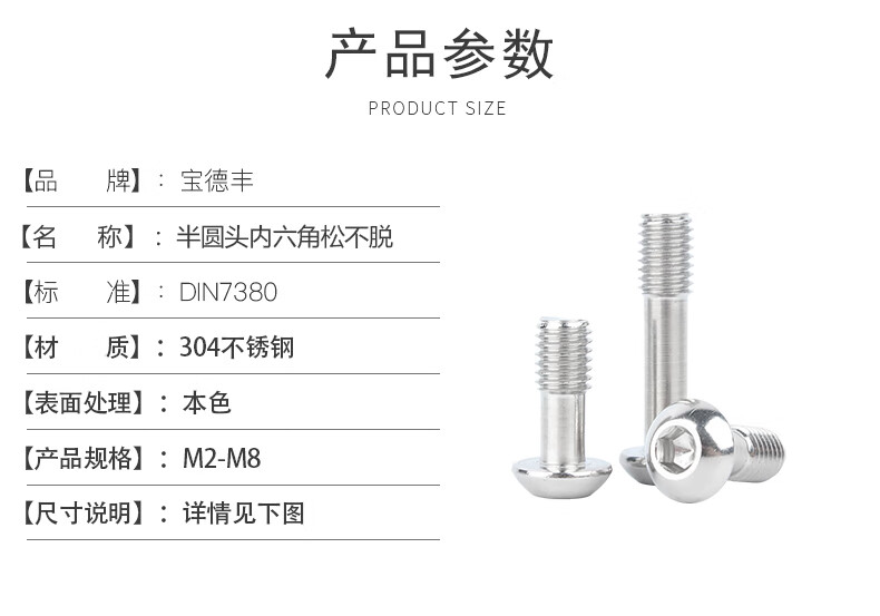 Baodefeng 304 stainless steel pan head hexagonal loose screws semi-round head non-detaching screws half-thread bolts national standard M2.5x10 (10 pieces)