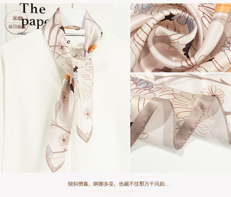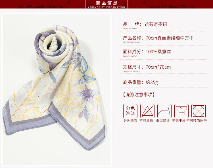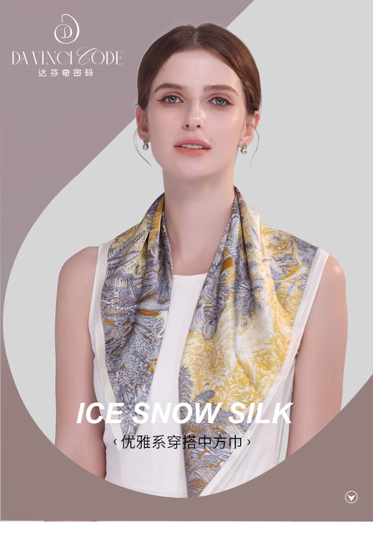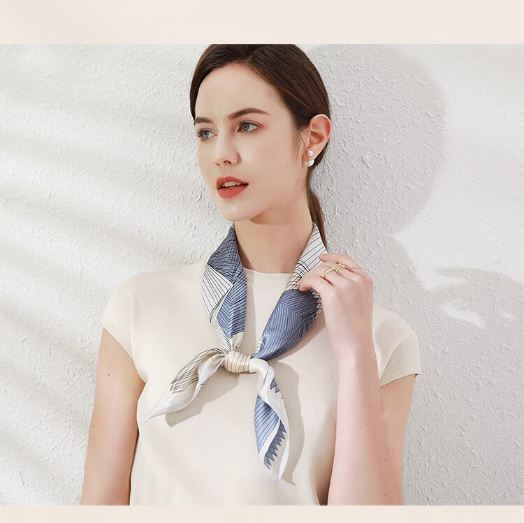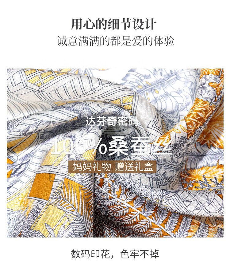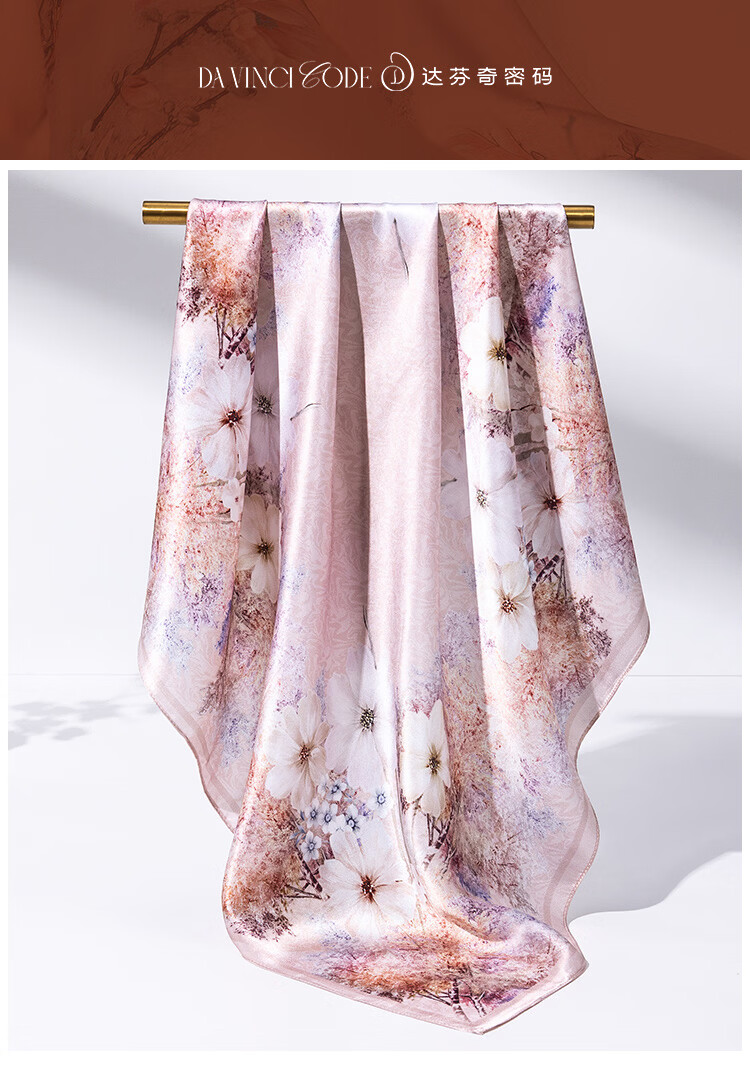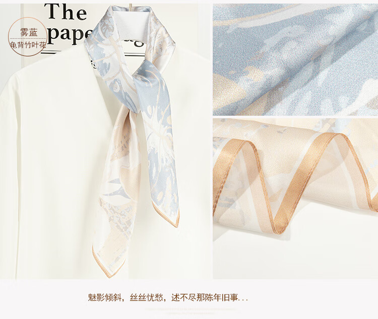 The Da Vinci Code Silk Scarf 100% Mulberry Silk Scarf Women's High-end Silk Scarf Mom's Birthday Gift Silk Scarf for Elders Monstera Leaf Flower Mist Blue